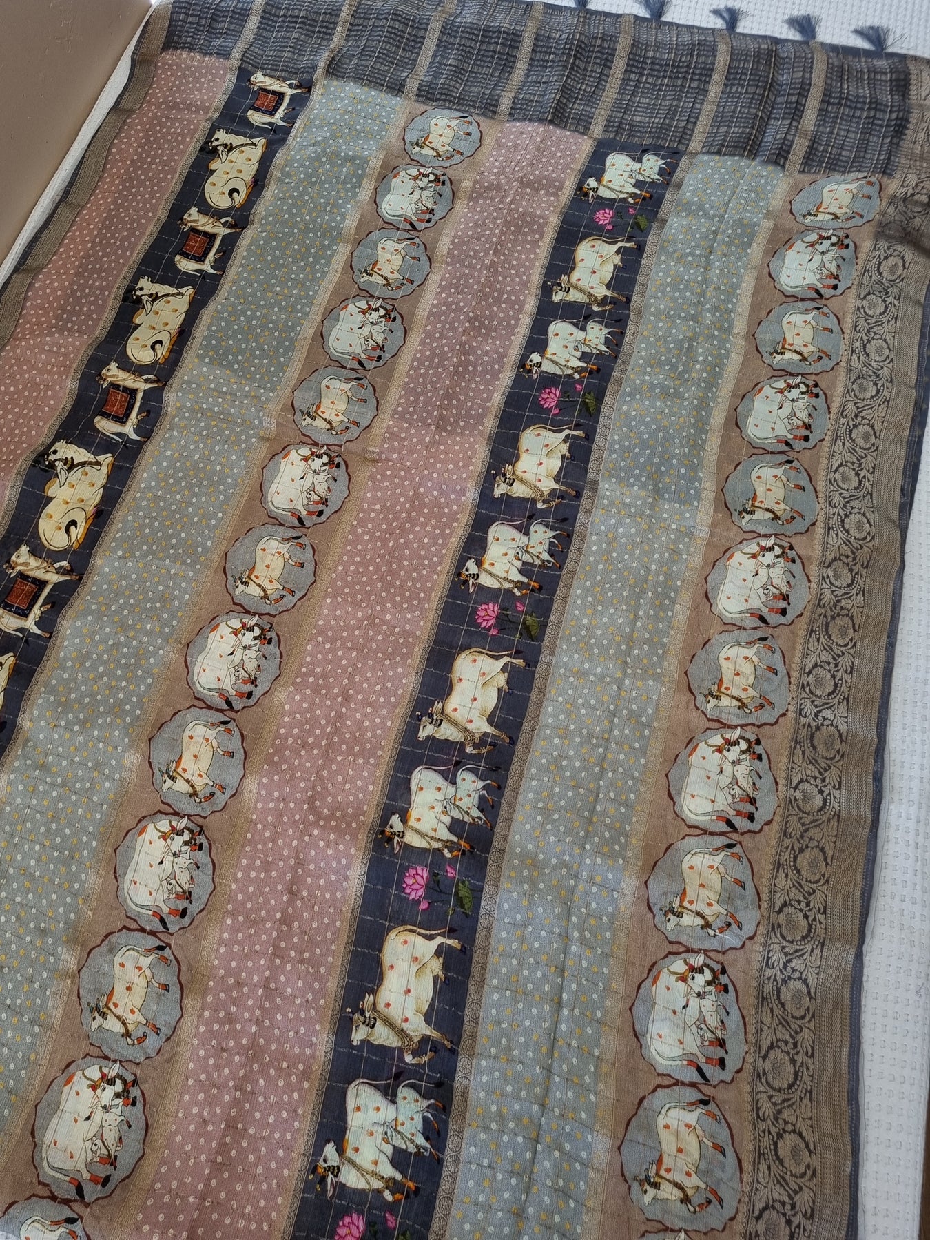 A beautiful Georgette Saree with Pichwai Prints on the body