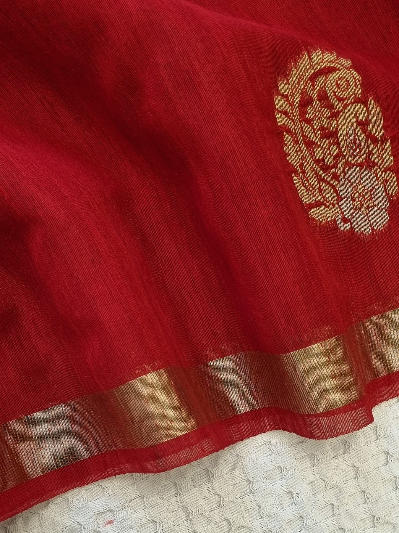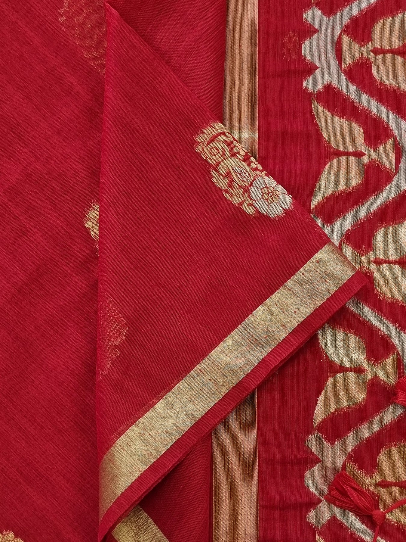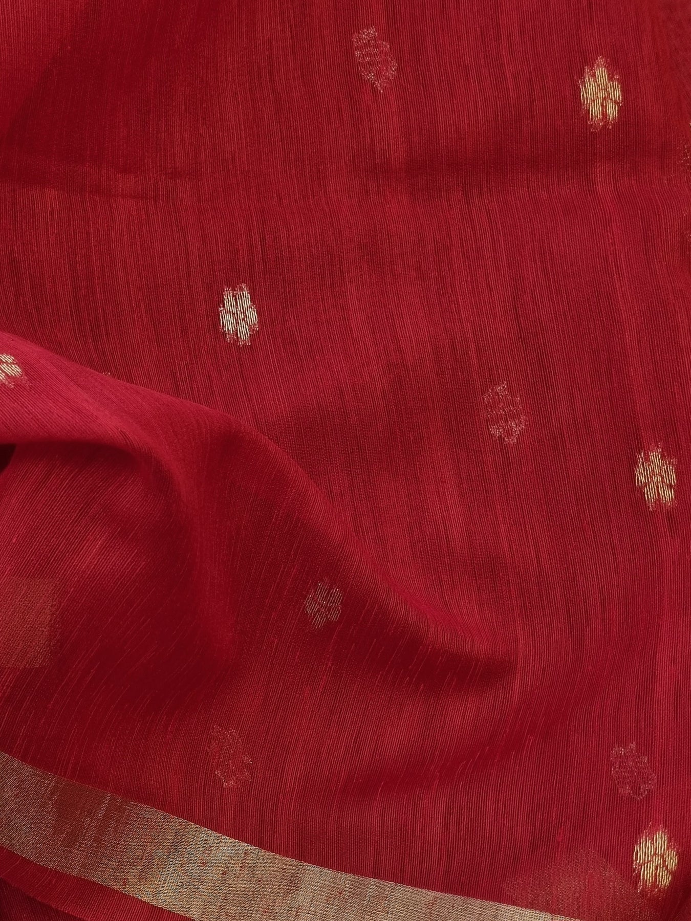 Red Raw Silk Saree with Gold Borders