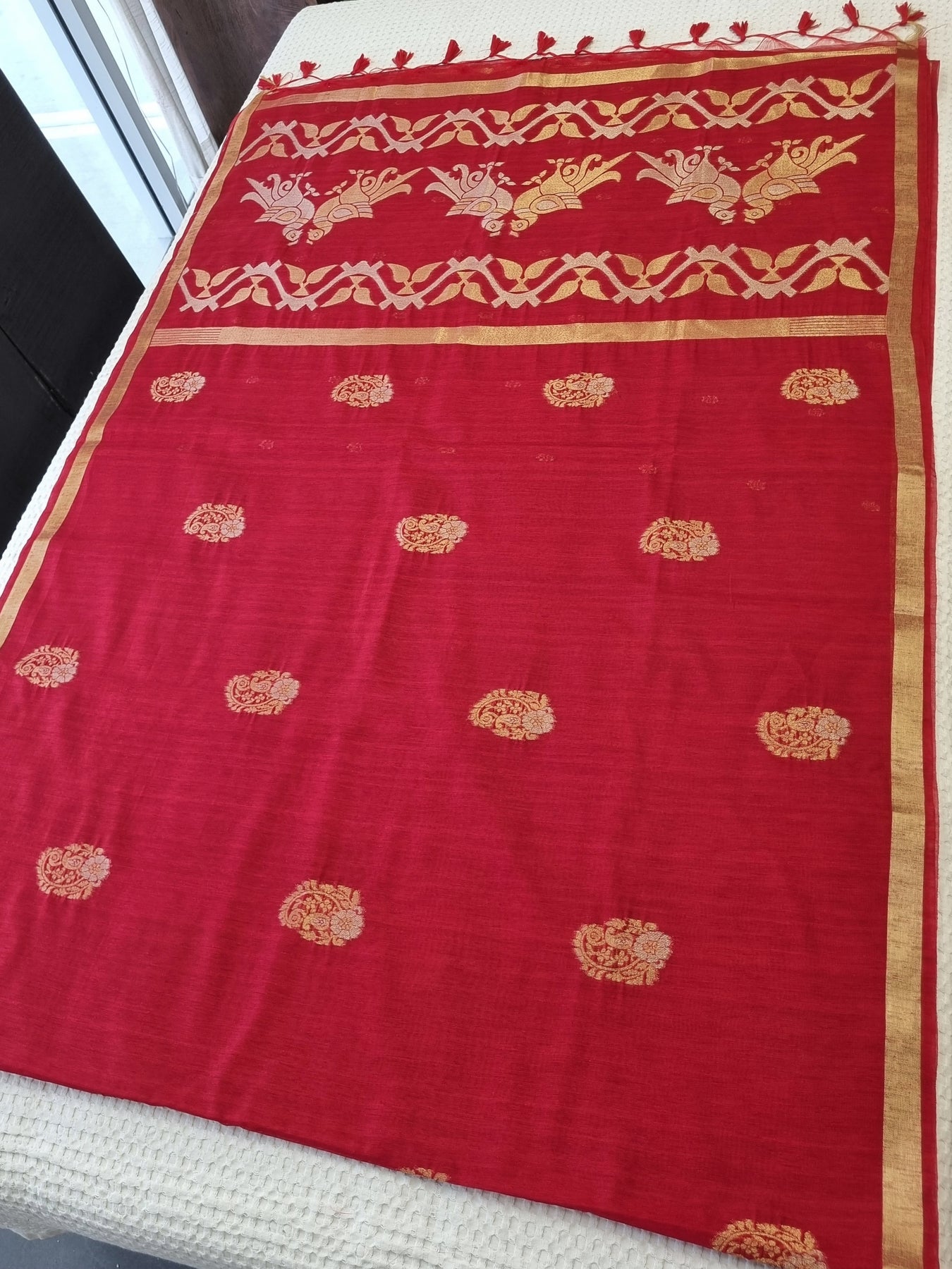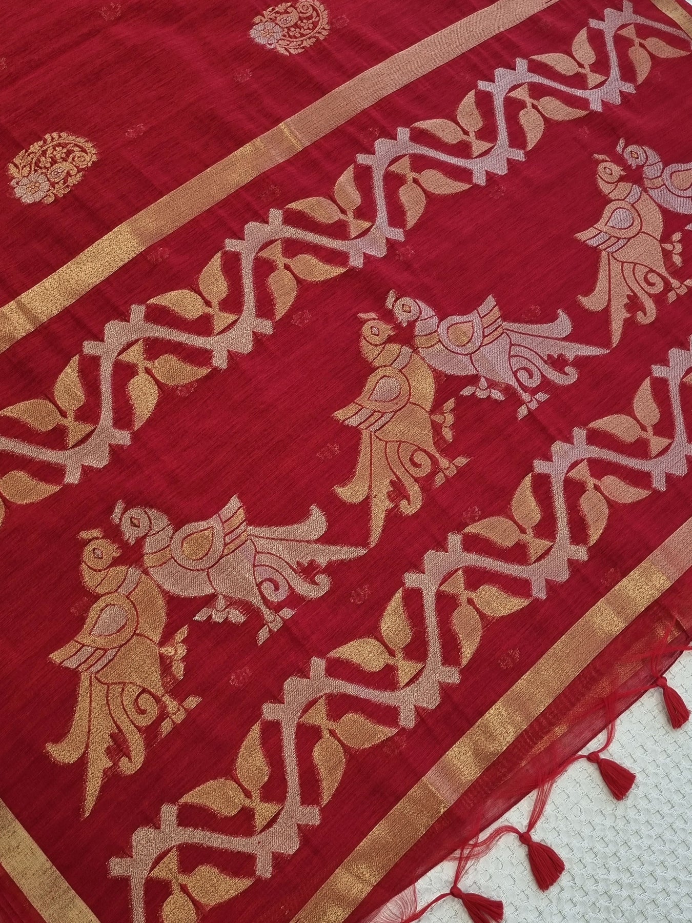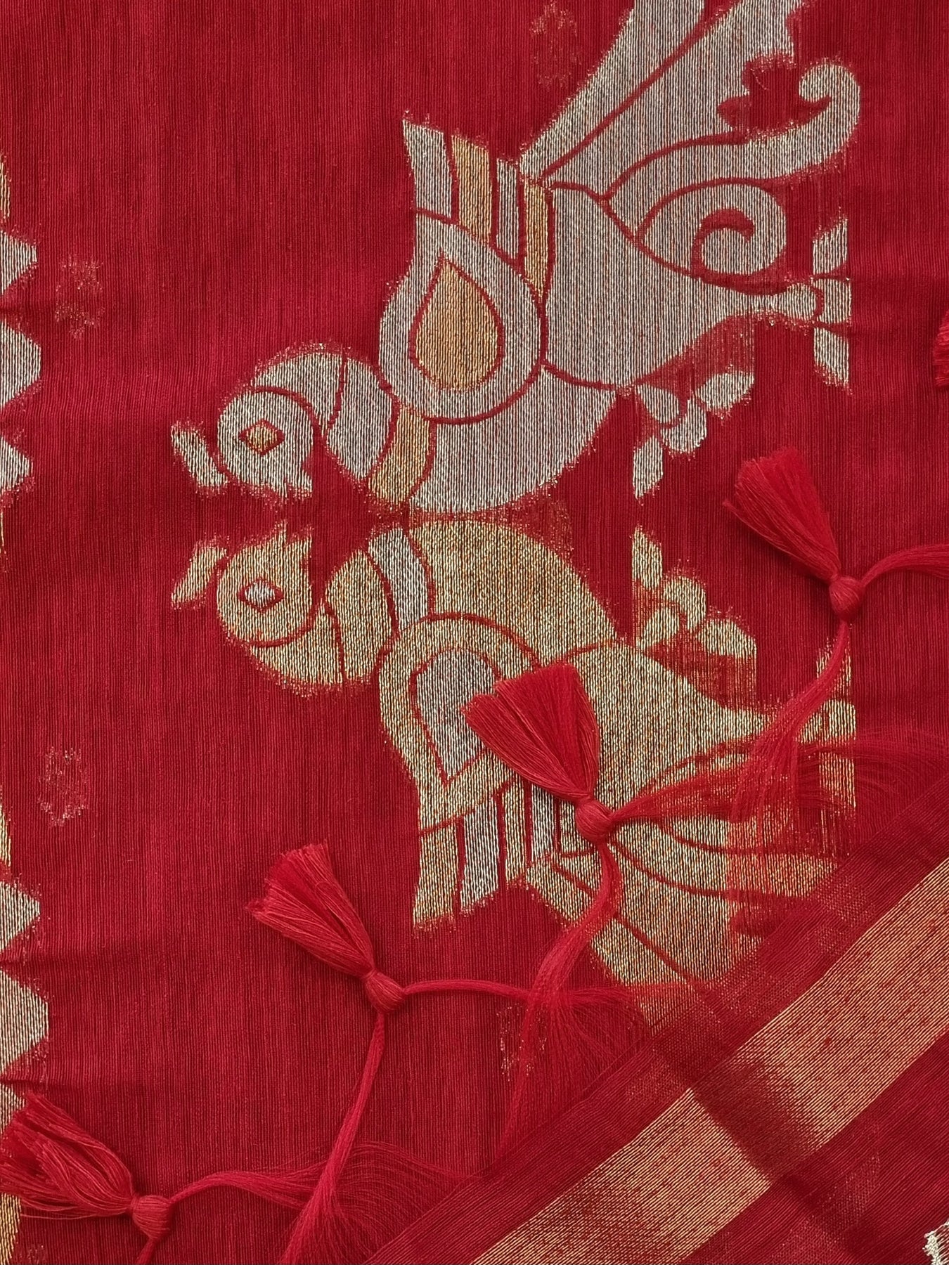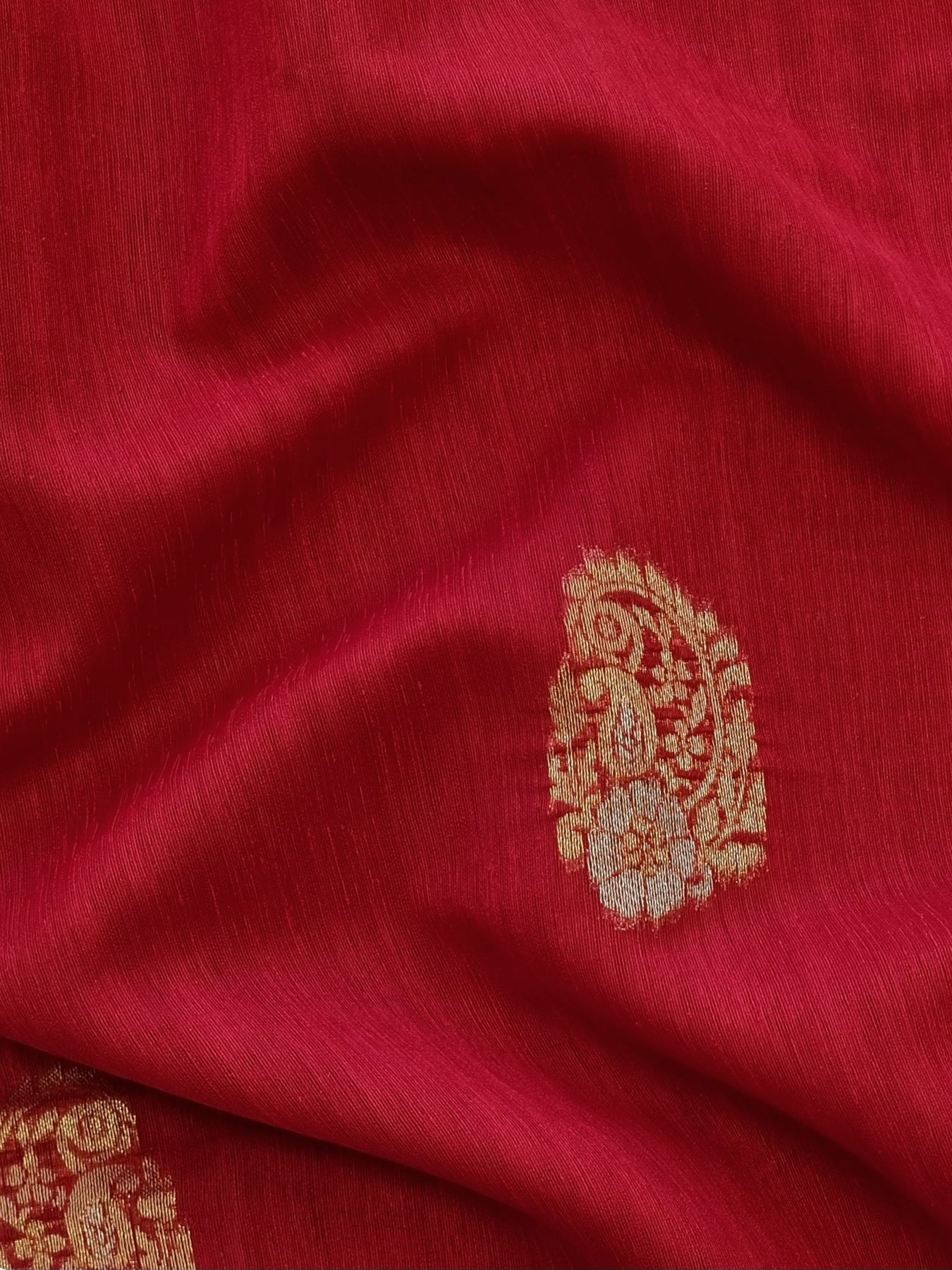 Red Raw Silk Saree with Gold Borders