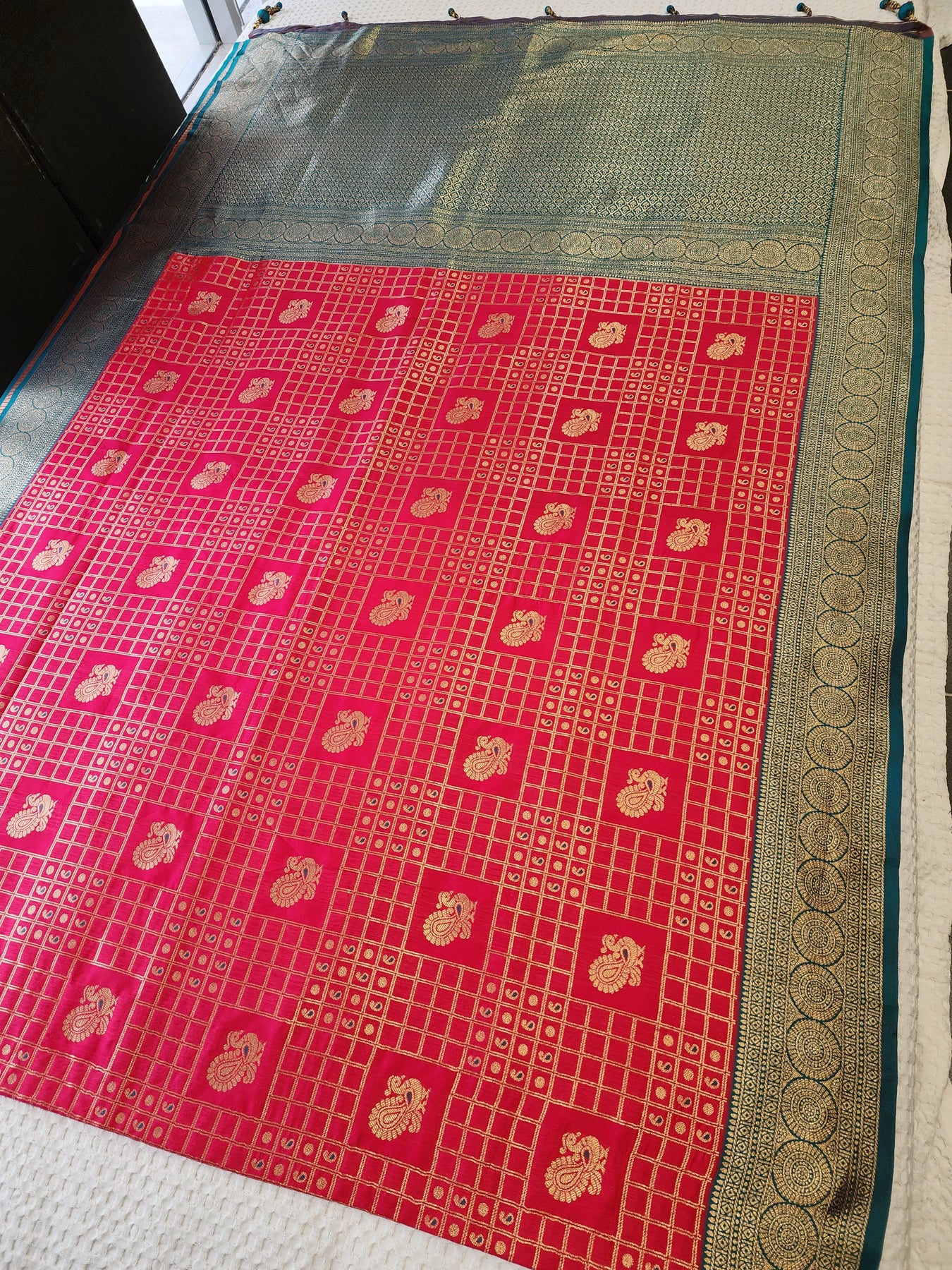 [{"id":48186132627688,"title":"Default Title","option1":"Default Title","option2":null,"option3":null,"sku":null,"requires_shipping":true,"taxable":true,"featured_image":null,"available":true,"name":"Pink Silk Saree with Contrast Borders","public_title":null,"options":["Default Title"],"price":13500,"weight":800,"compare_at_price":15900,"inventory_quantity":1,"inventory_management":"shopify","inventory_policy":"deny","barcode":null,"requires_selling_plan":false,"selling_plan_allocations":[],"quantity_rule":{"min":1,"max":null,"increment":1}}]