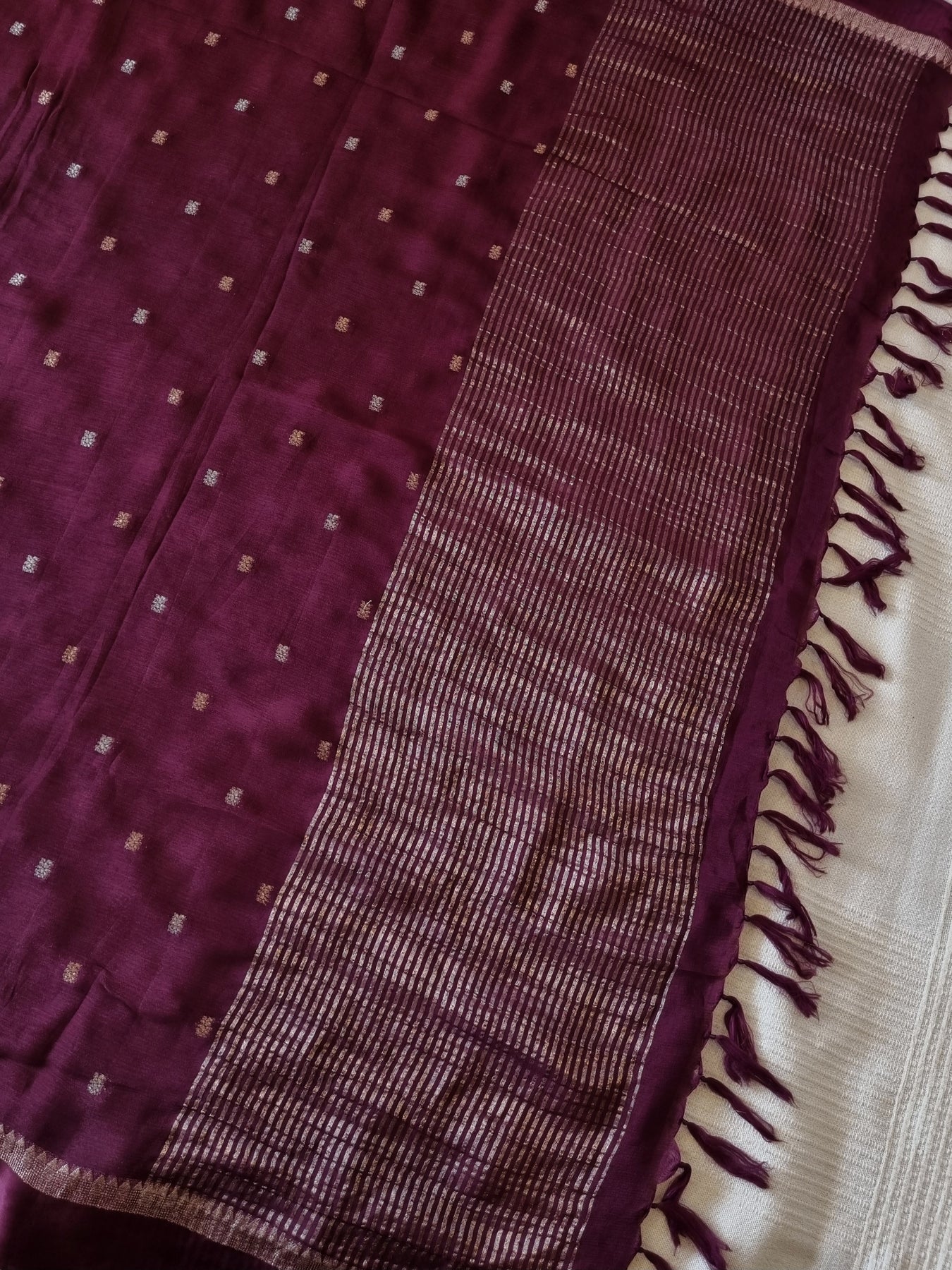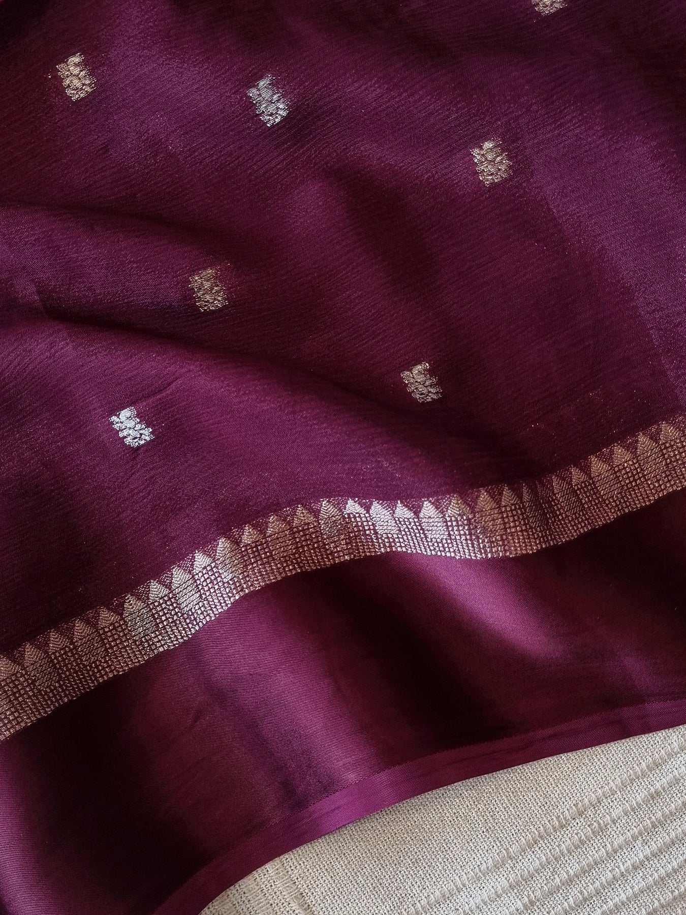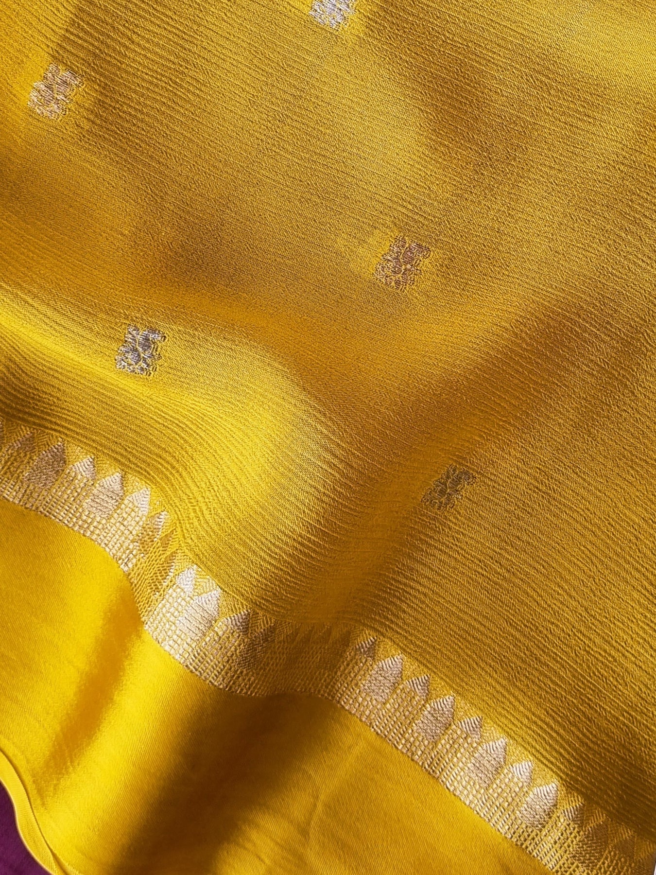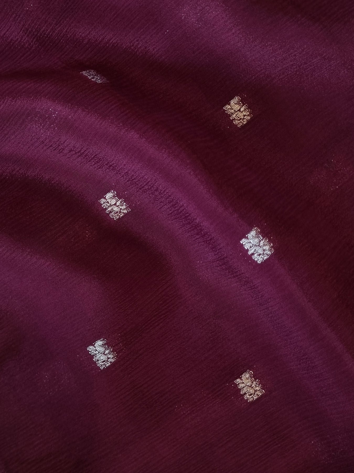 Semi Georgette Saree, with woven borders, paired with a Semi Silk Blouse fabric