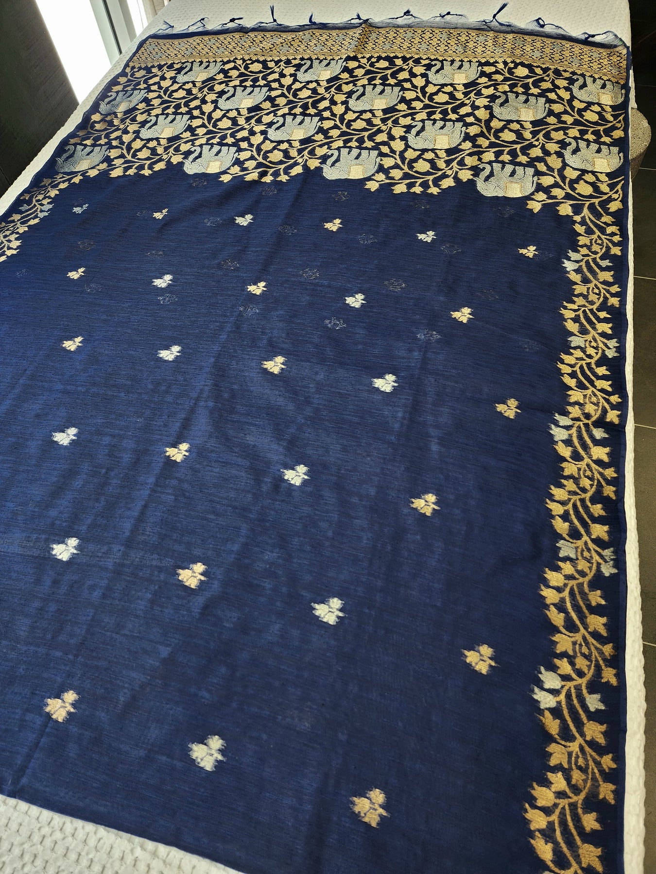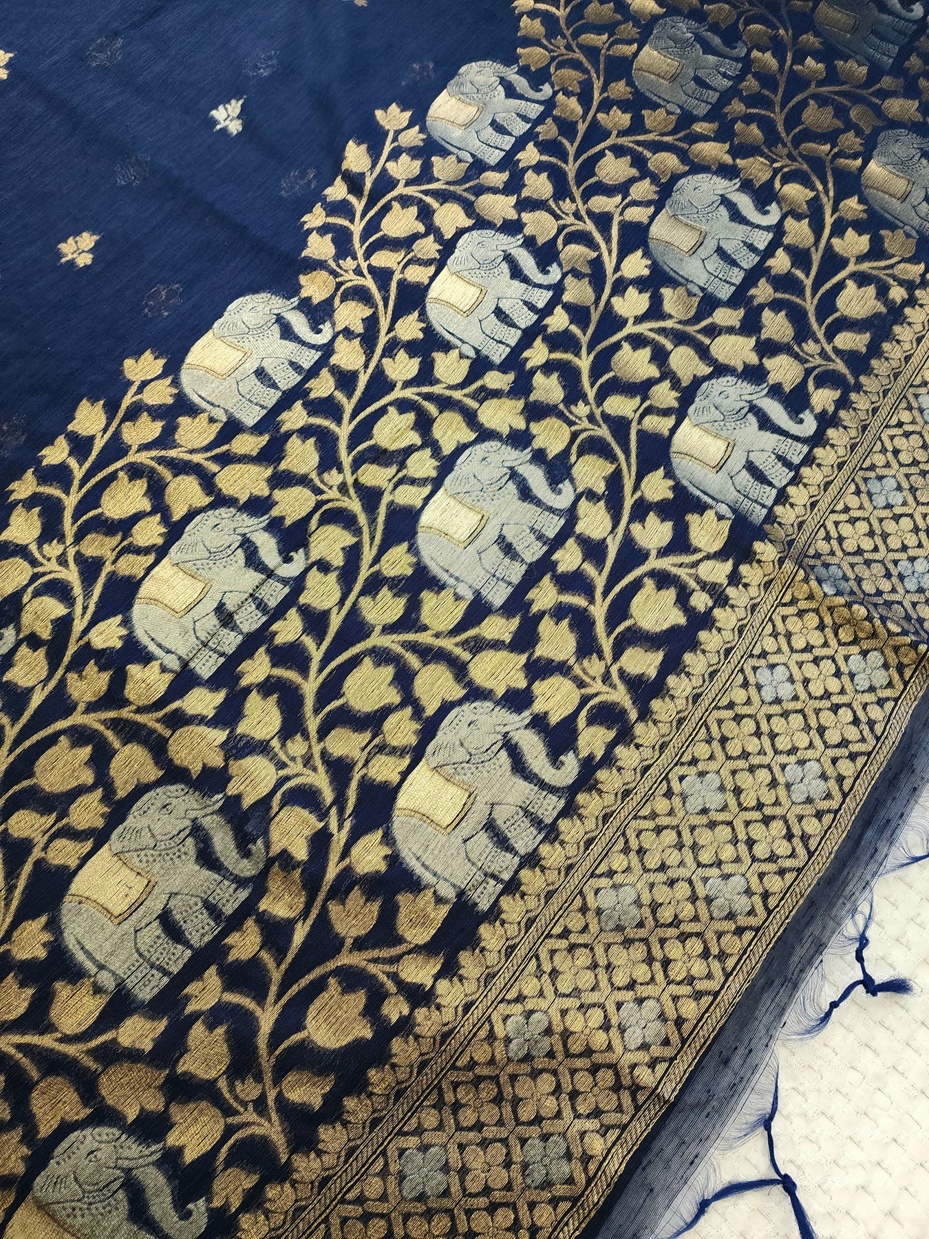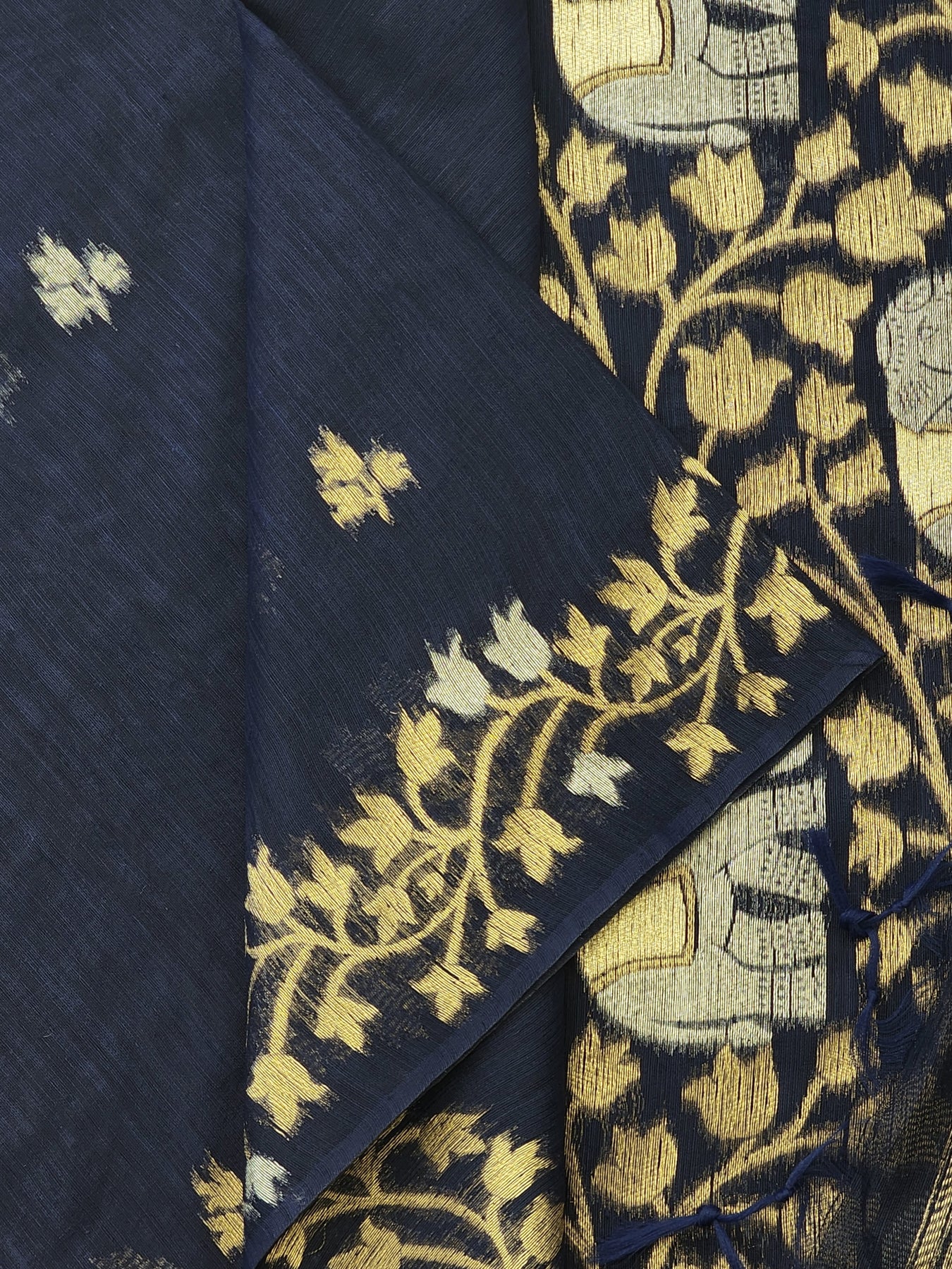 Semi Raw Silk Saree with floa designs and pallu, beautifully finished with tassels