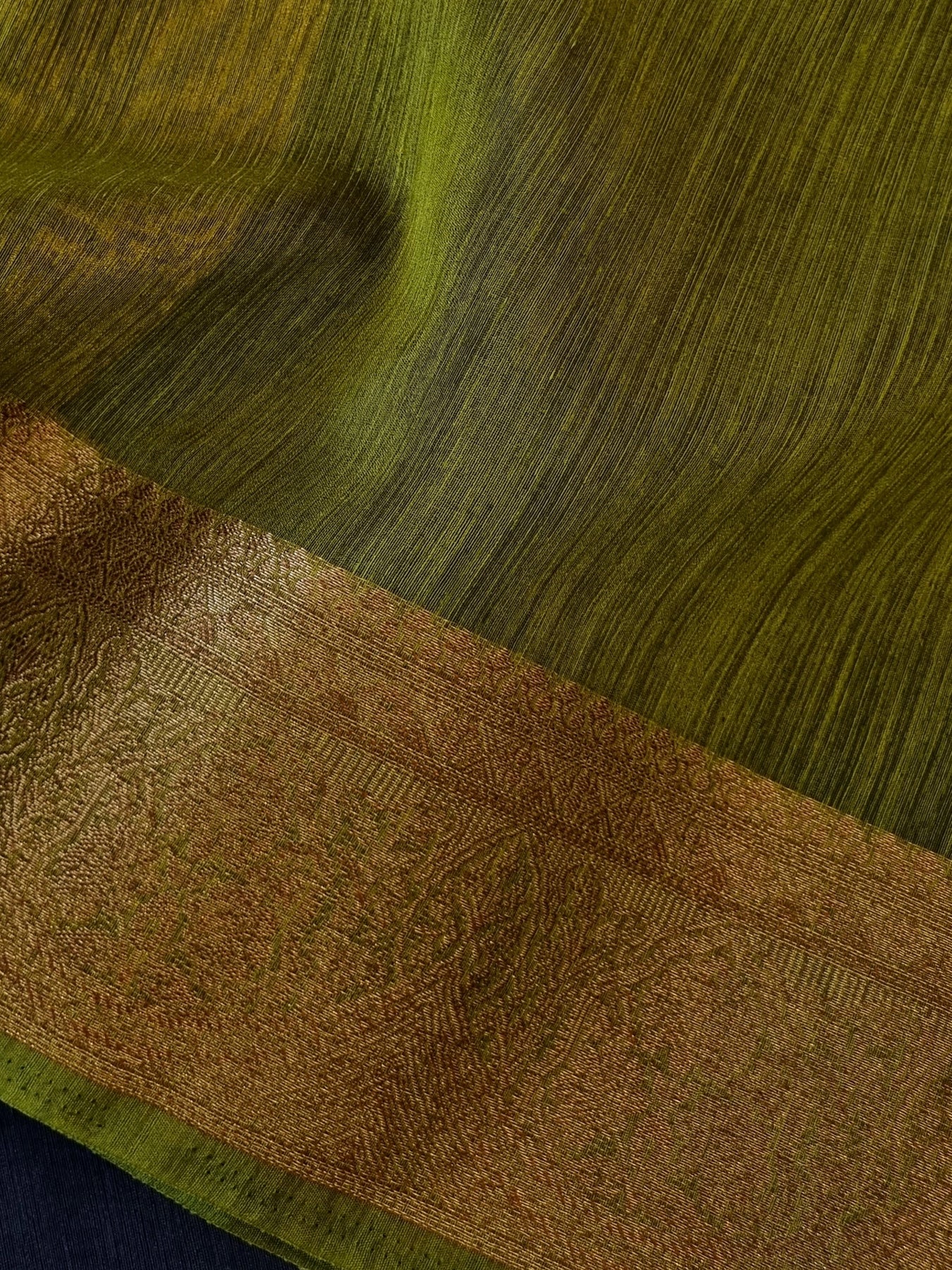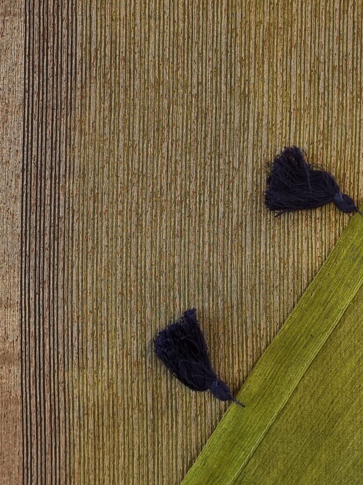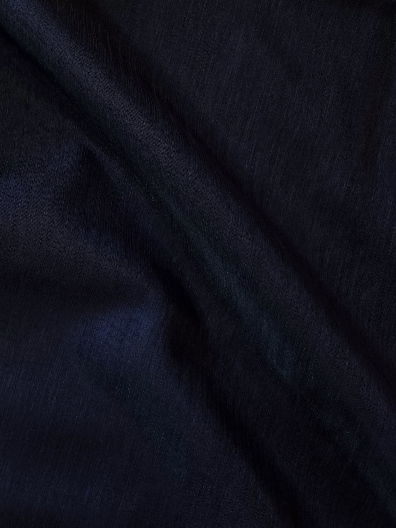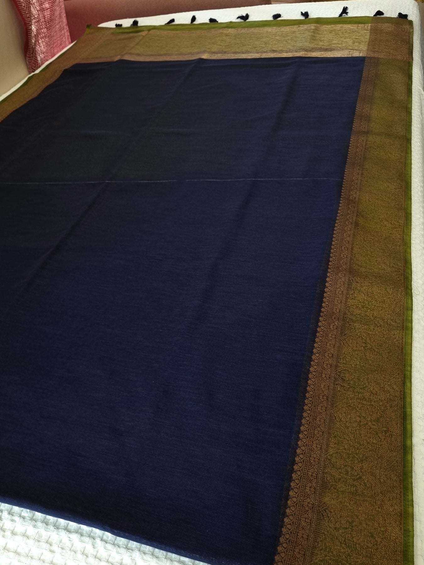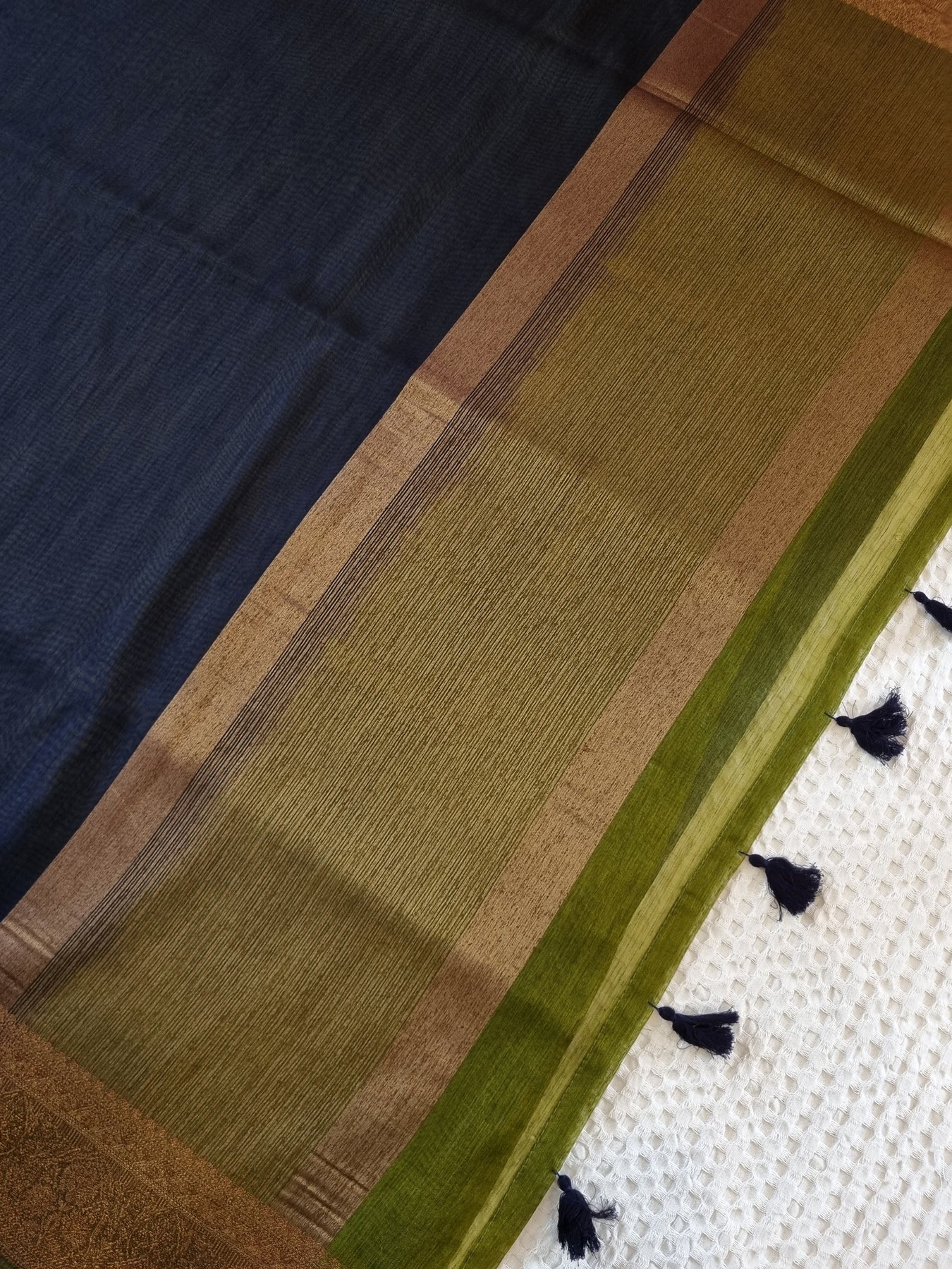Navy Blue Semi Raw Silk Saree with woven Teal borders and pallu, beautifully finished with tassels