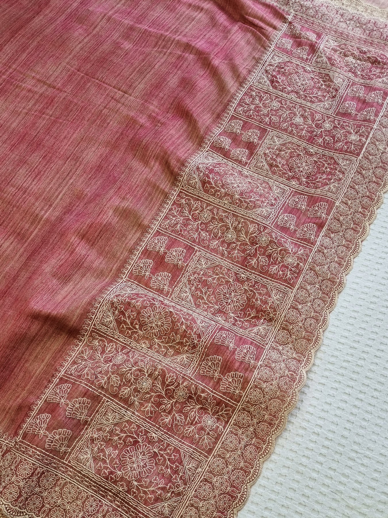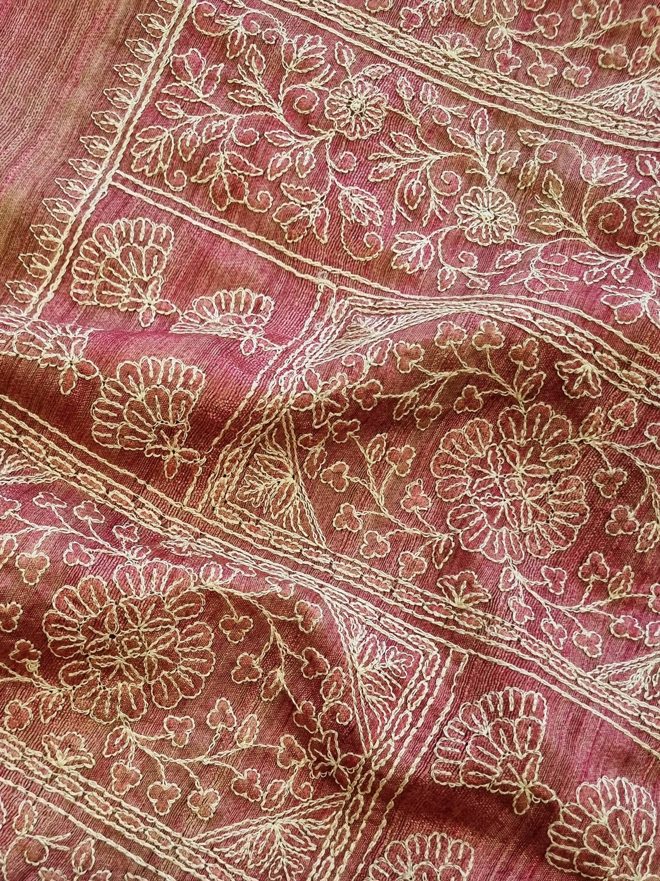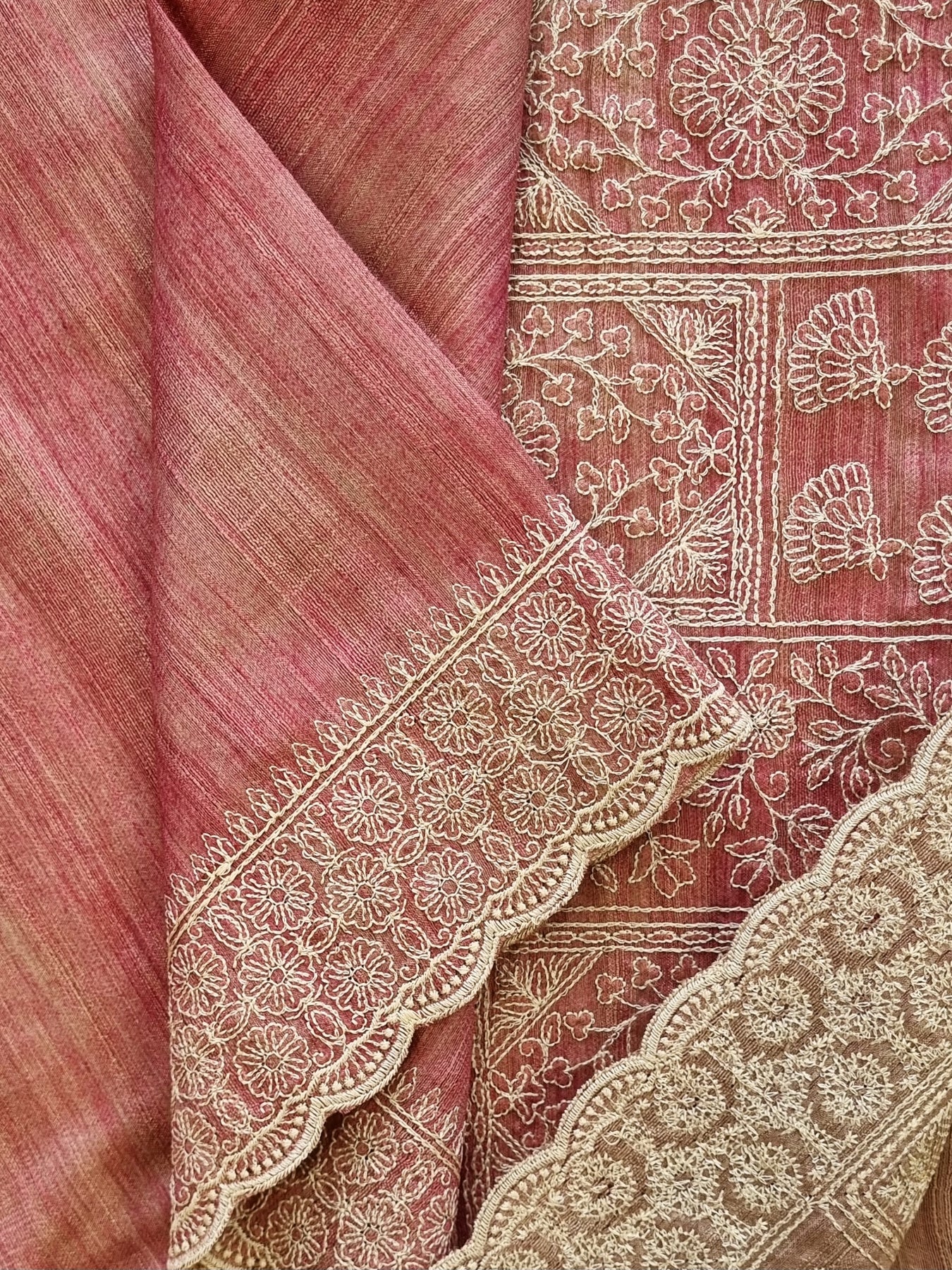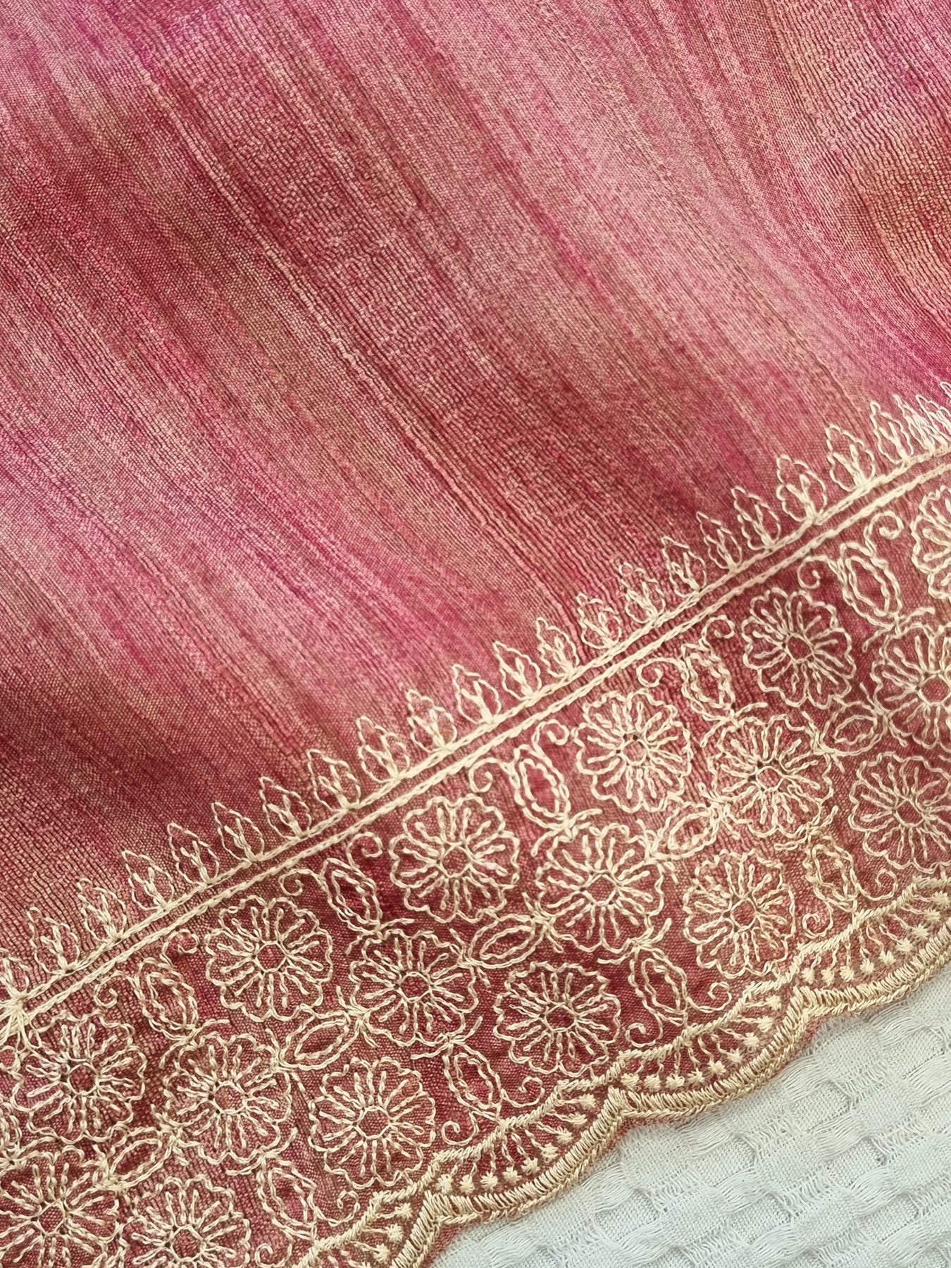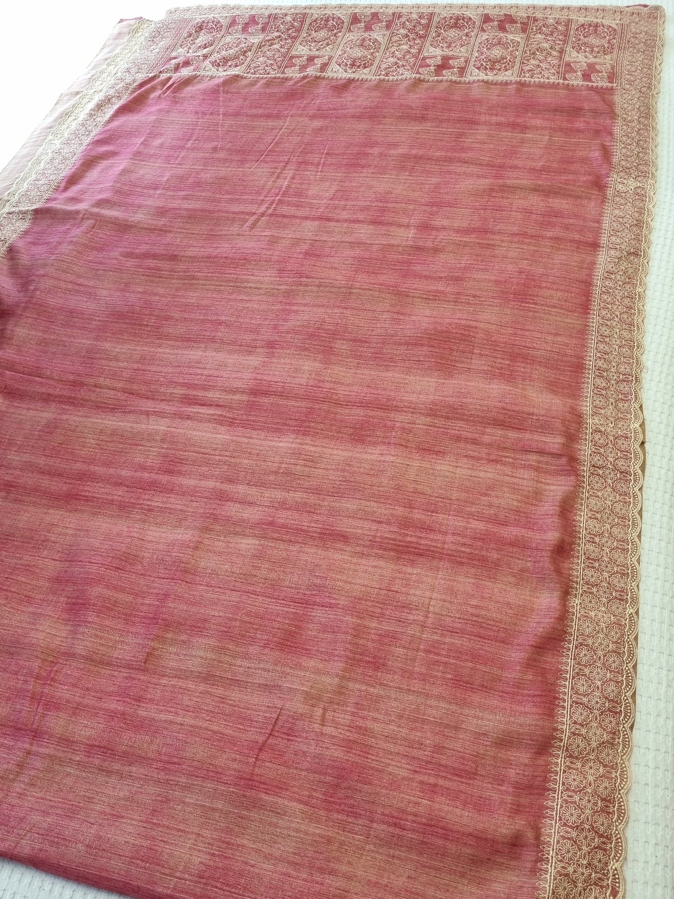 Pink Raw Silk Saree with Embroidered Borders