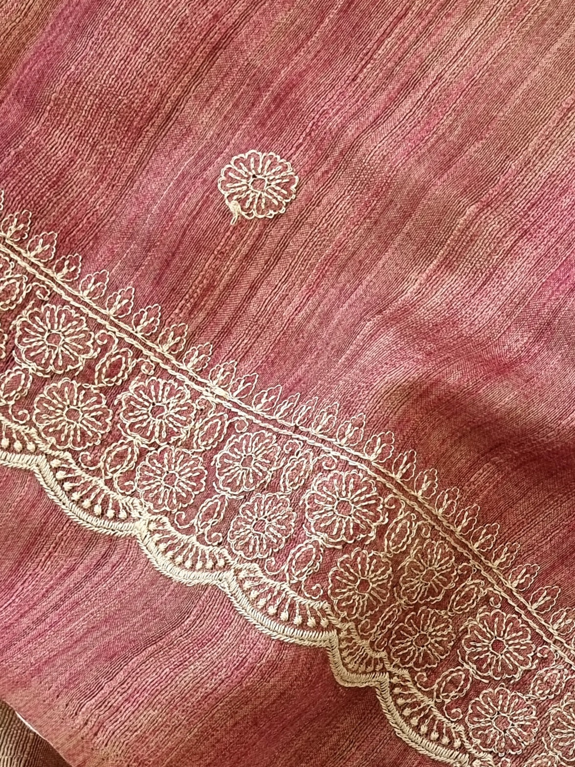 Semi Raw Silk Saree with embroidered b