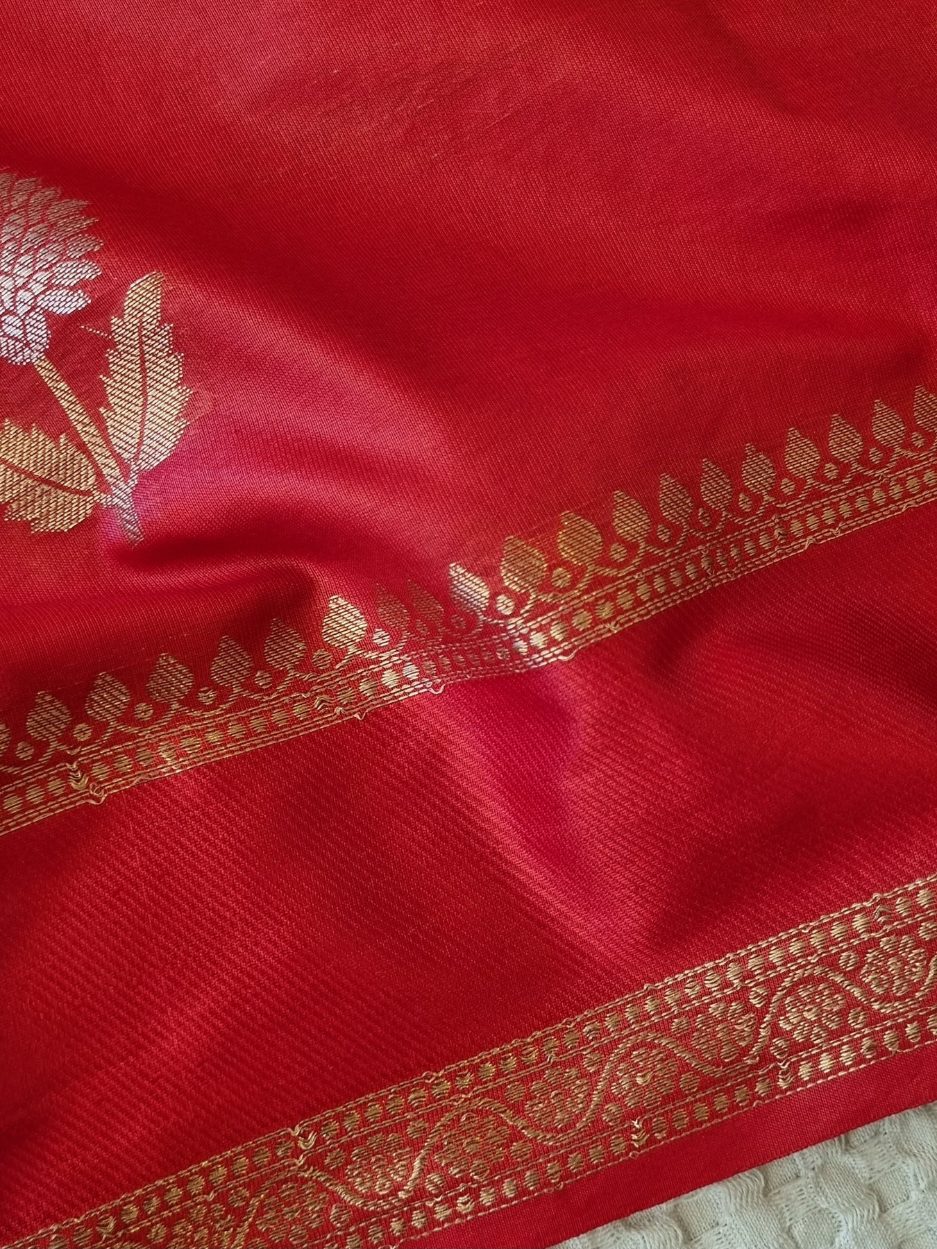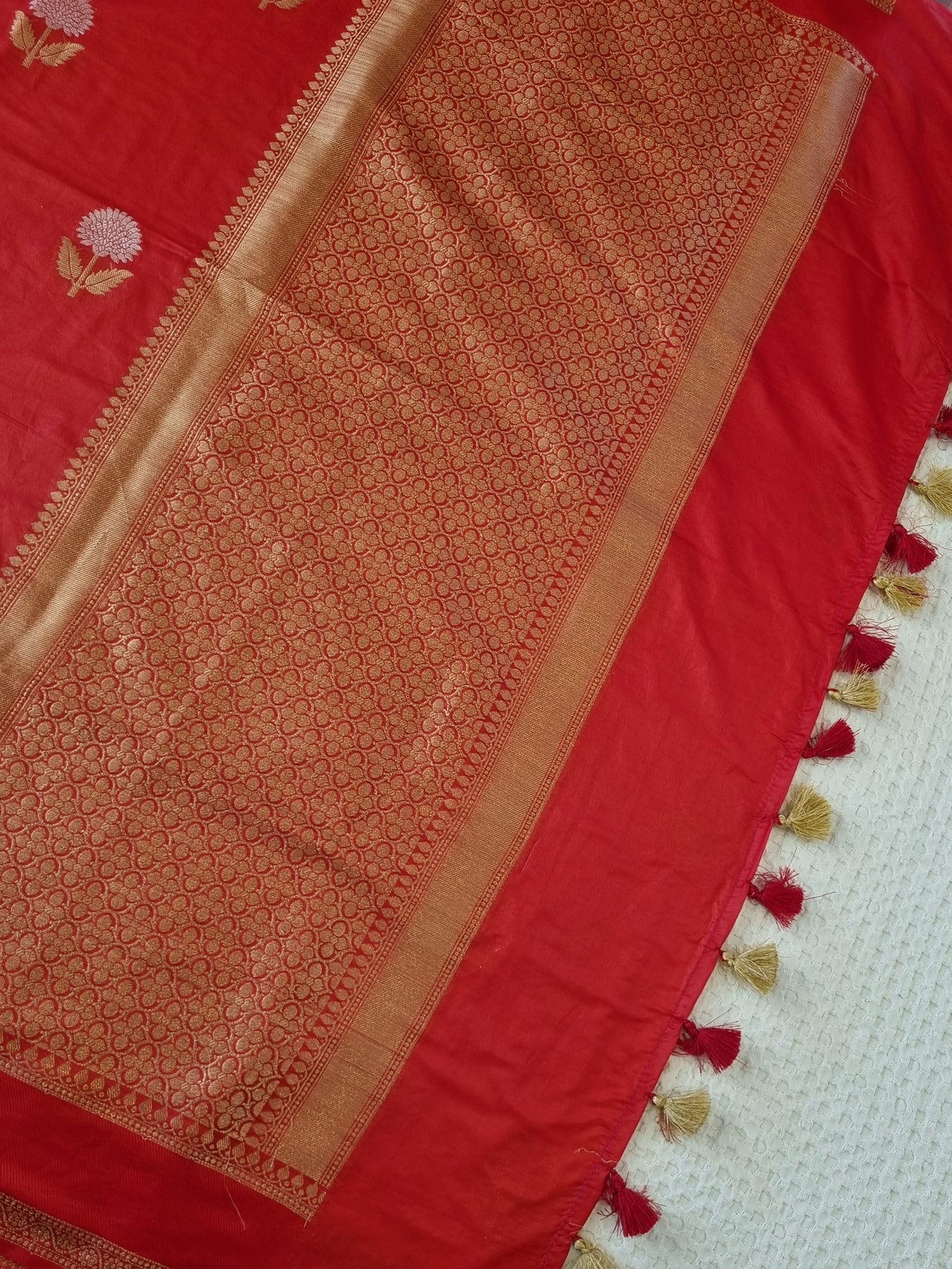 Red Silk Saree with Dual Tone Motifs