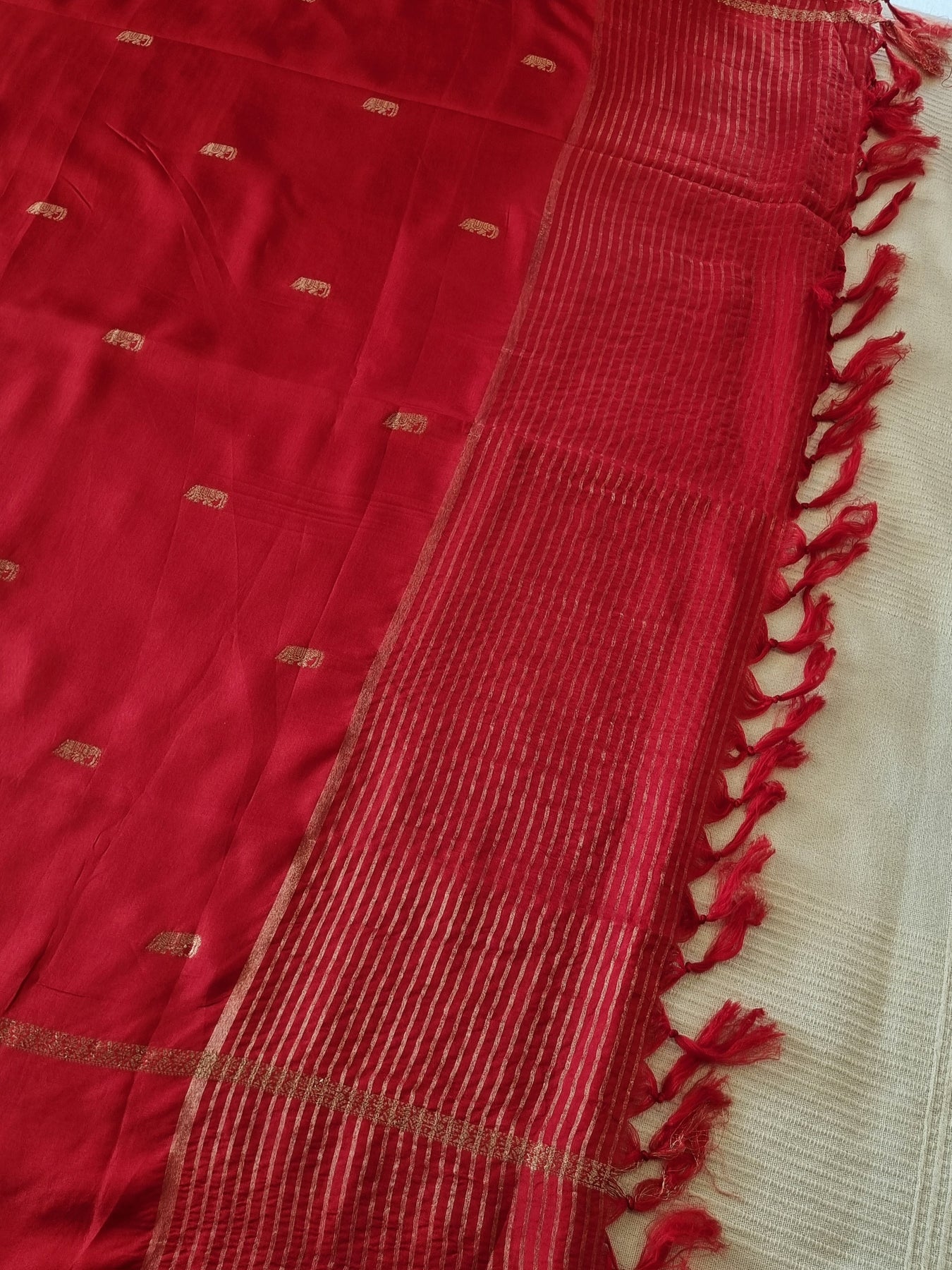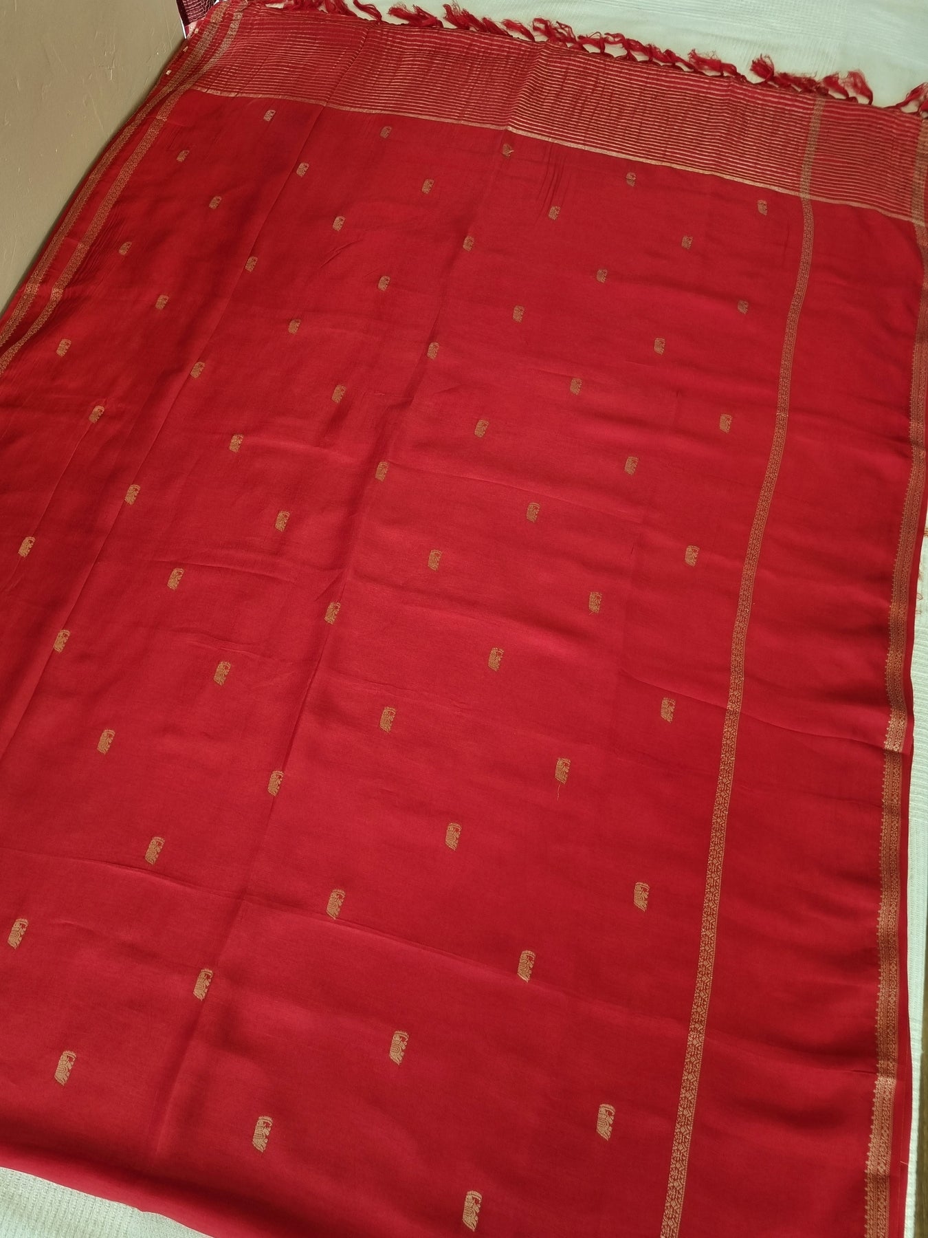 Red Silk Saree with Woven Borders