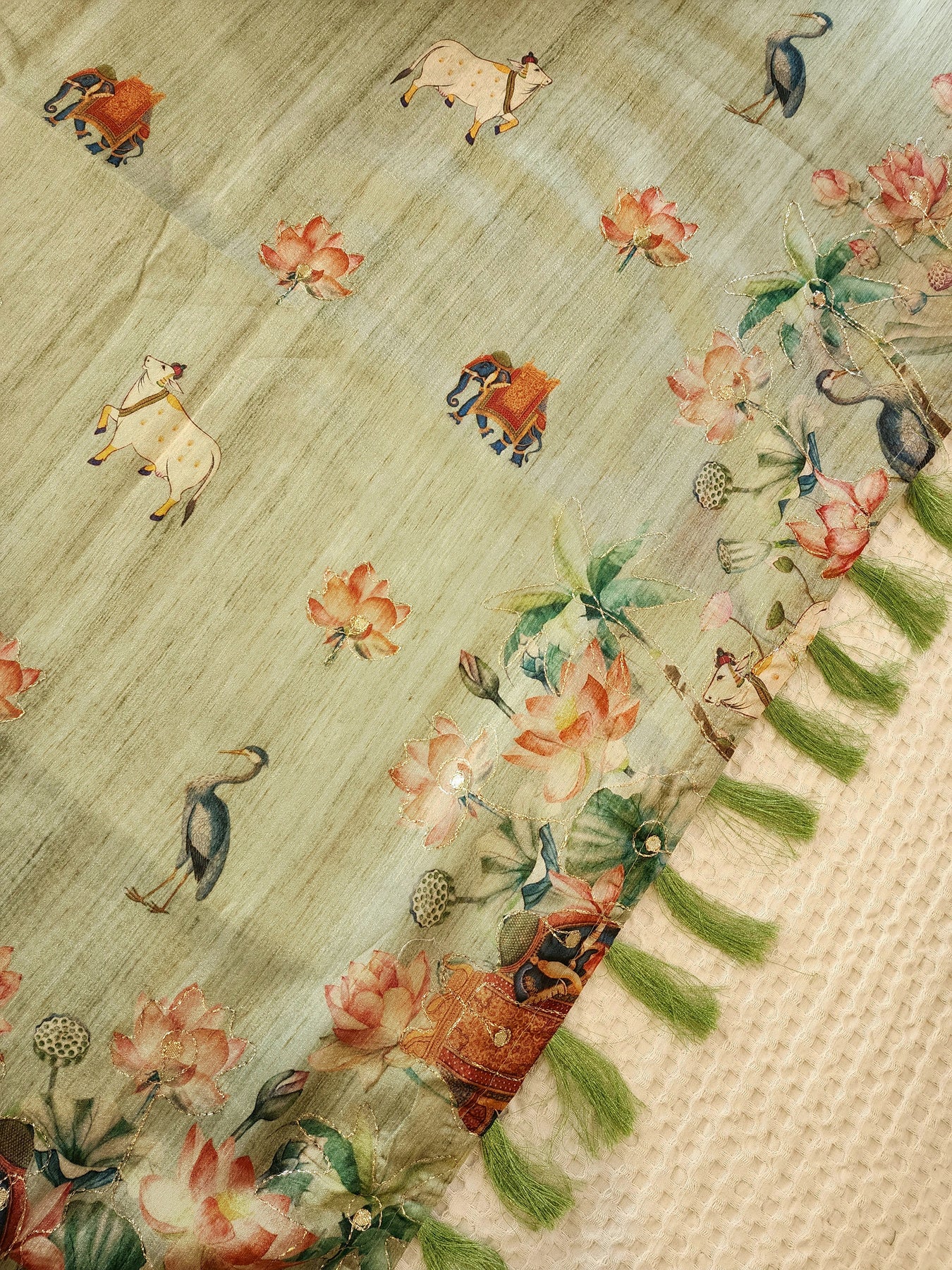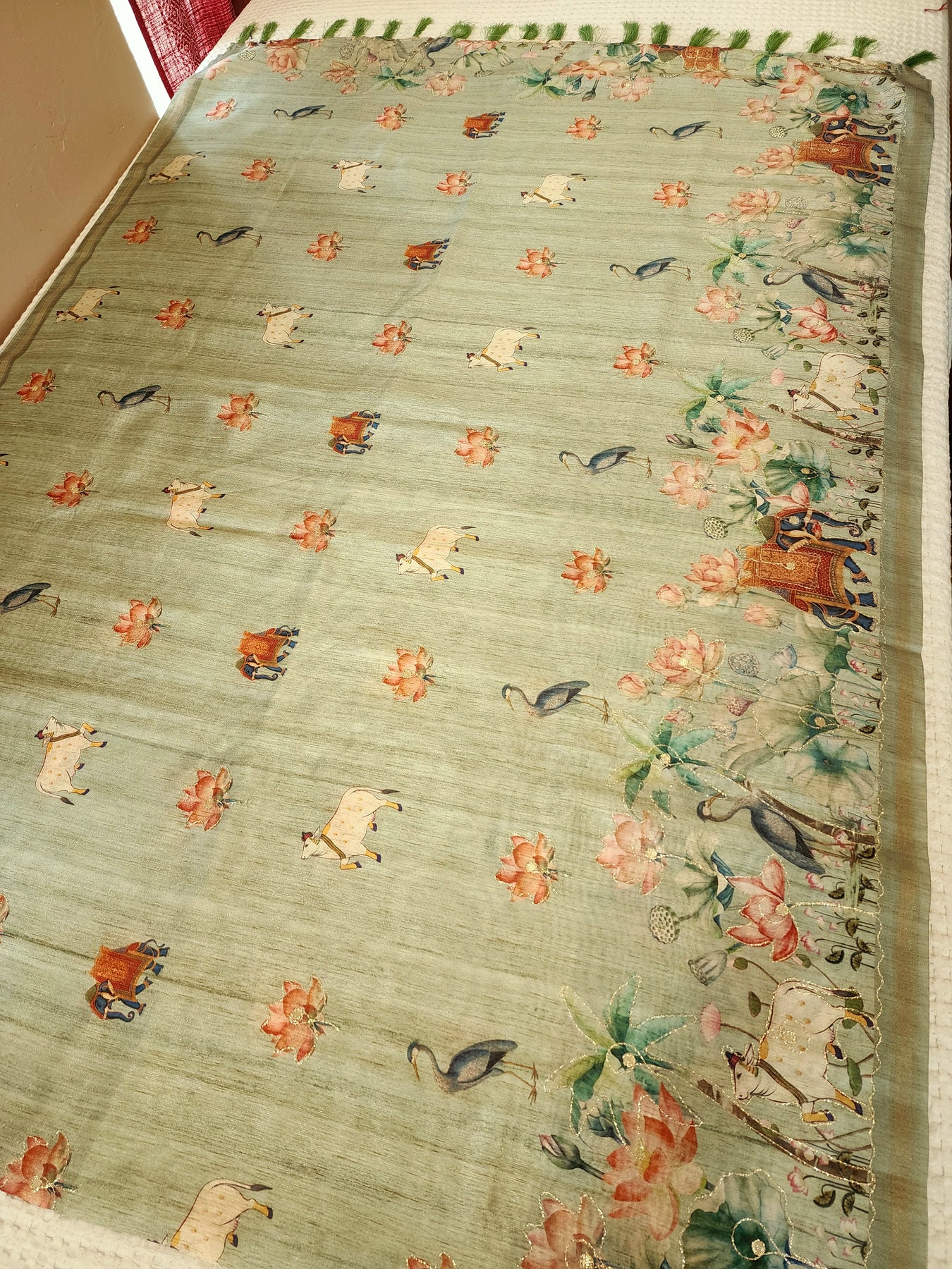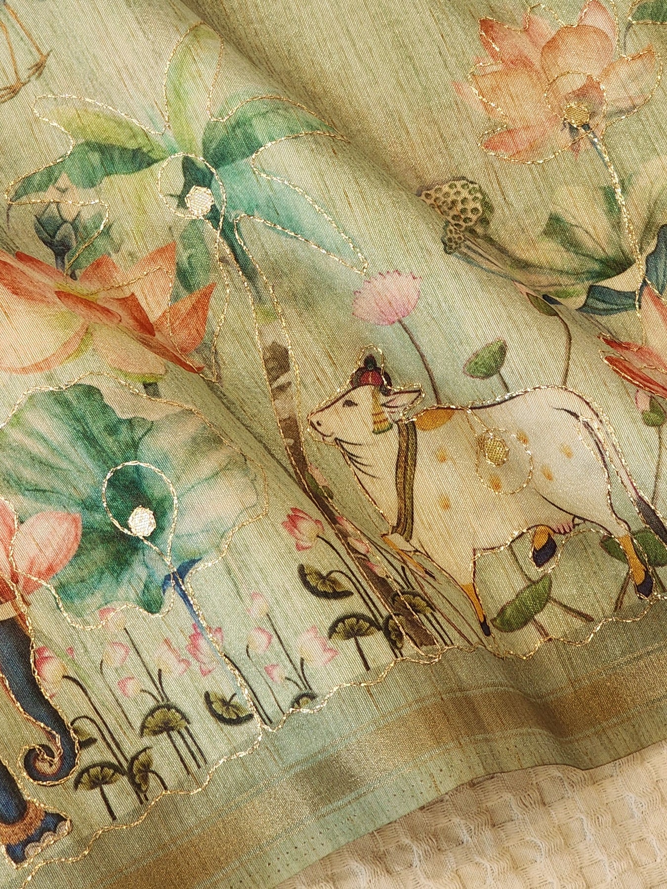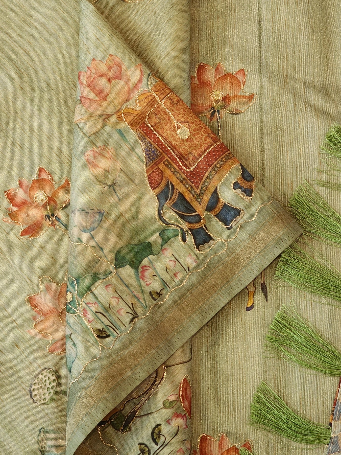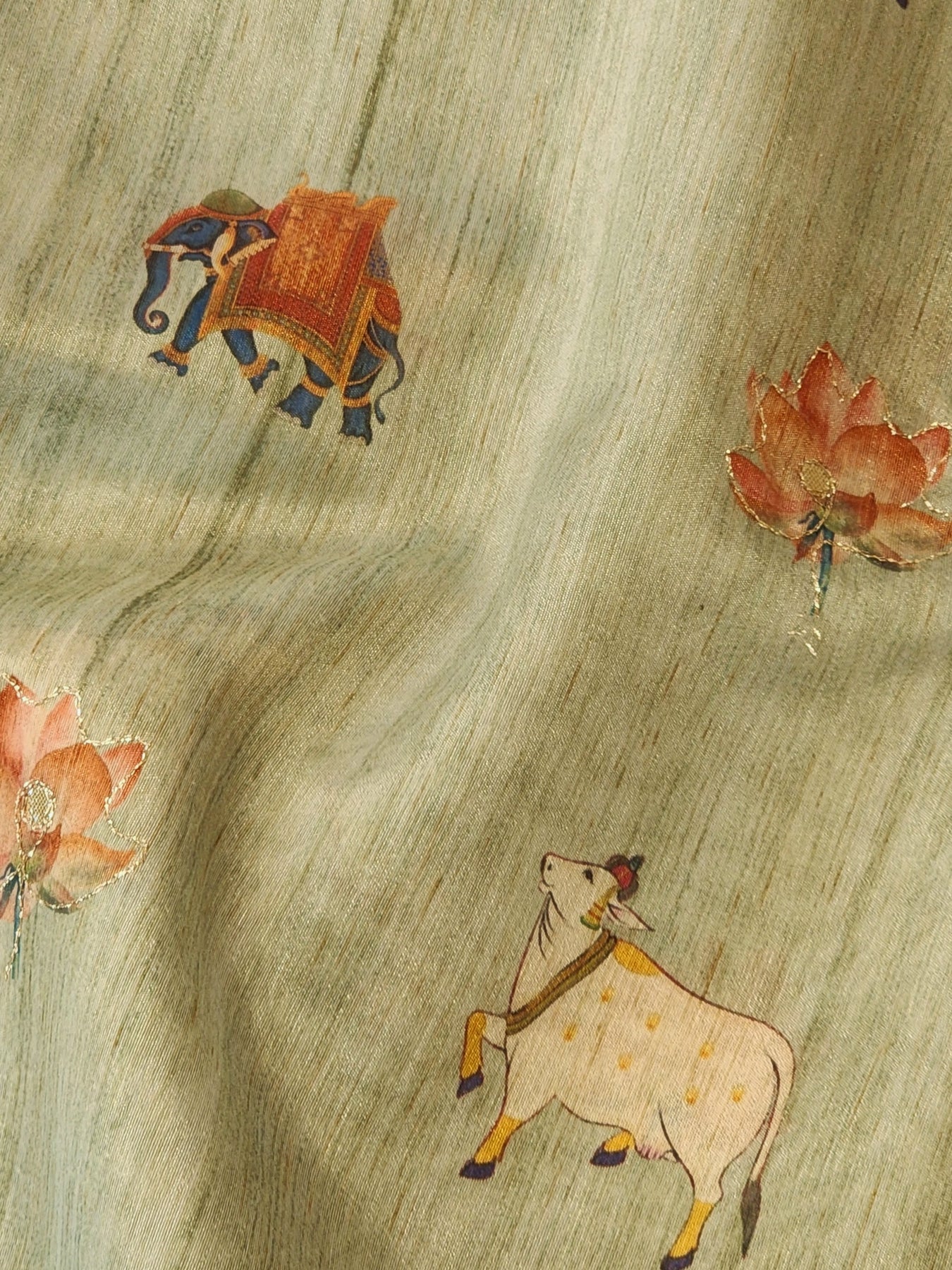 Silk Saree with Digital Prints and Gold Detailing