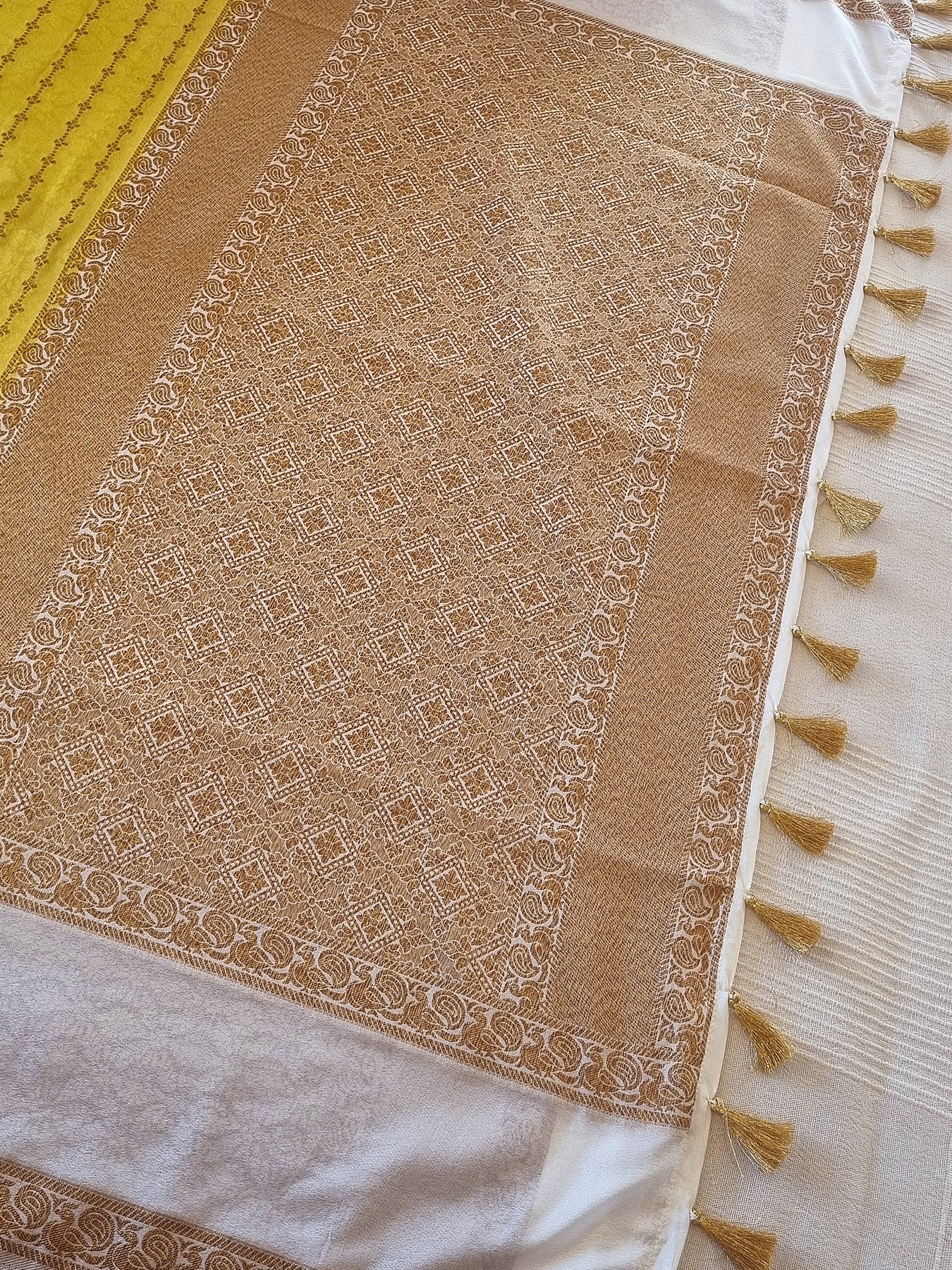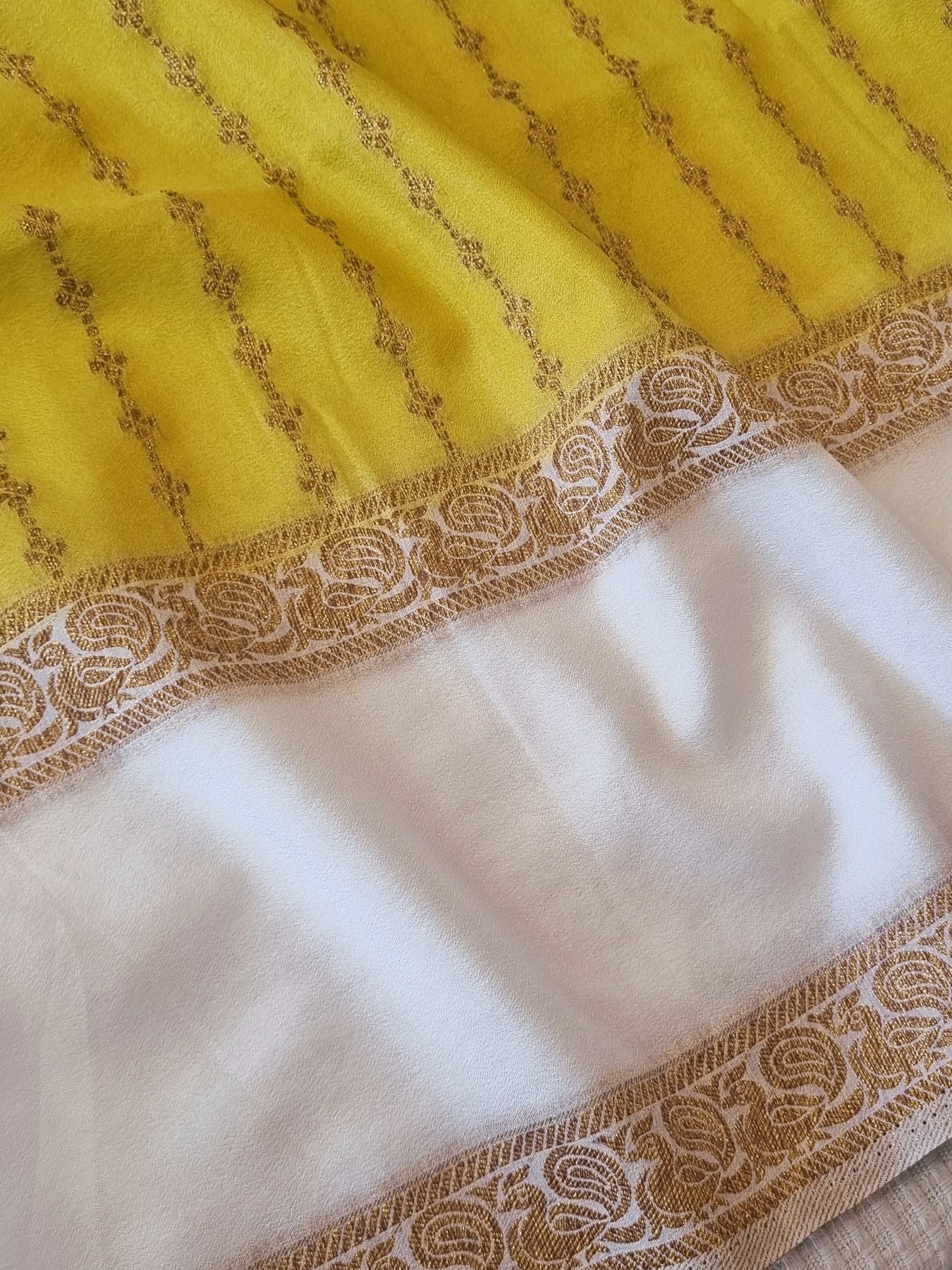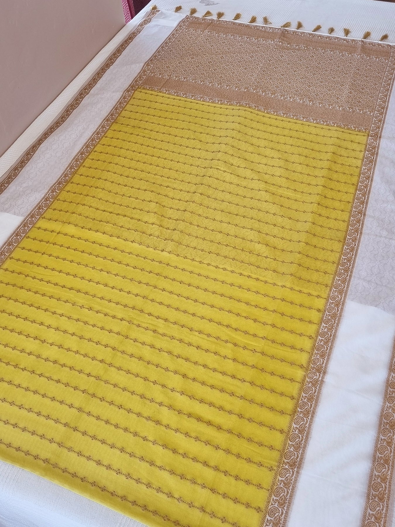 Semi Georgette Saree, with woven borders, paired with a Blouse fabric