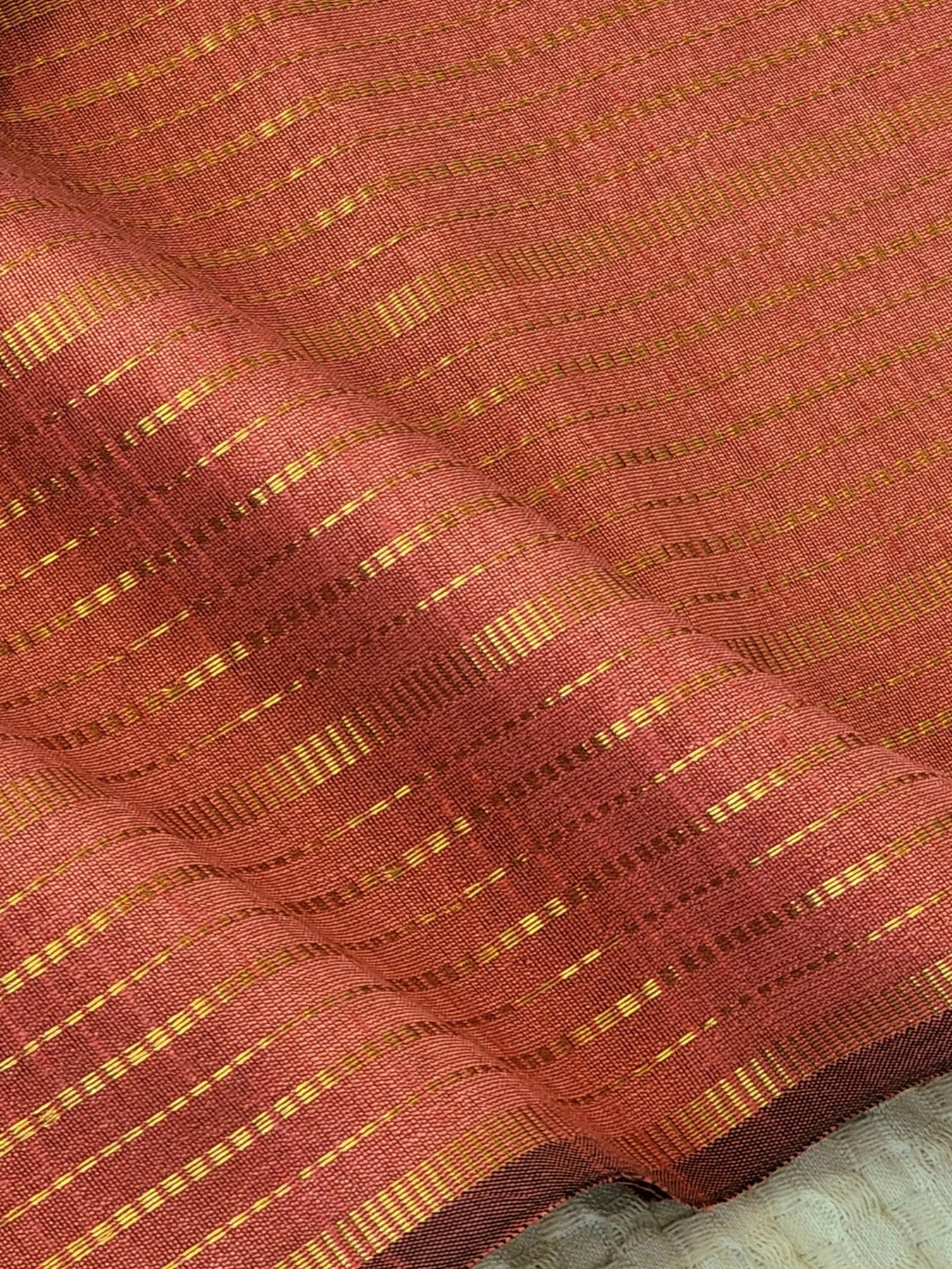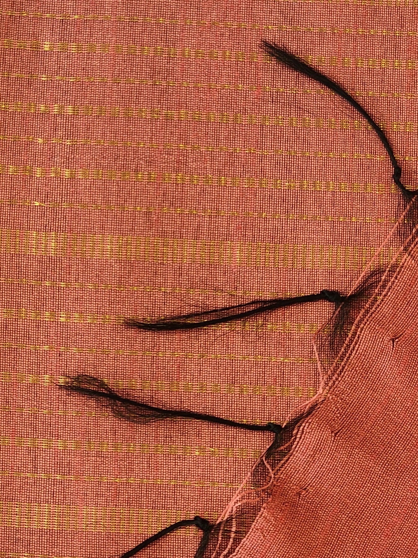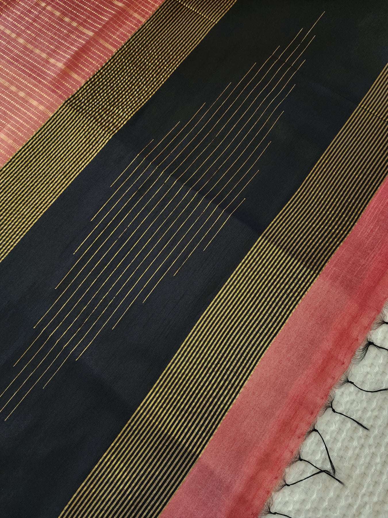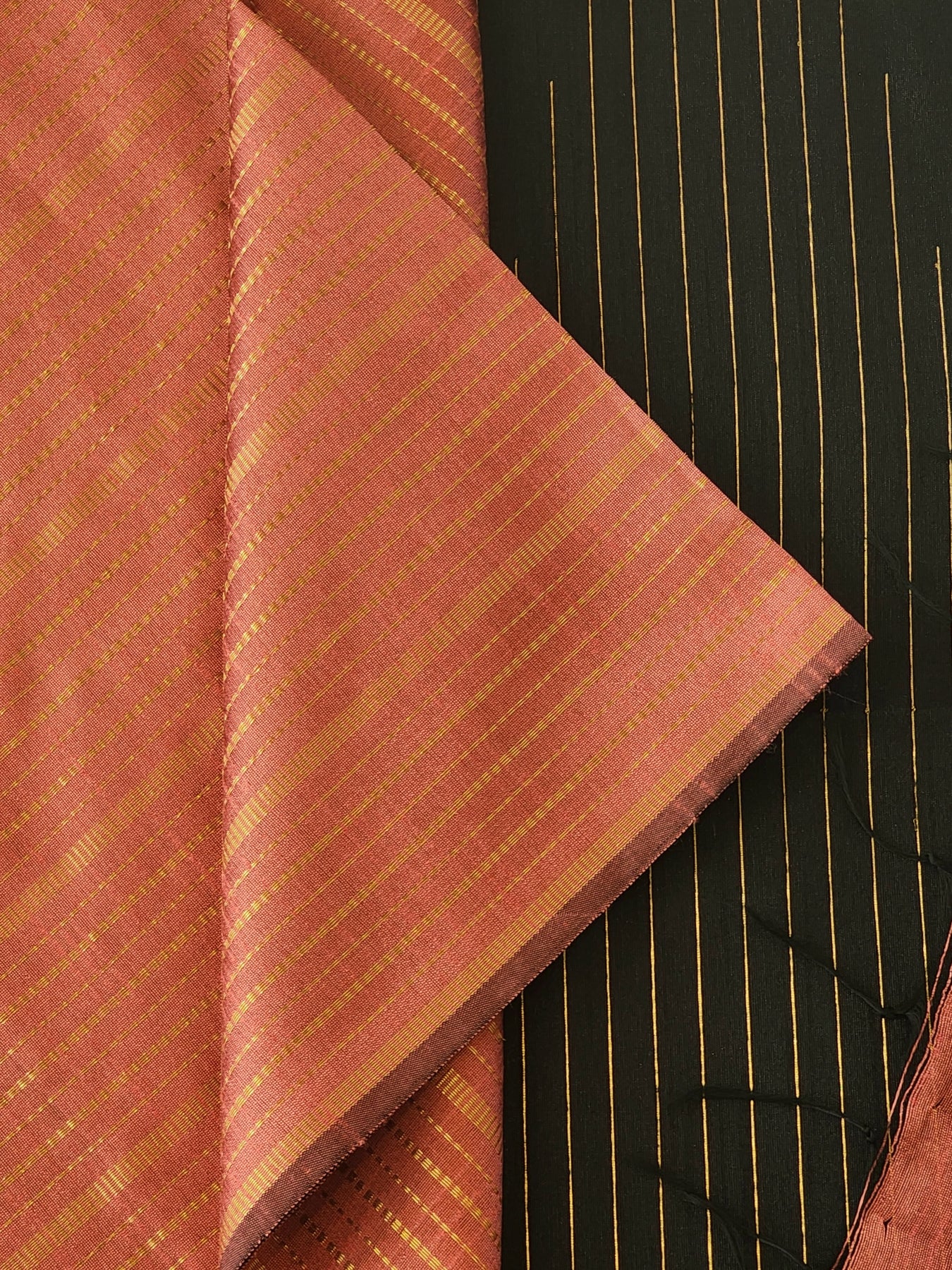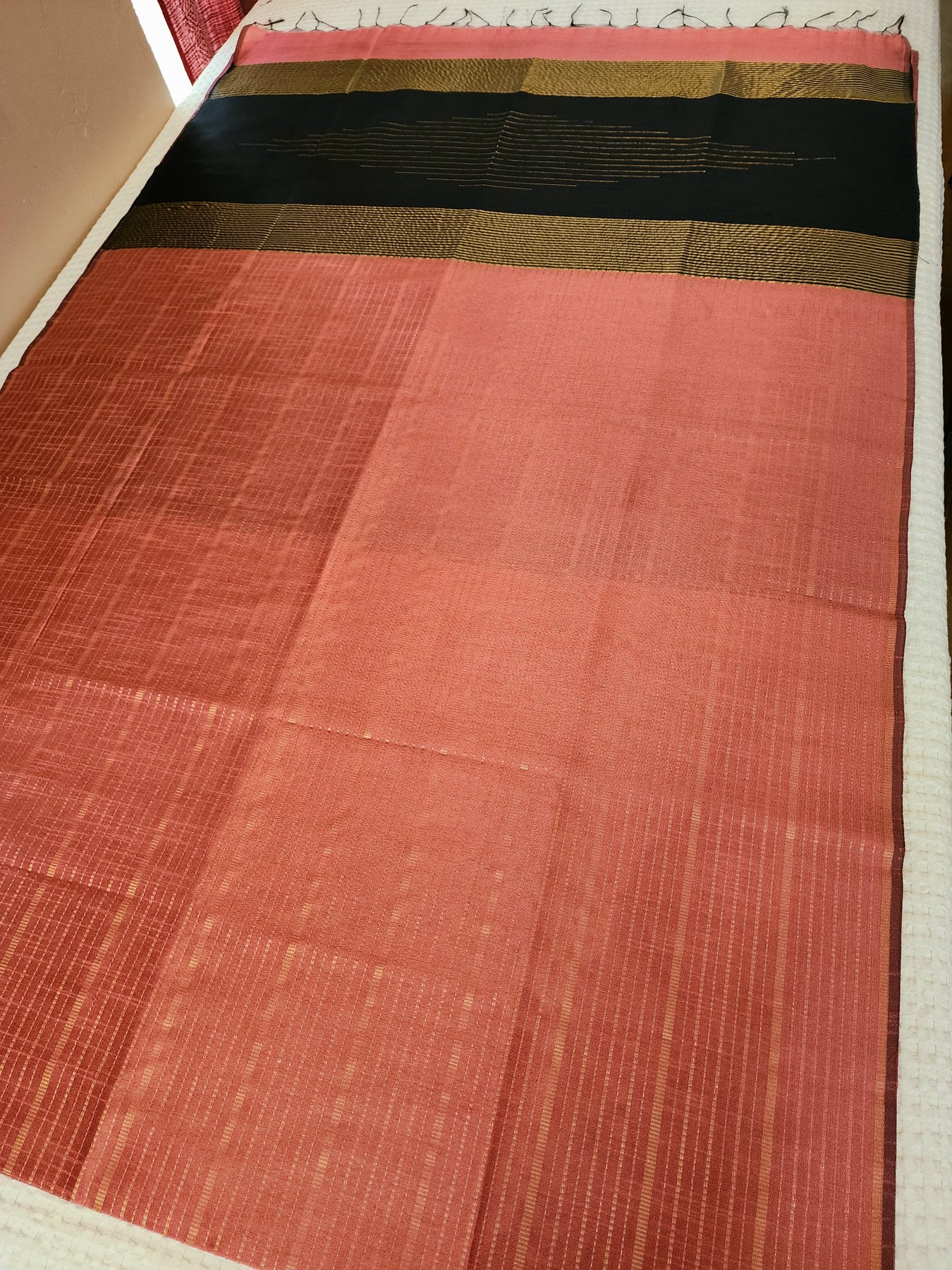 Pink Raw Silk Saree with a striped body and contrast pallu, beautifully finished with tassels