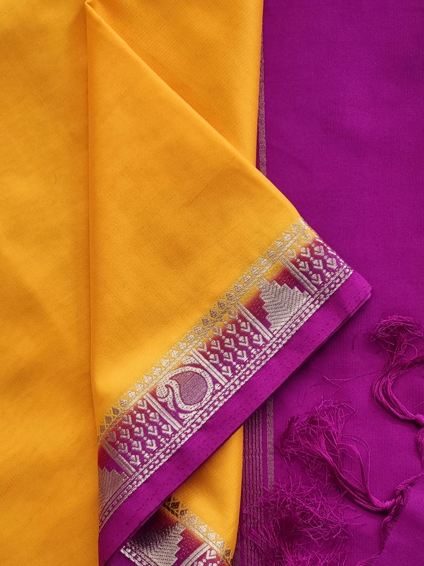 An elegant Yellow Semi Georgette Silk Saree with Floral Gold borders