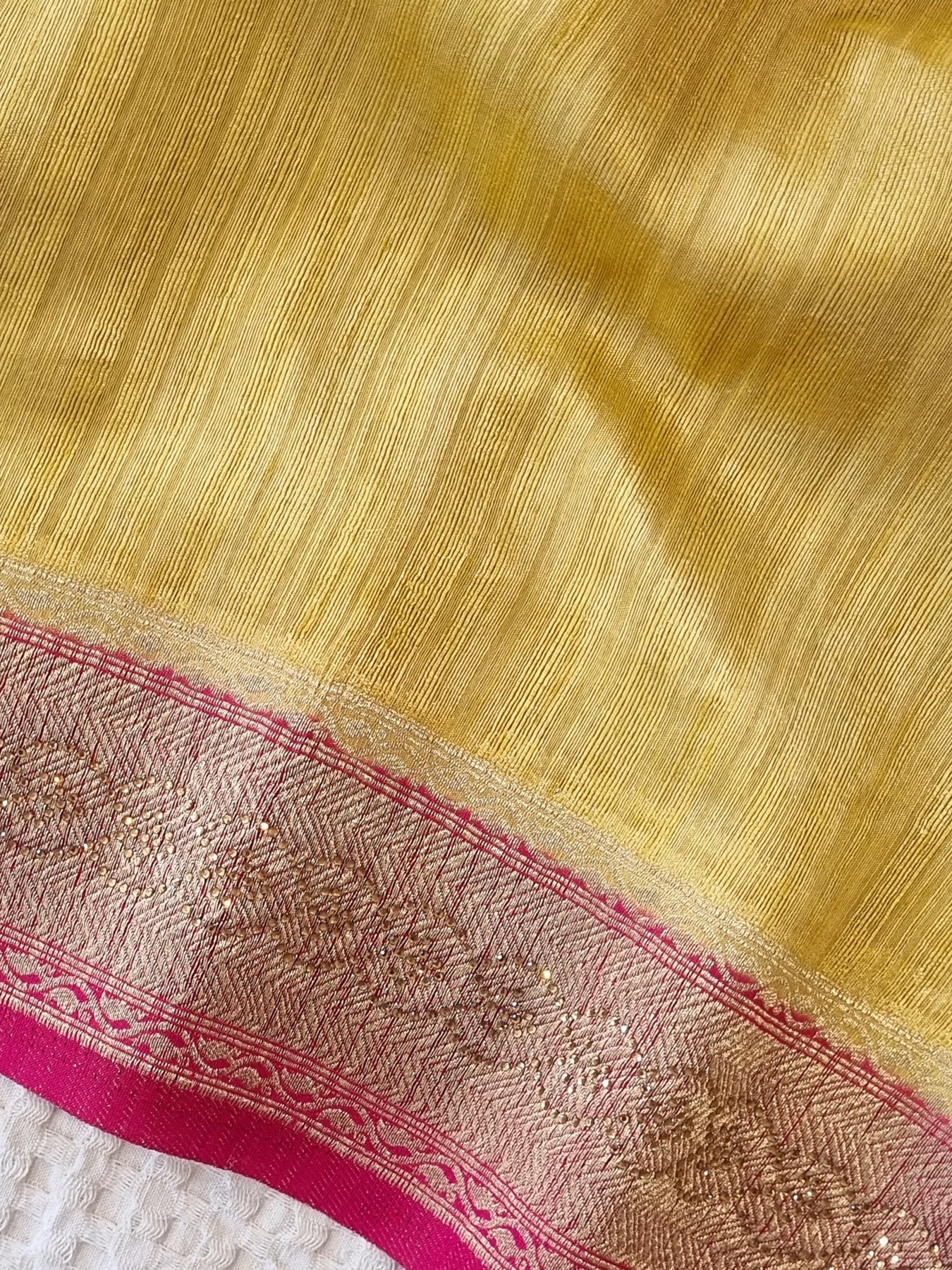 Yellow Silk Saree with and Contrast Borders