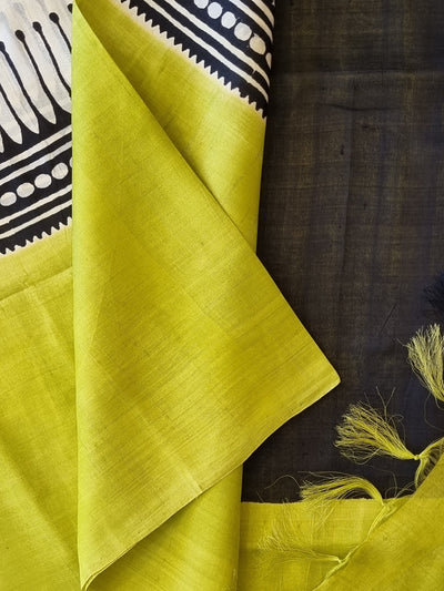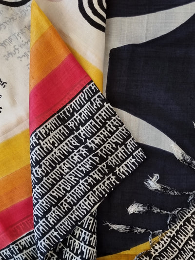 Handloom Murshidabad Pure Silk Saree with HandBlock Prints