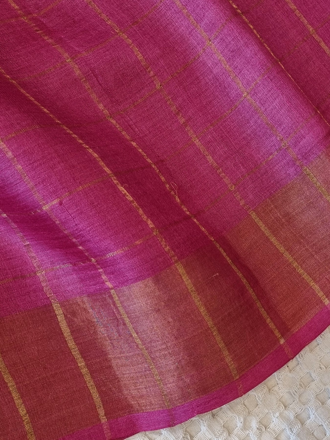 A Pink Checked Handloom Tussar Silk Saree with Handpainted Pichwai prints