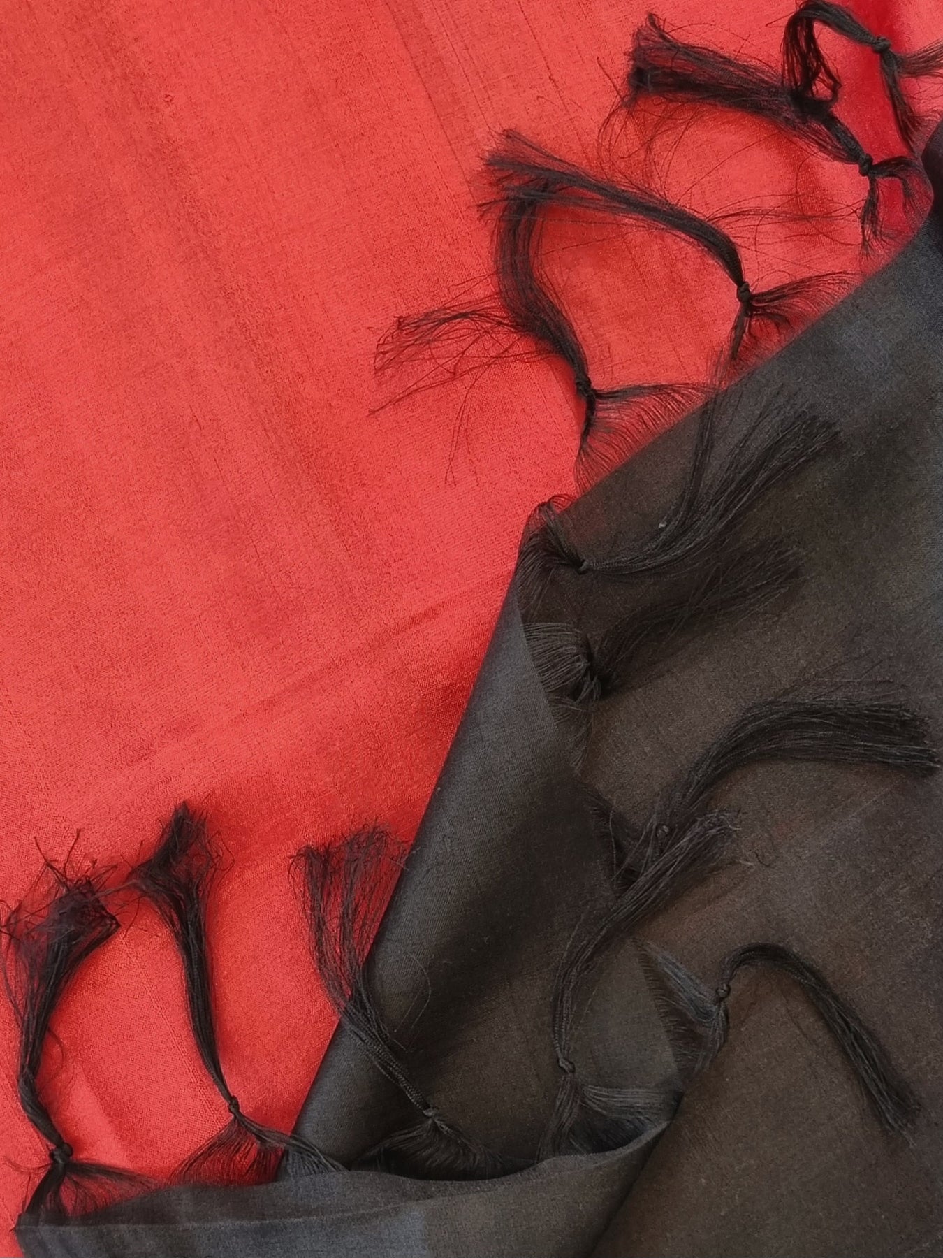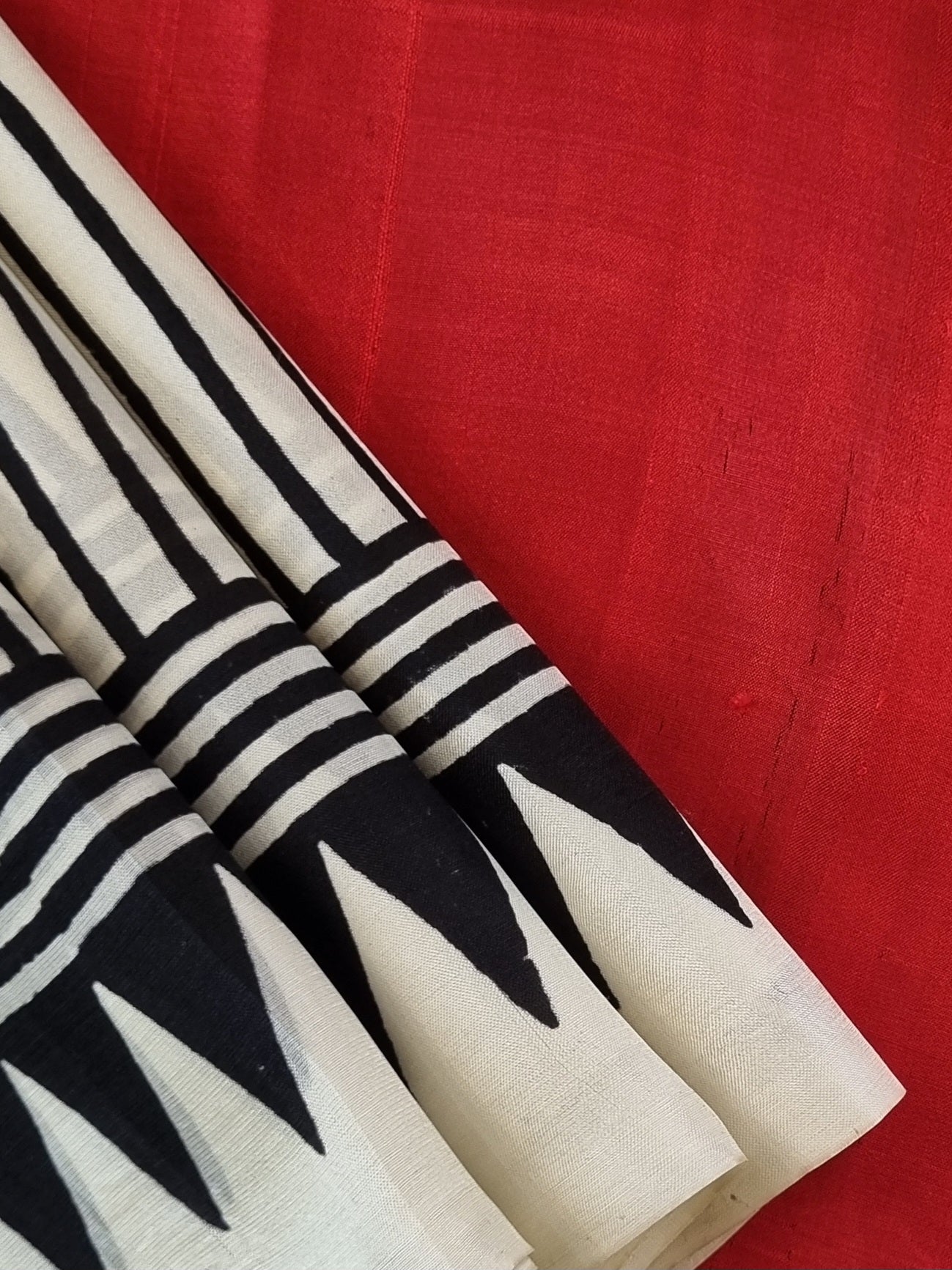 This is a genuine handwoven piece with Colour Body and contrast Red and Black block prints