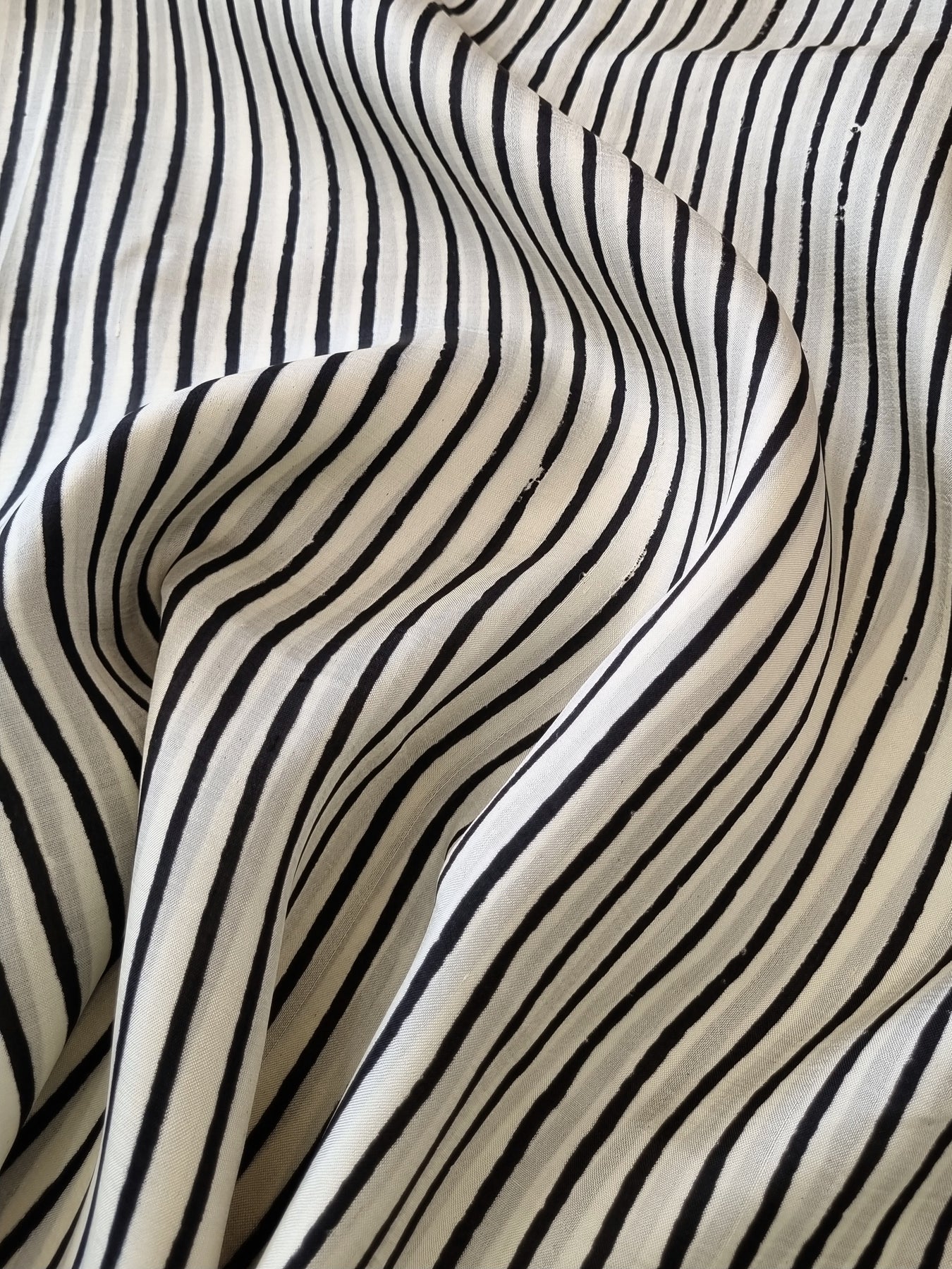 Characteristic imperfections associated with handblock printing may be observed, and colours may fade or bleed due to the traditional dyeing and printing process employed