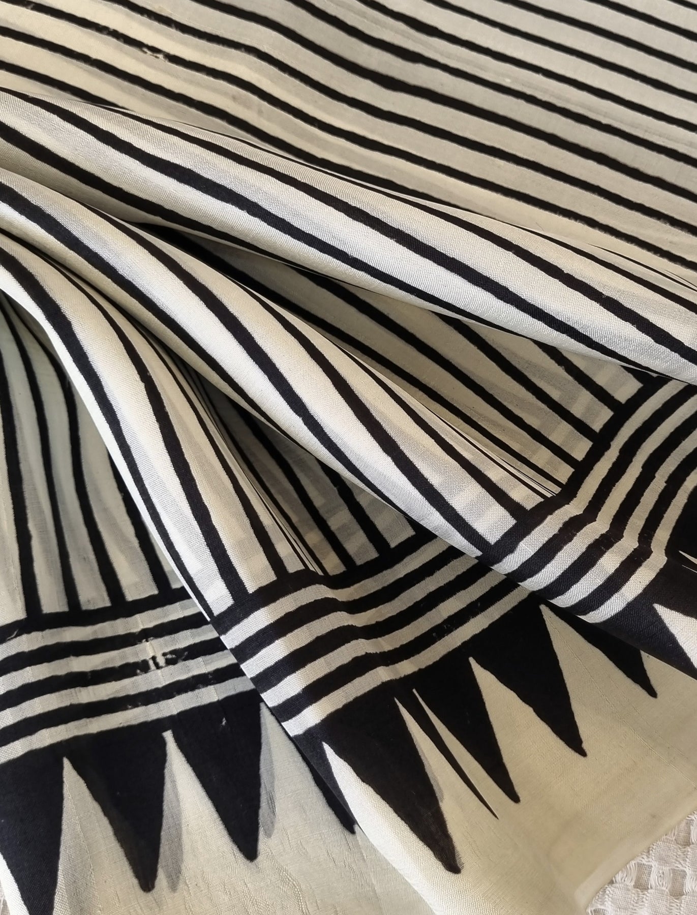 Handloom Murshidabad Pure Silk Saree with HandBlock Prints