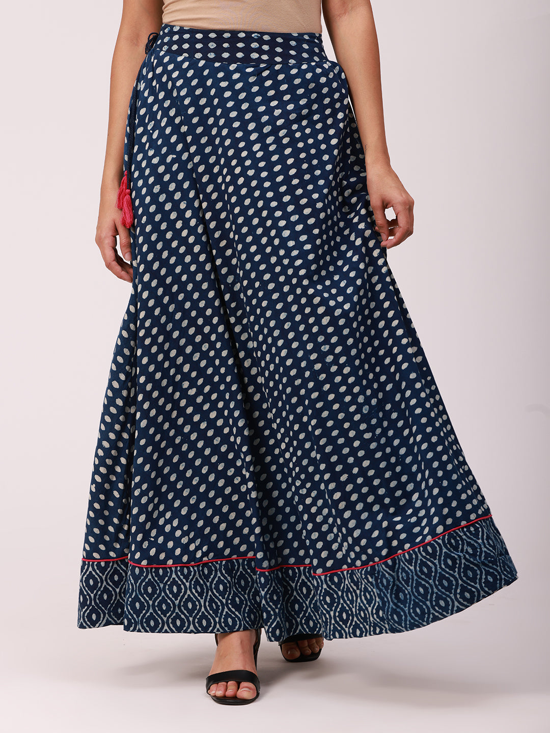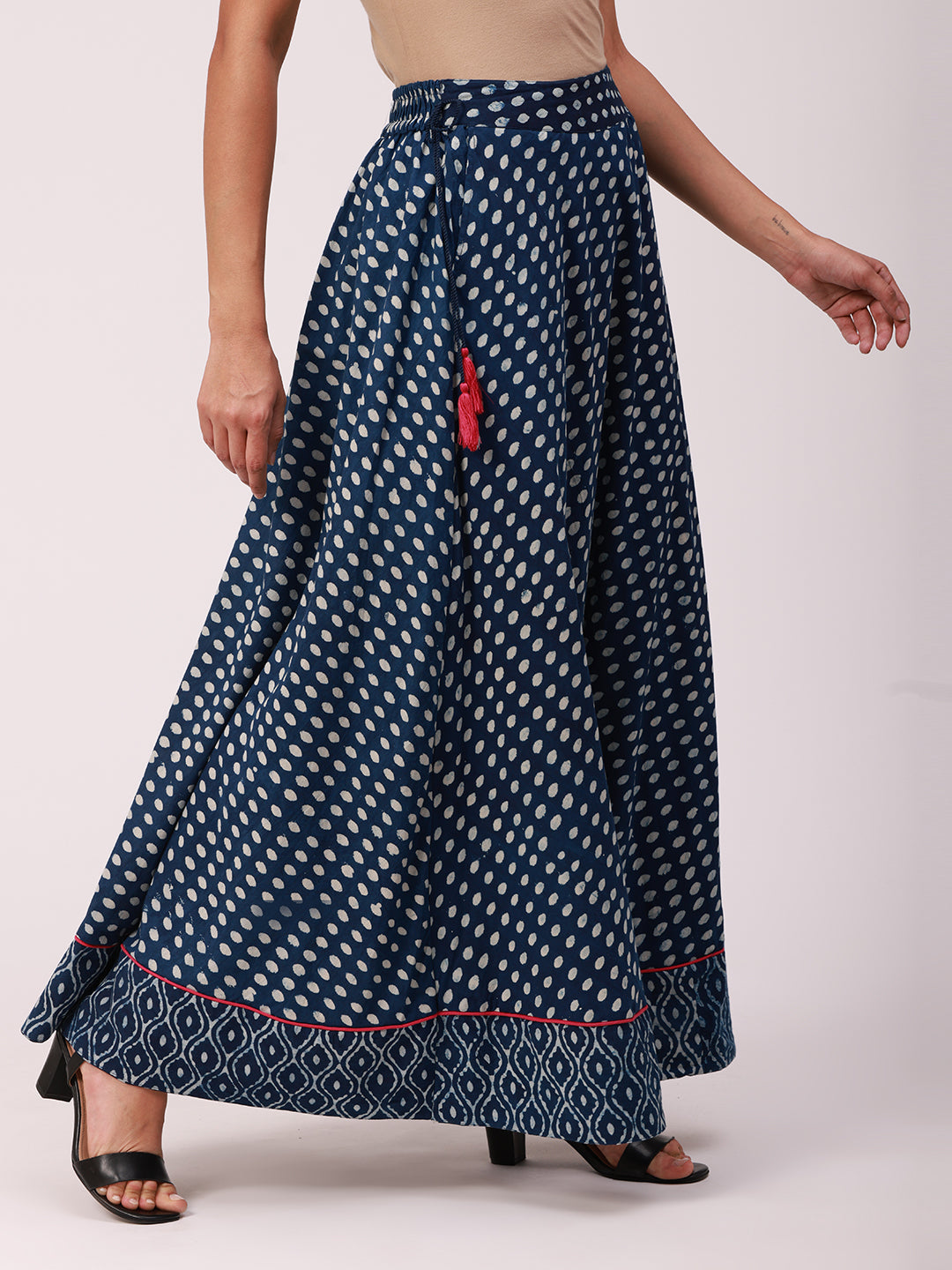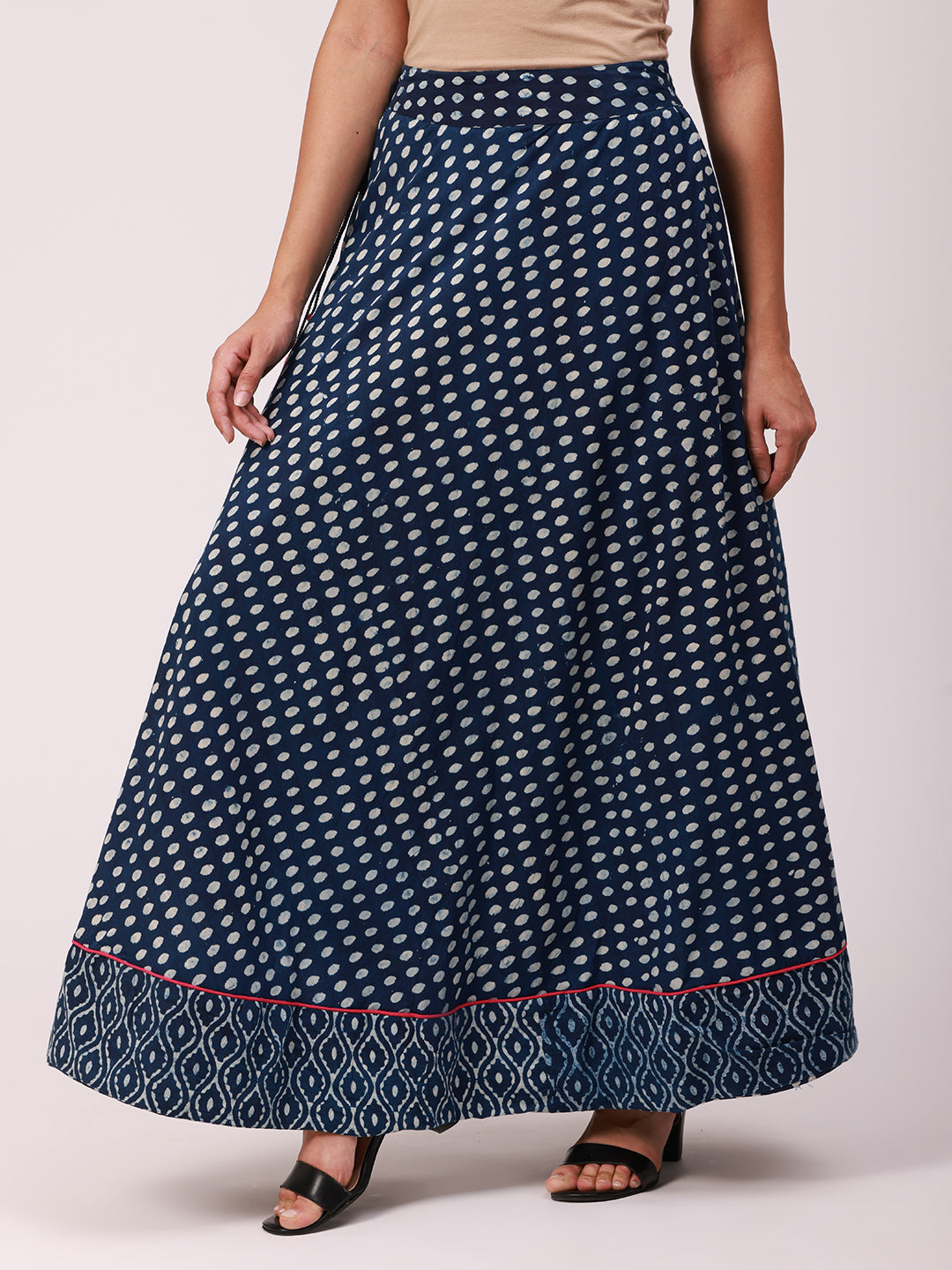 Block Print Flared Cotton Skirt