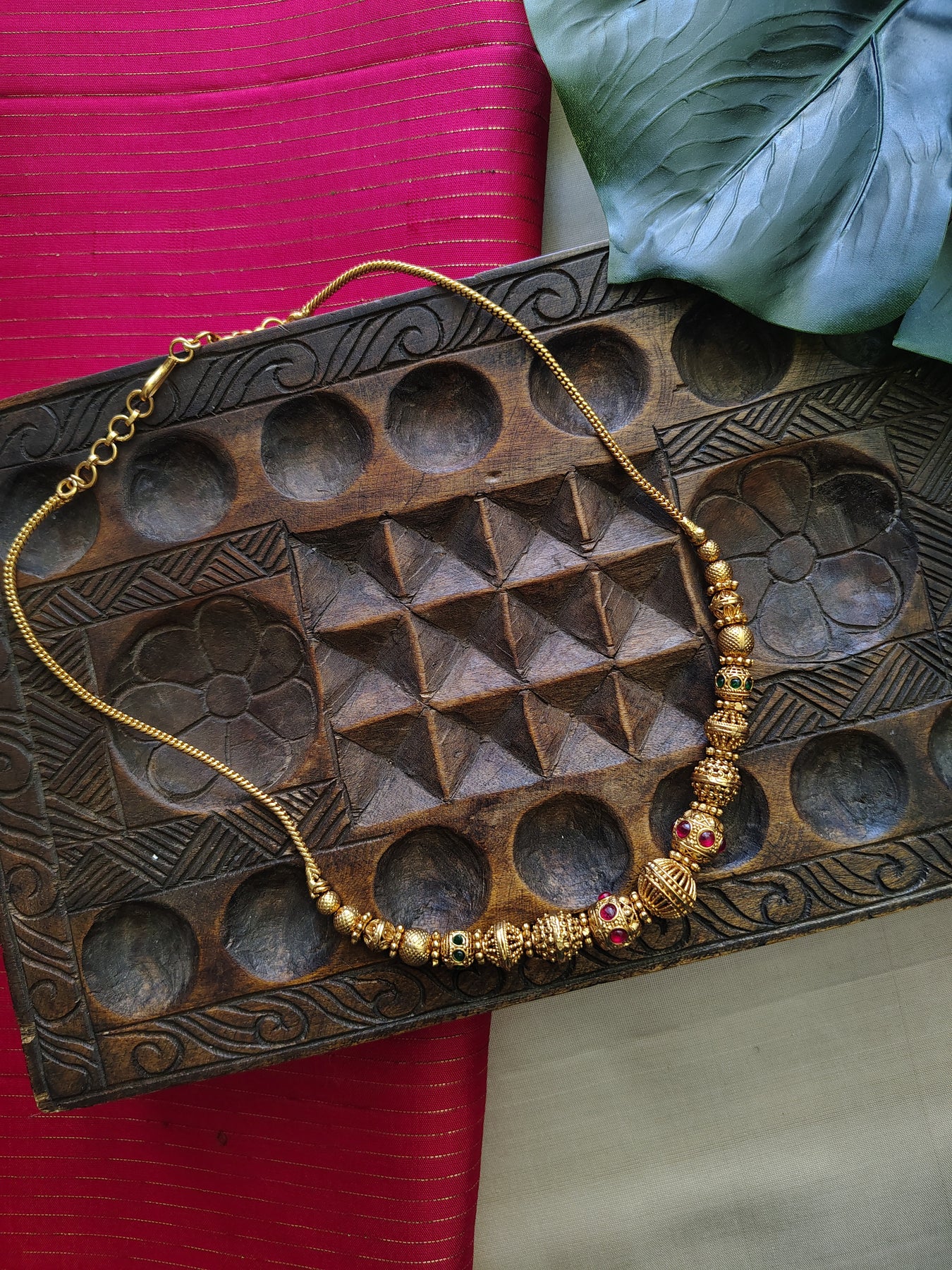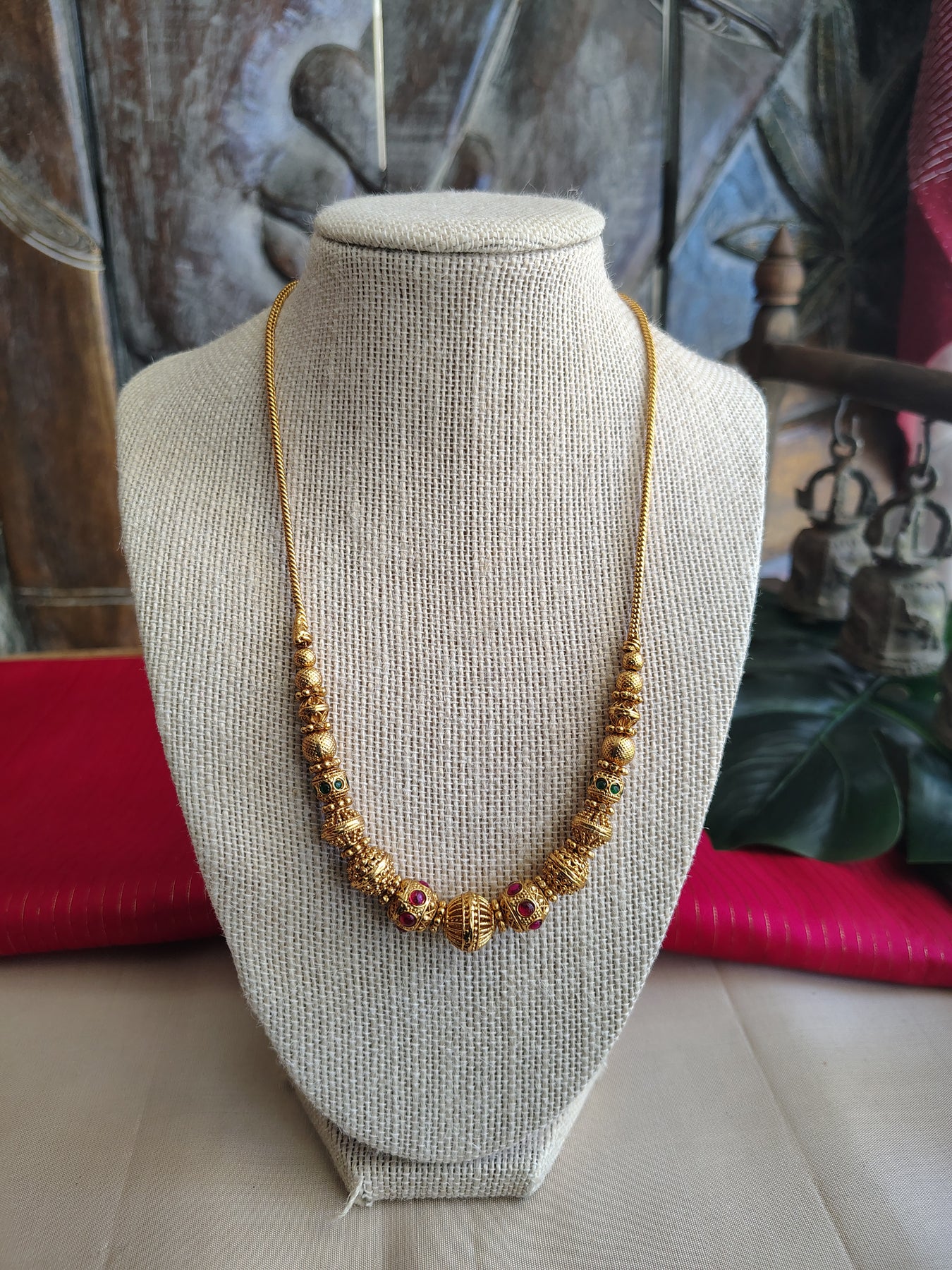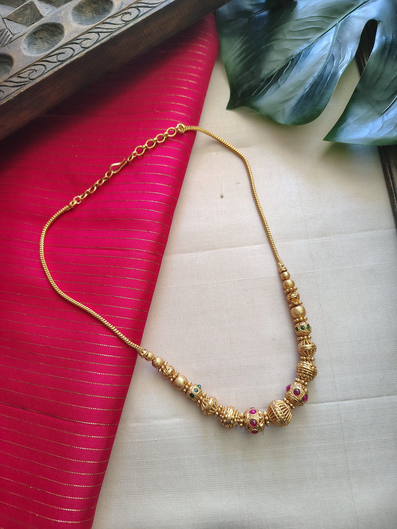 Antique gold finish beaded Kemp necklace chain