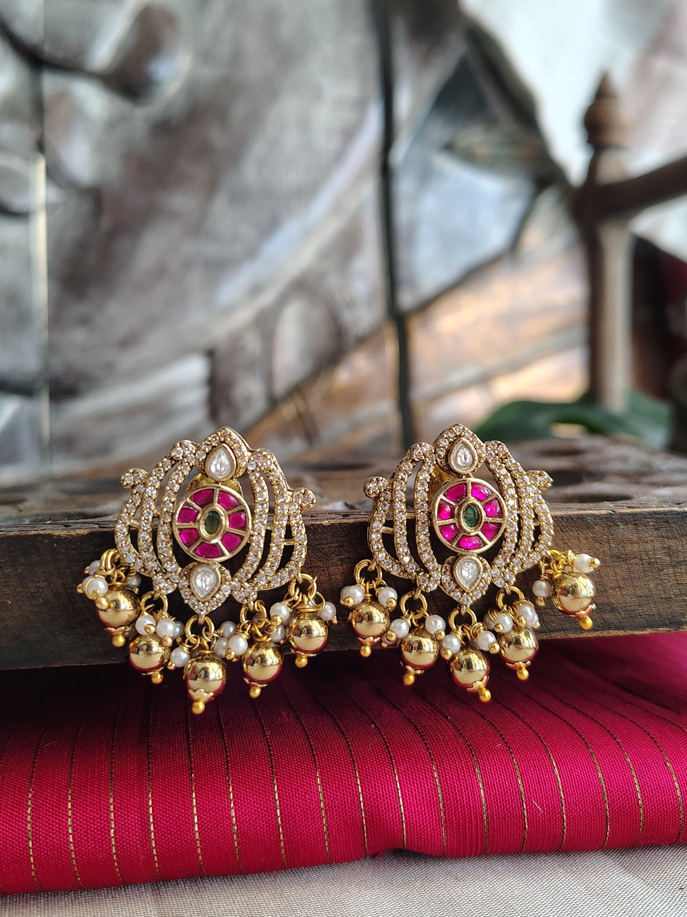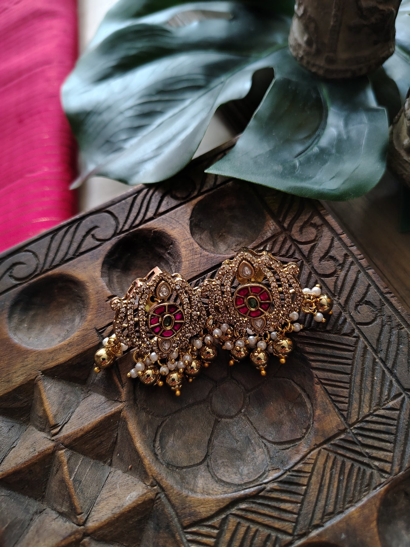This set comprises a Gold Hasli Choker necklace ornated with colourful stones, paired with matching Studs