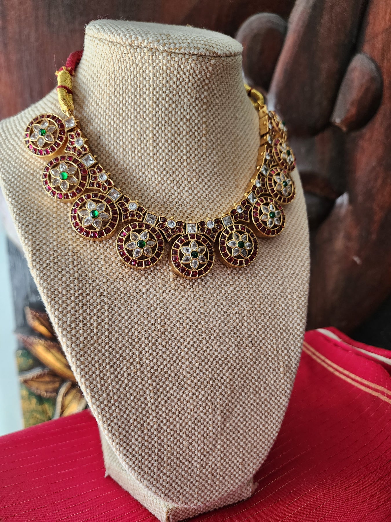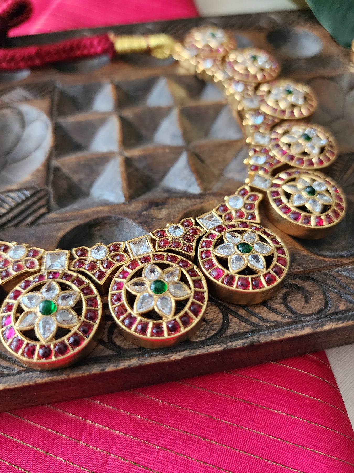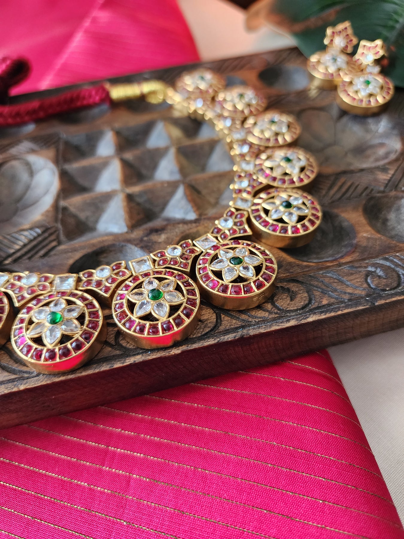 A beautiful necklace ornated with Premium Quality Real Kemp Stones, paired with Earrings