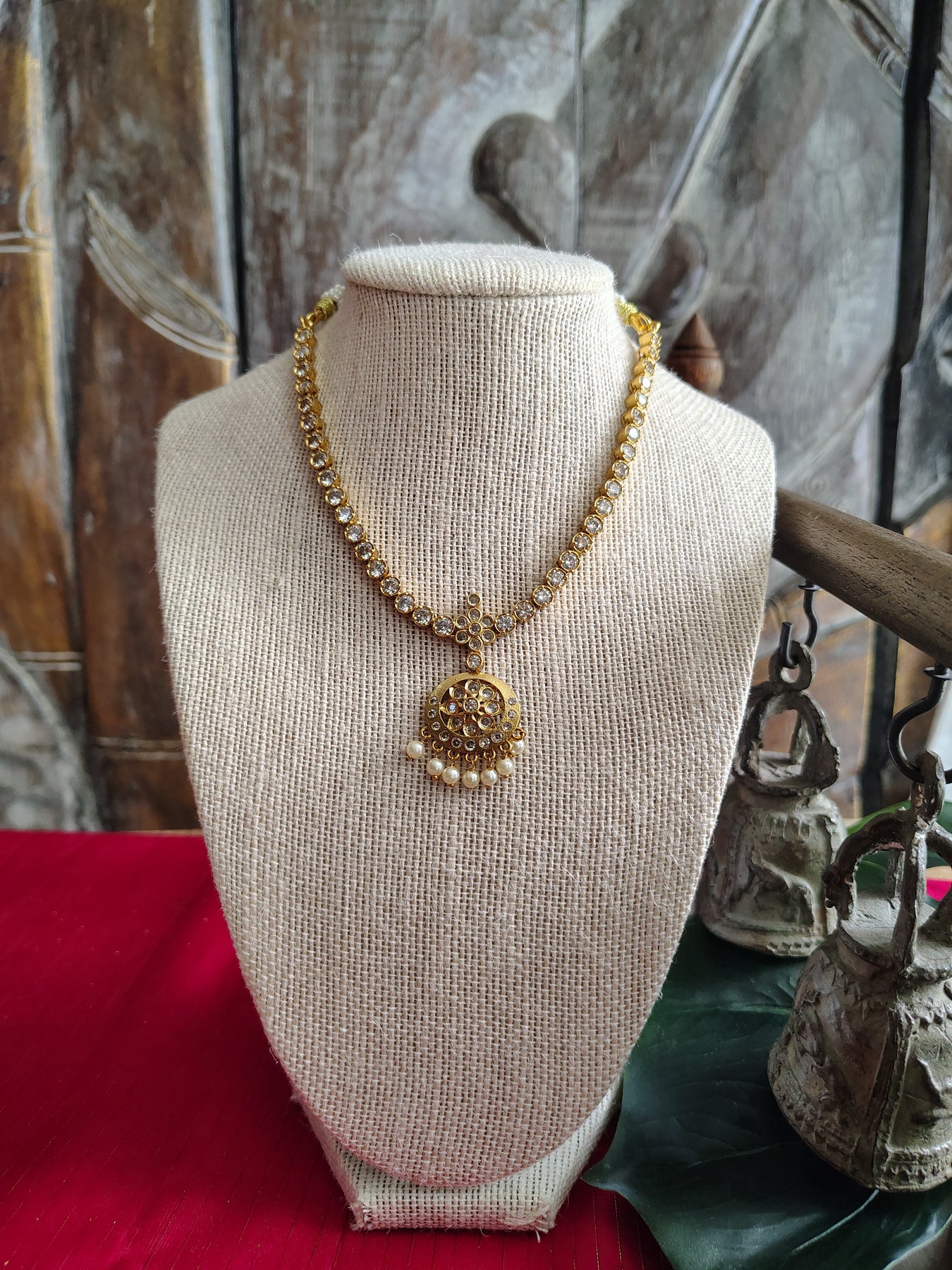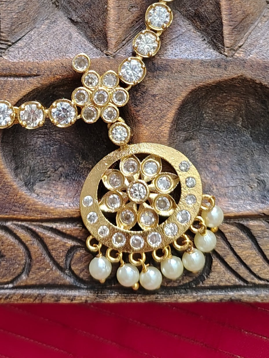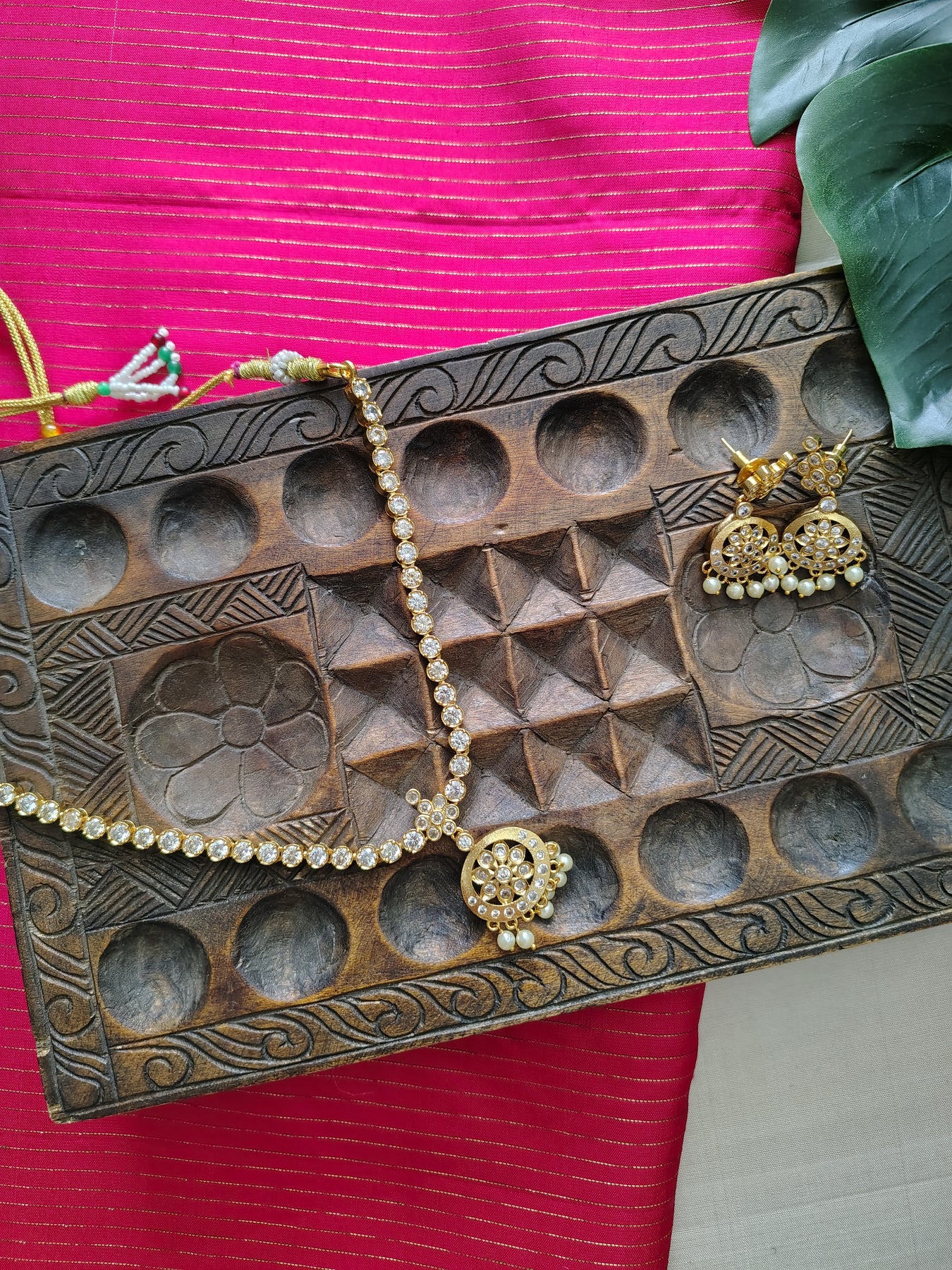 A beautiful necklace ornated with white stones paired with matching Earrings
