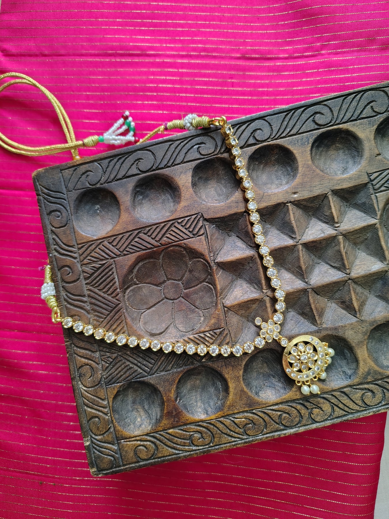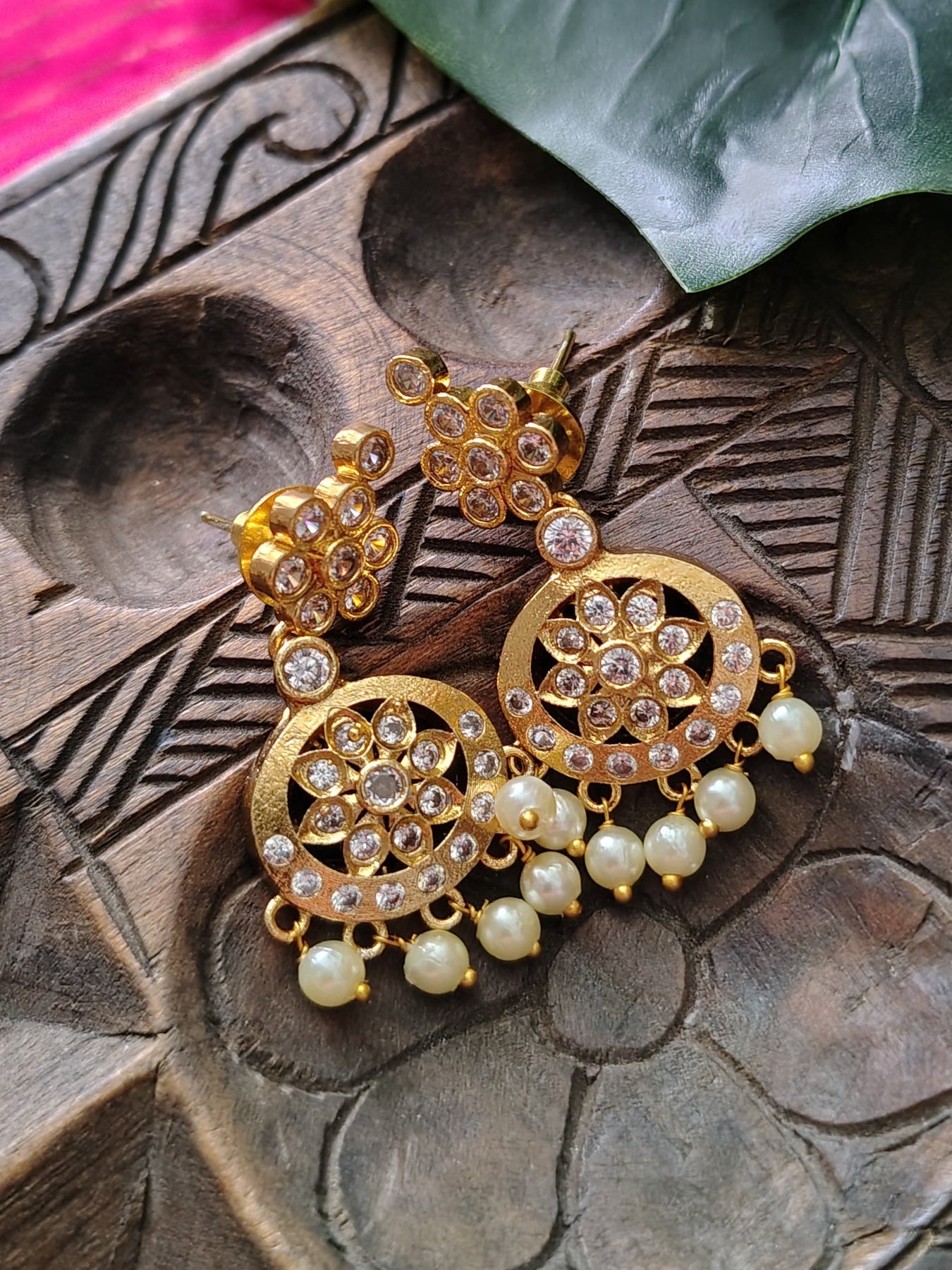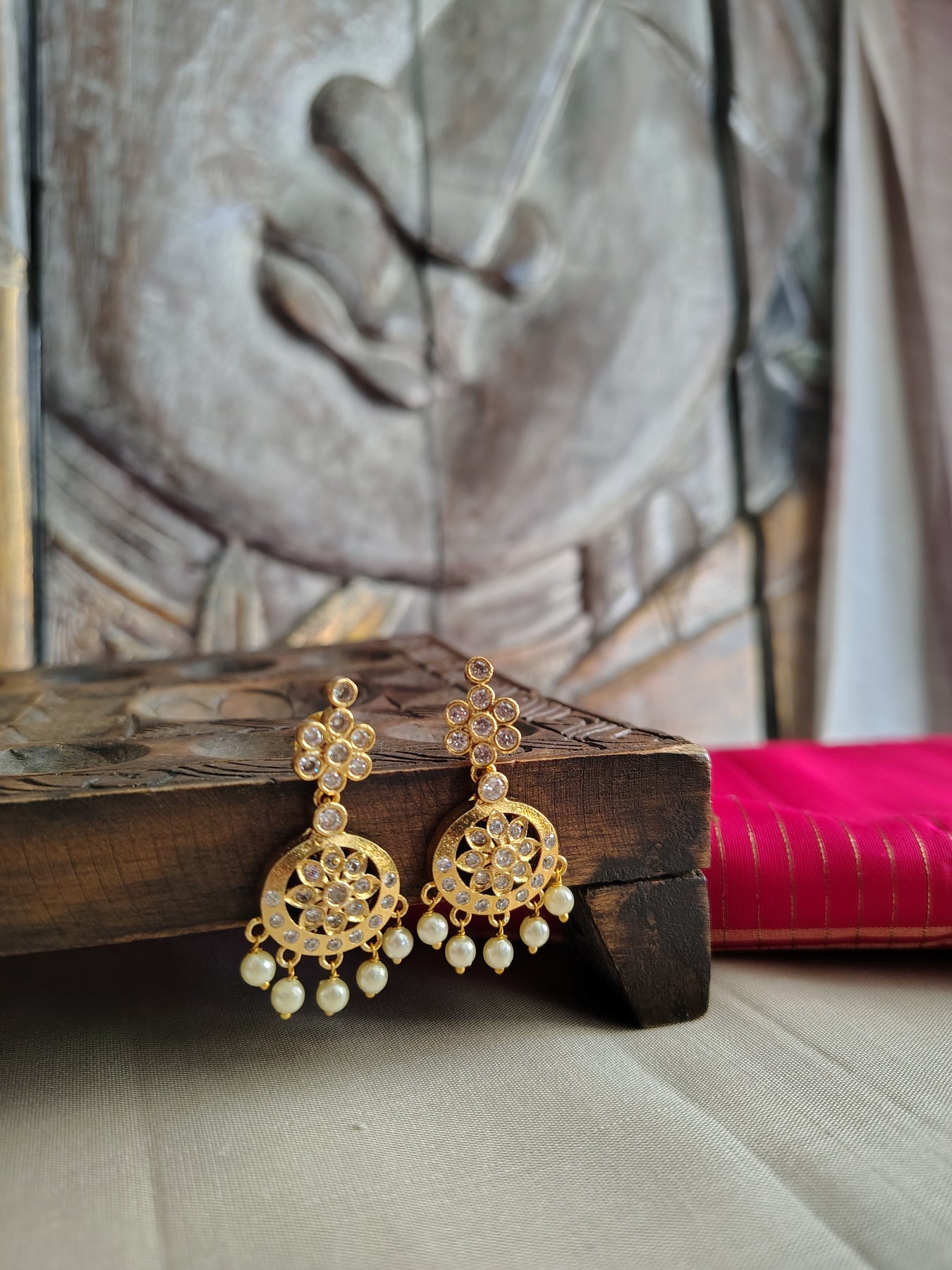 A beautiful necklace ornated with white stones paired with matching Earrings