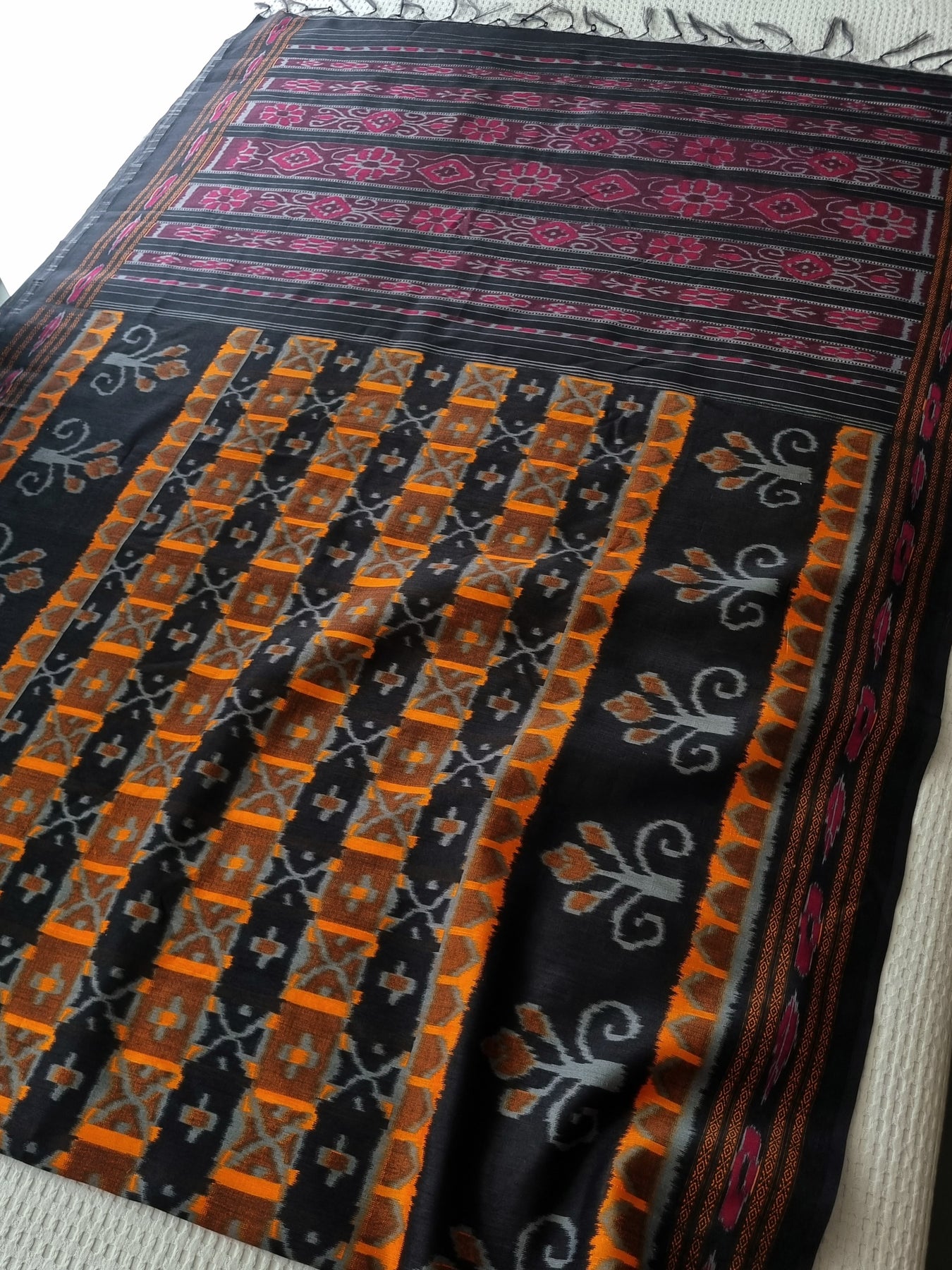 An elegant Semi Tussar Silk Saree with Ikat Prints