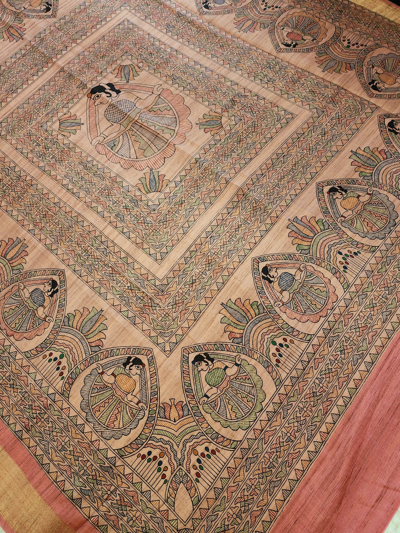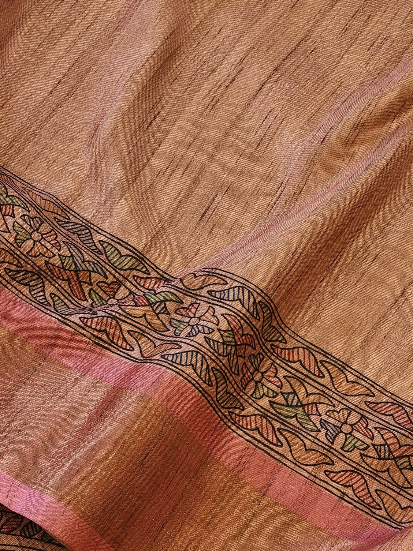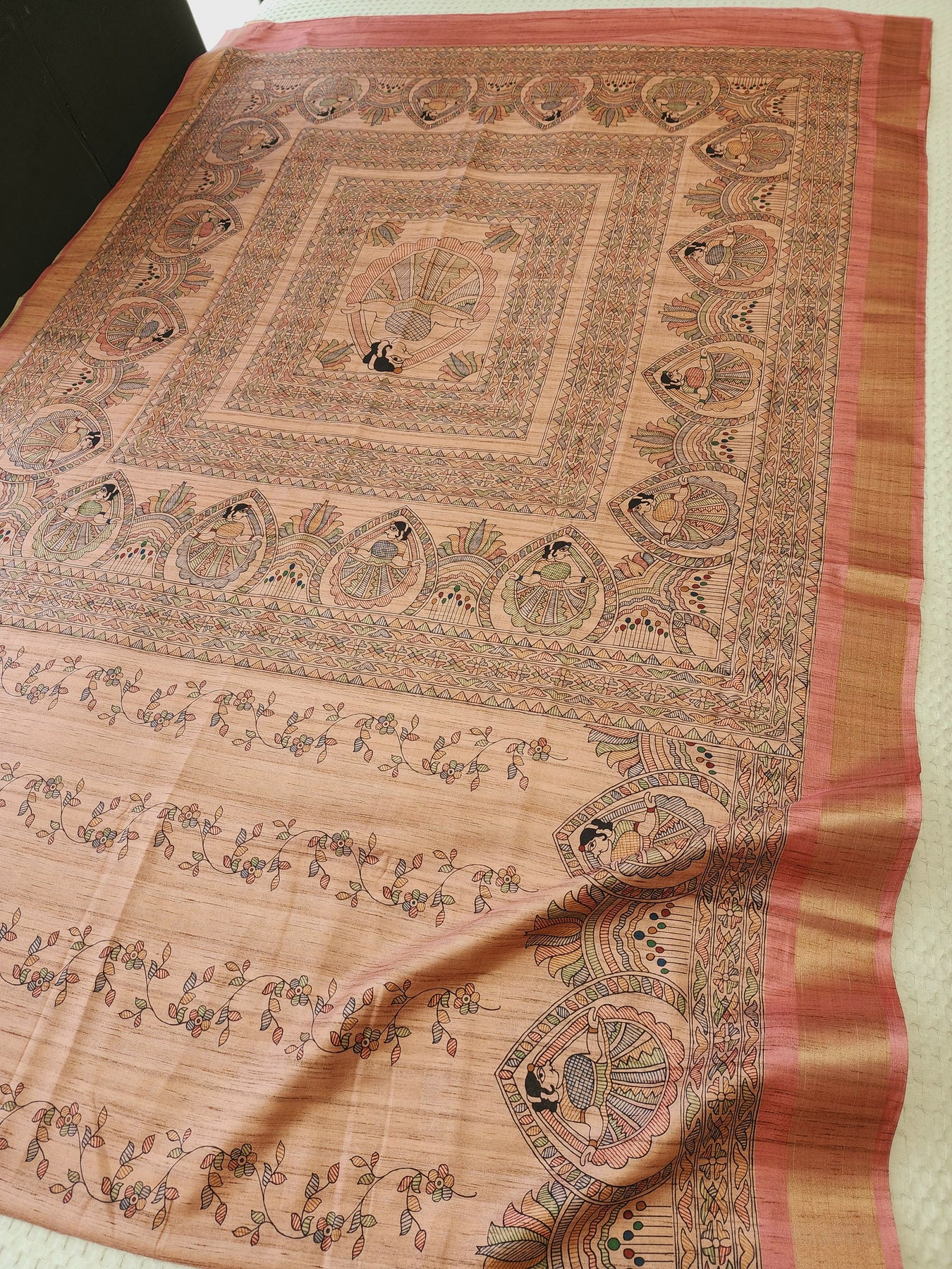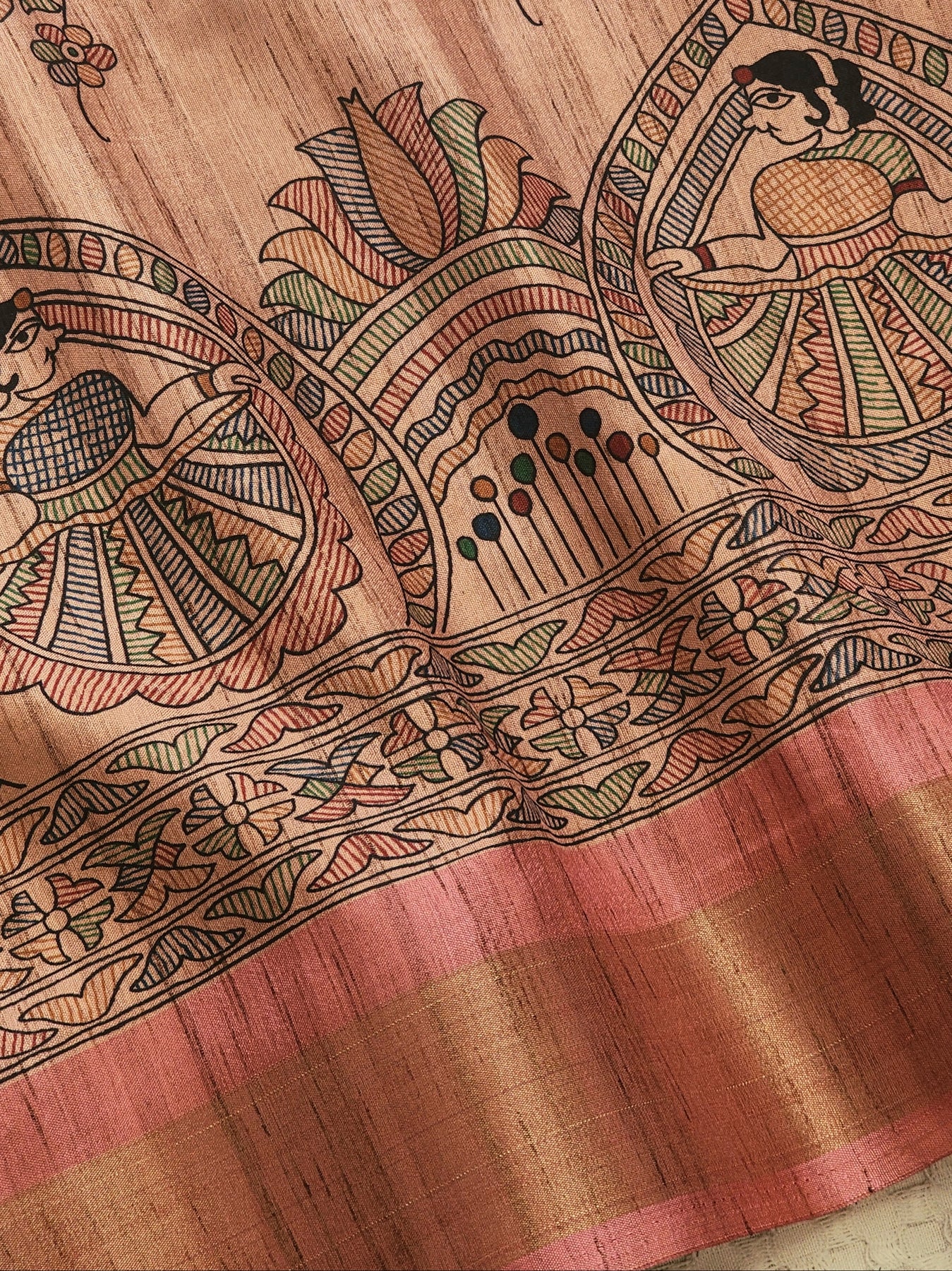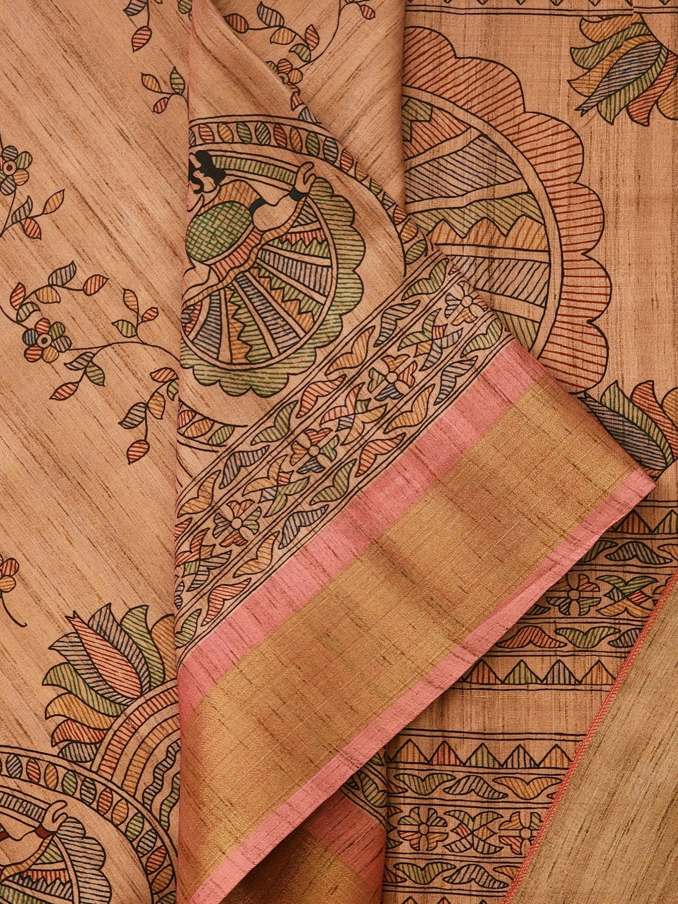 Pink Silk Cotton Saree with Madhubani Prints