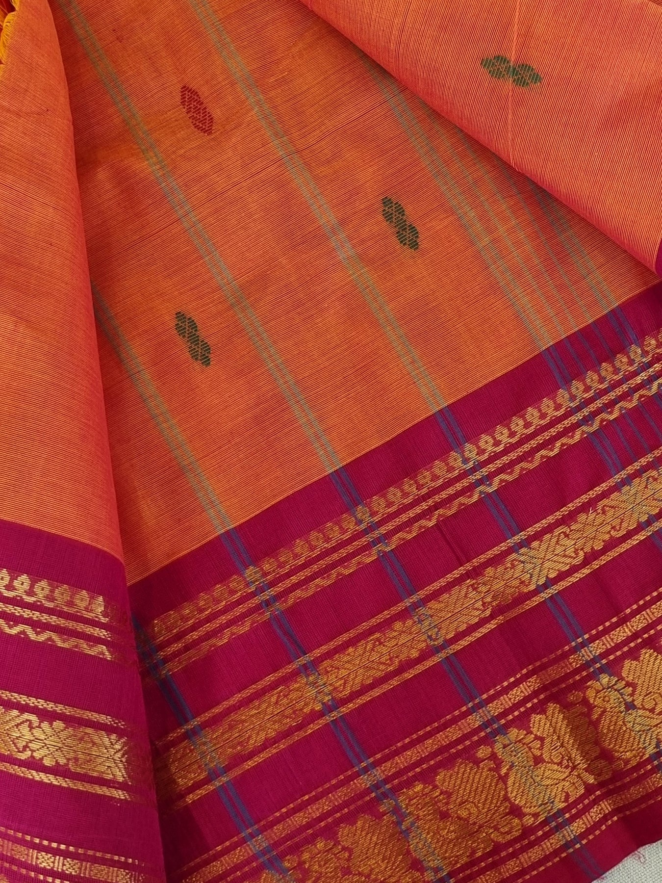 Handloom Kanchi Cotton Saree with running blouse fabric