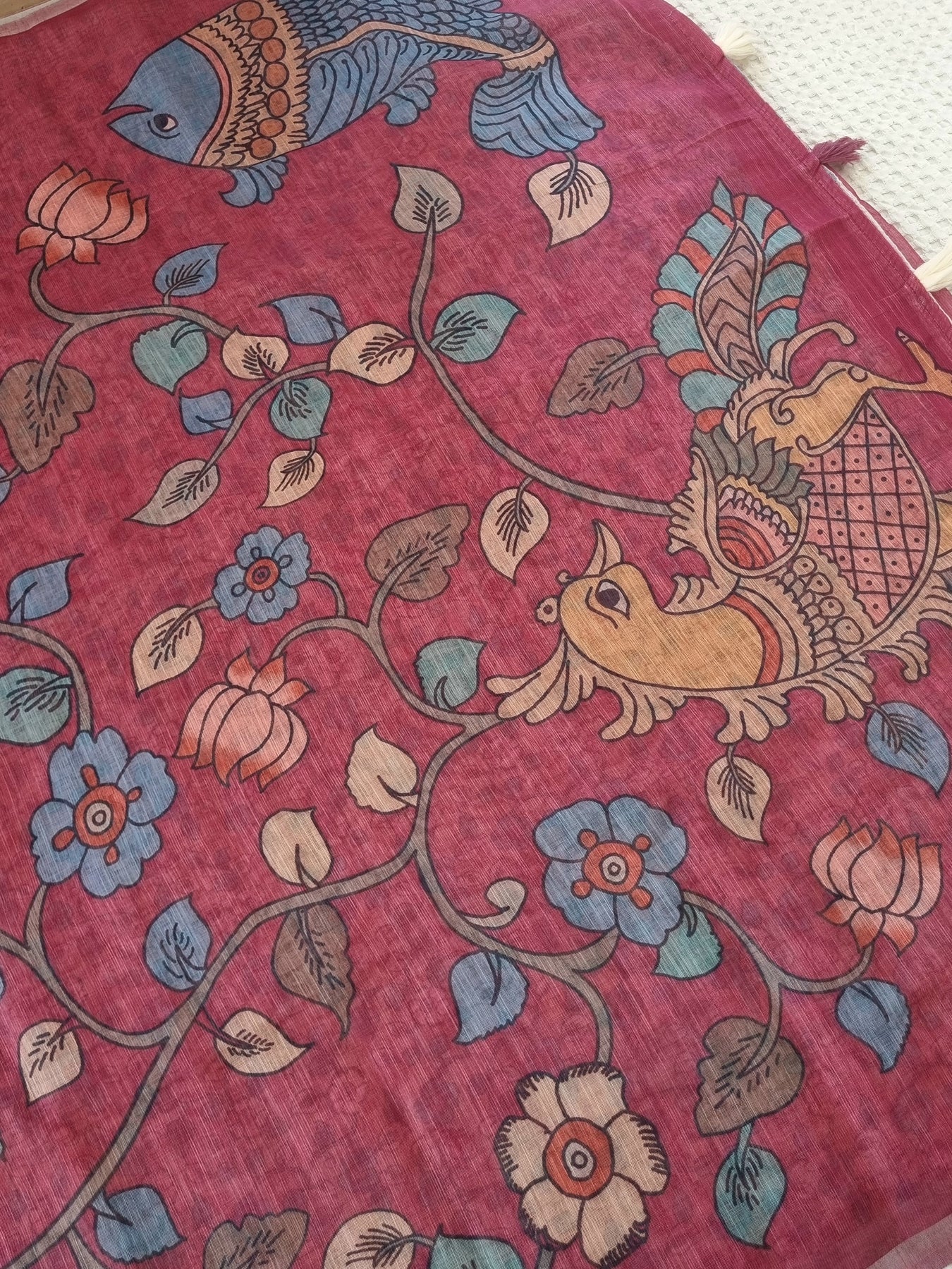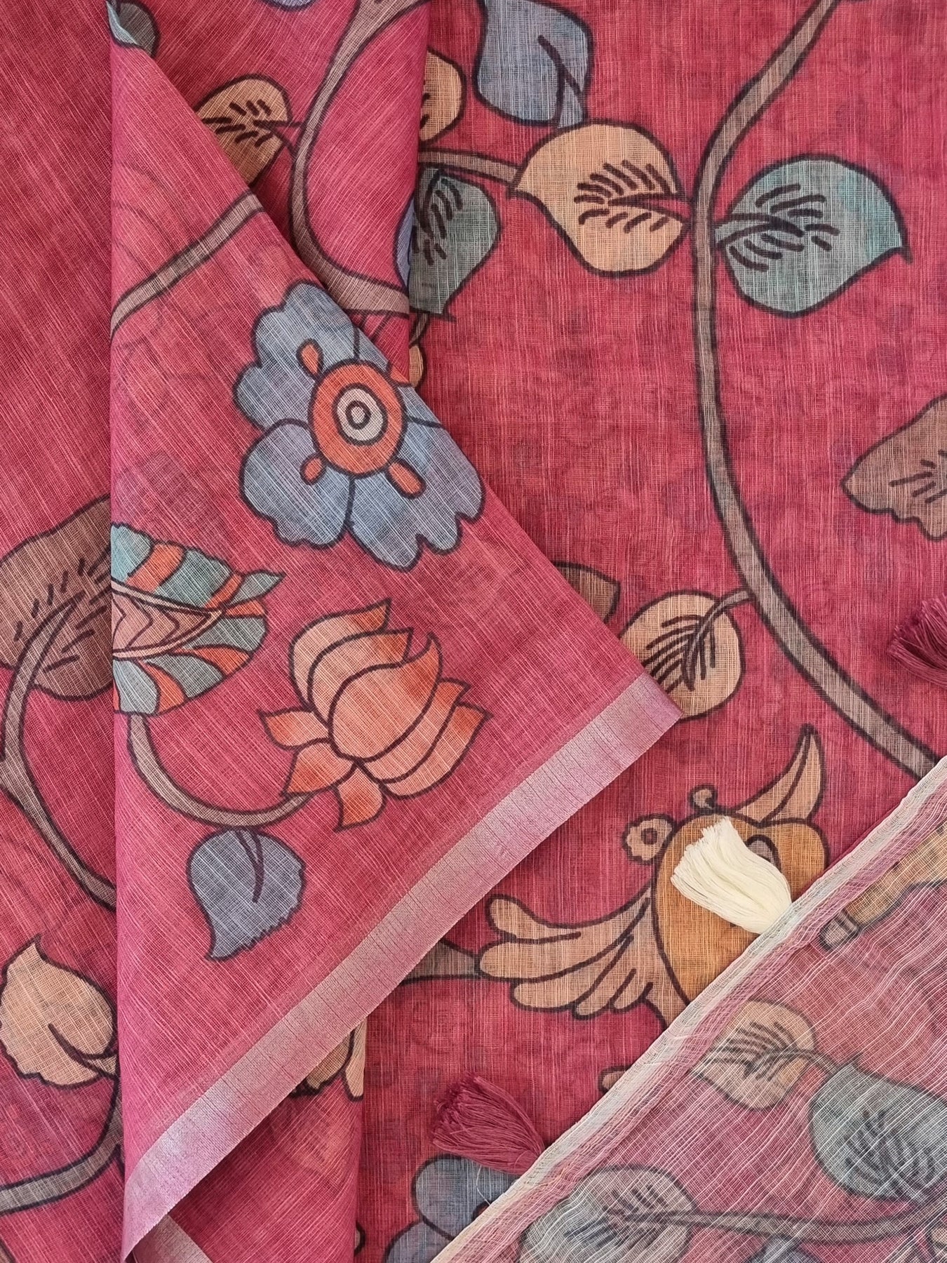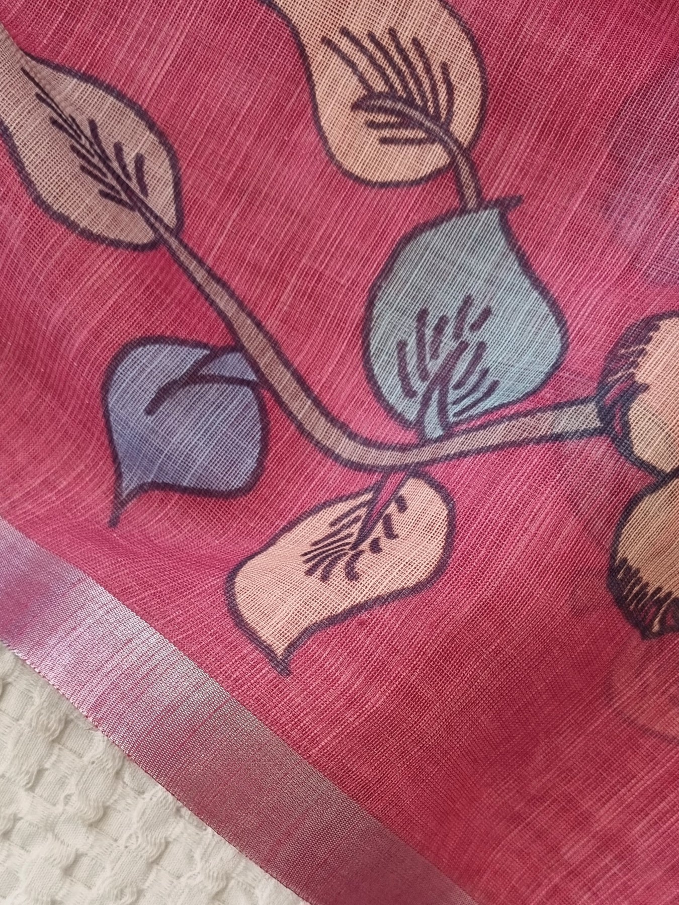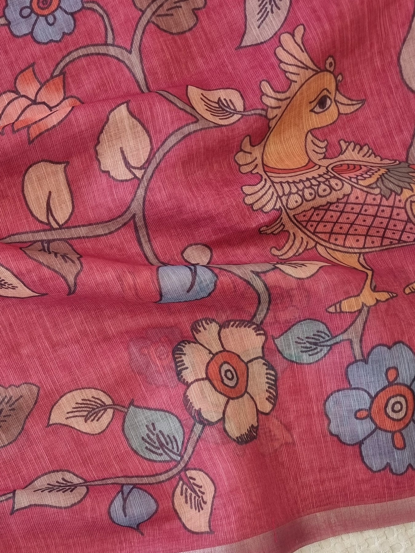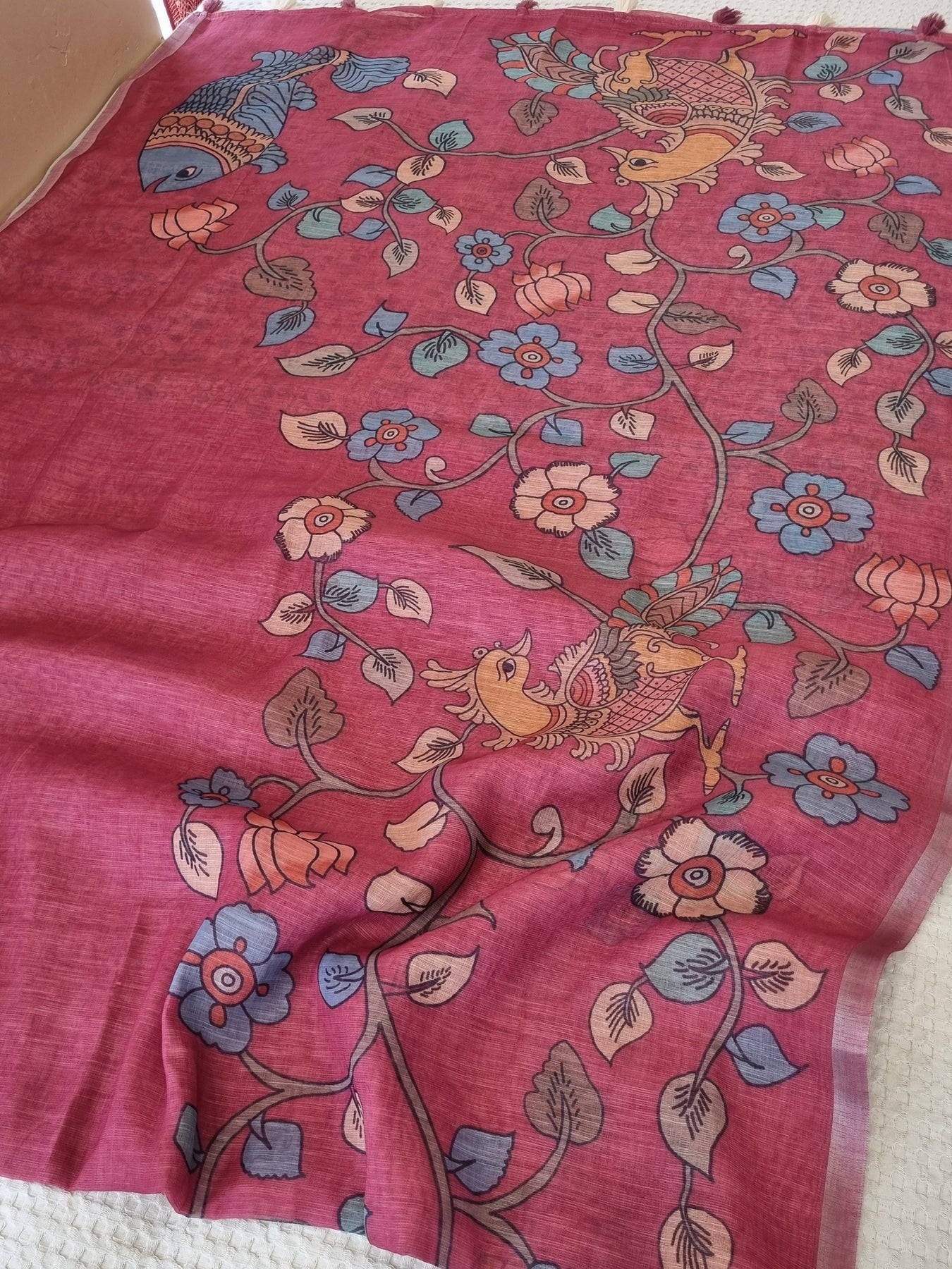 Pink Linen Cotton Saree with Digital Kalamkari Prints