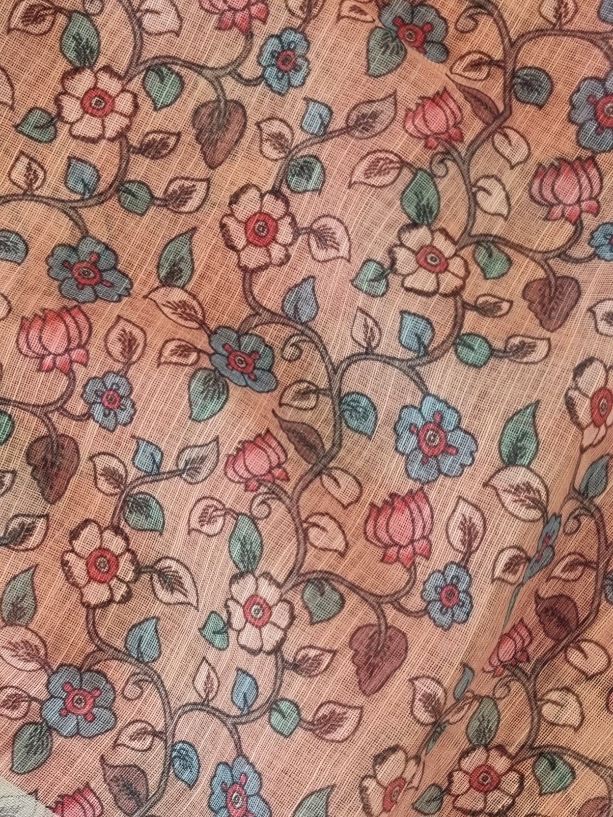 Linen Cotton Saree with Digital Kalamkari Prints on the body and pallu