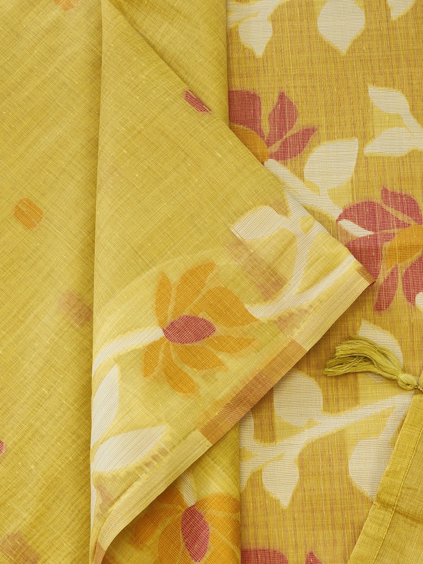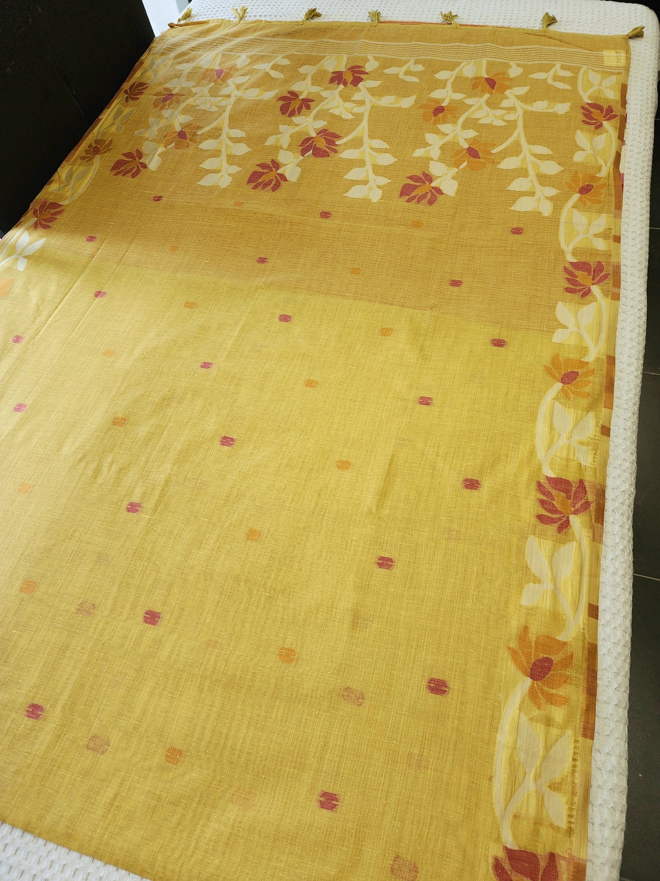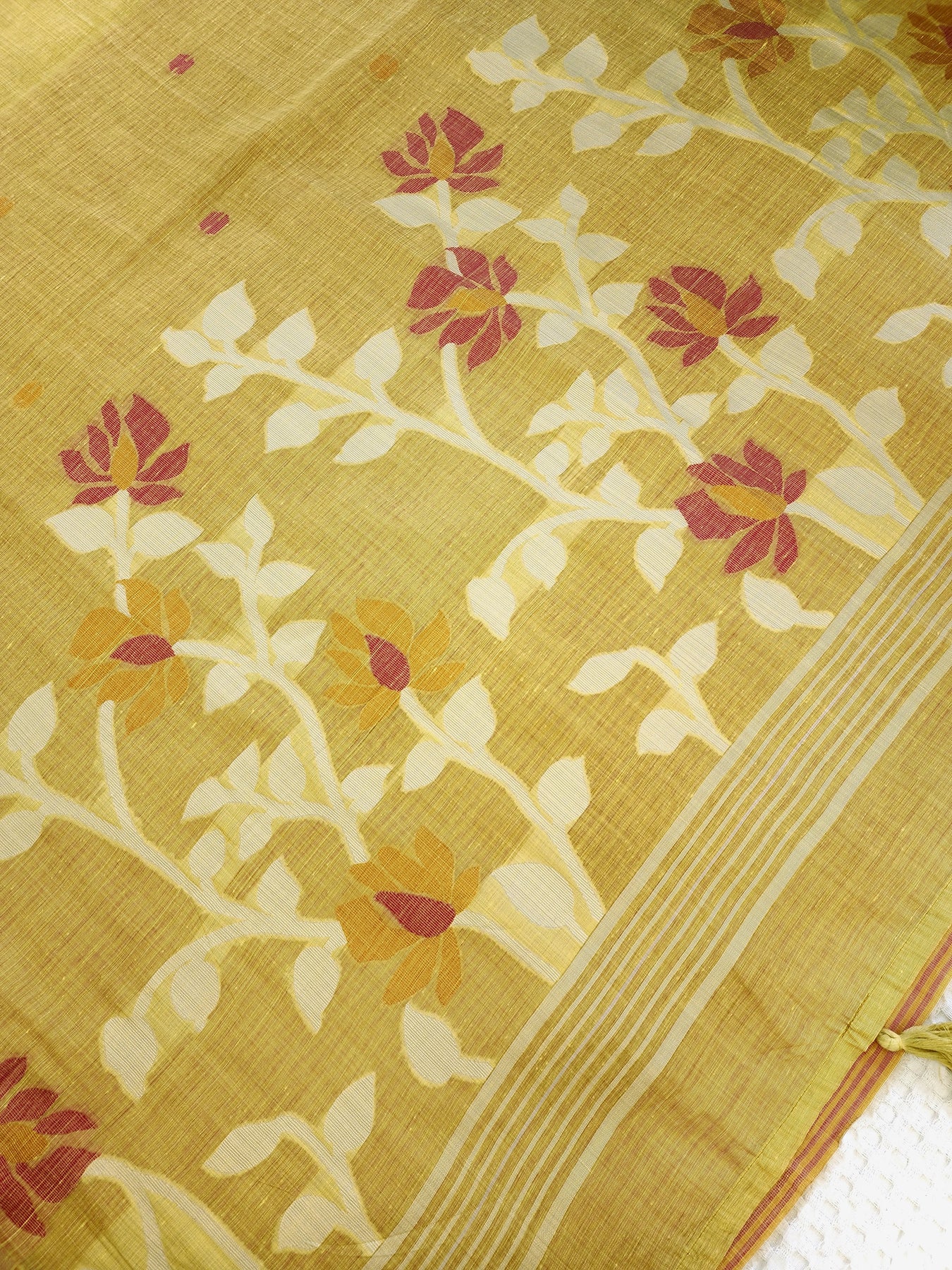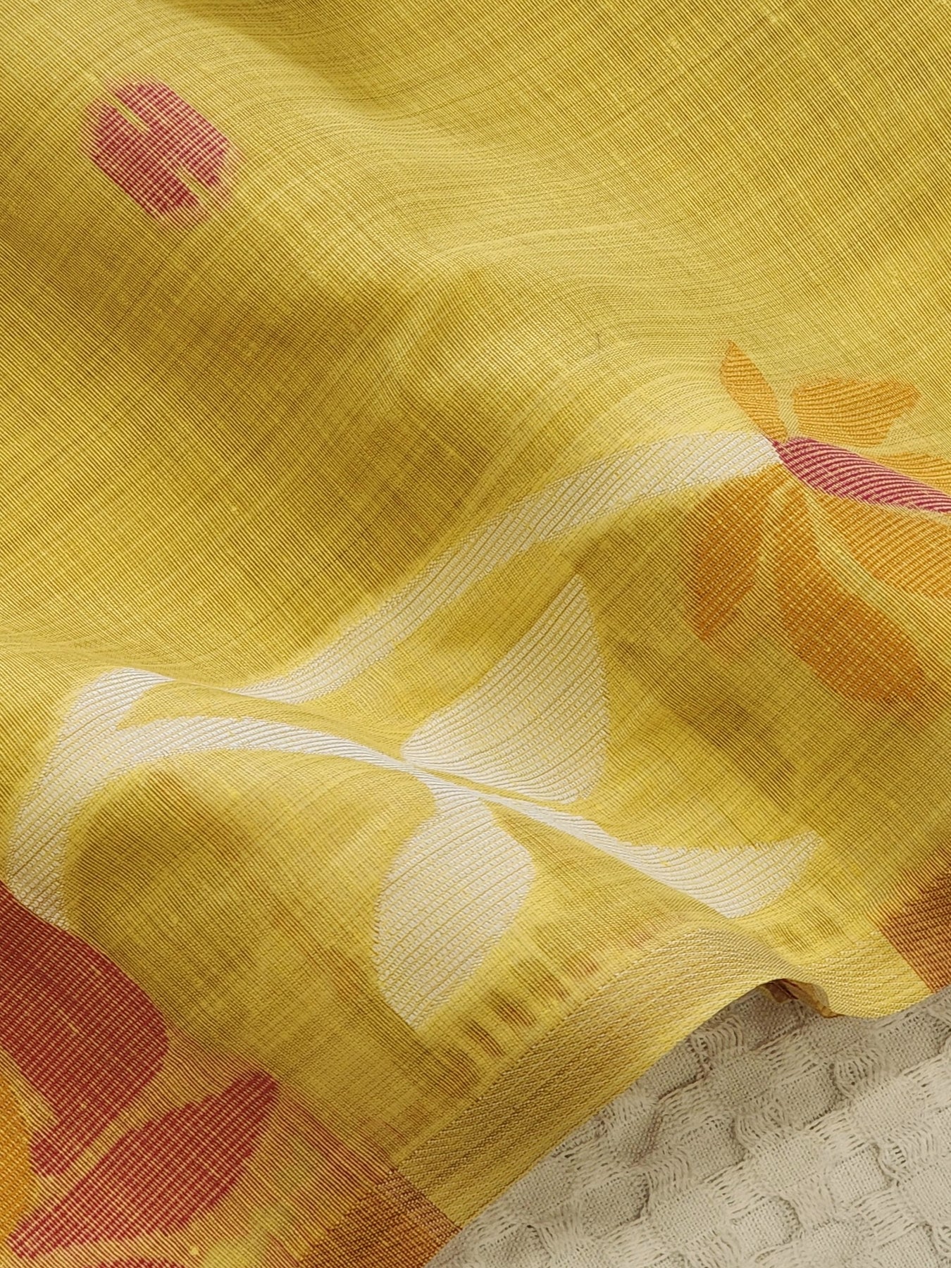 A beautiful Yellow Silk Cotton Saree with the jamdhani work on the body and pallu