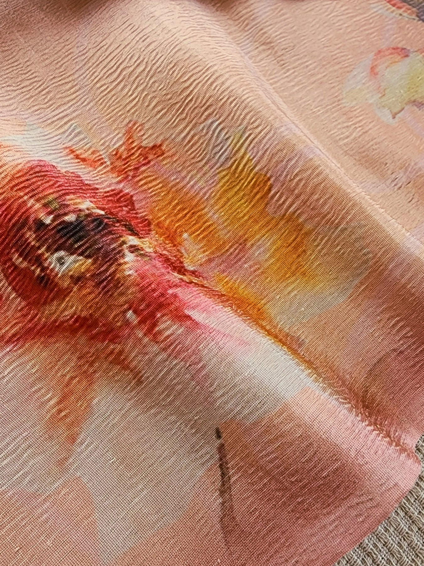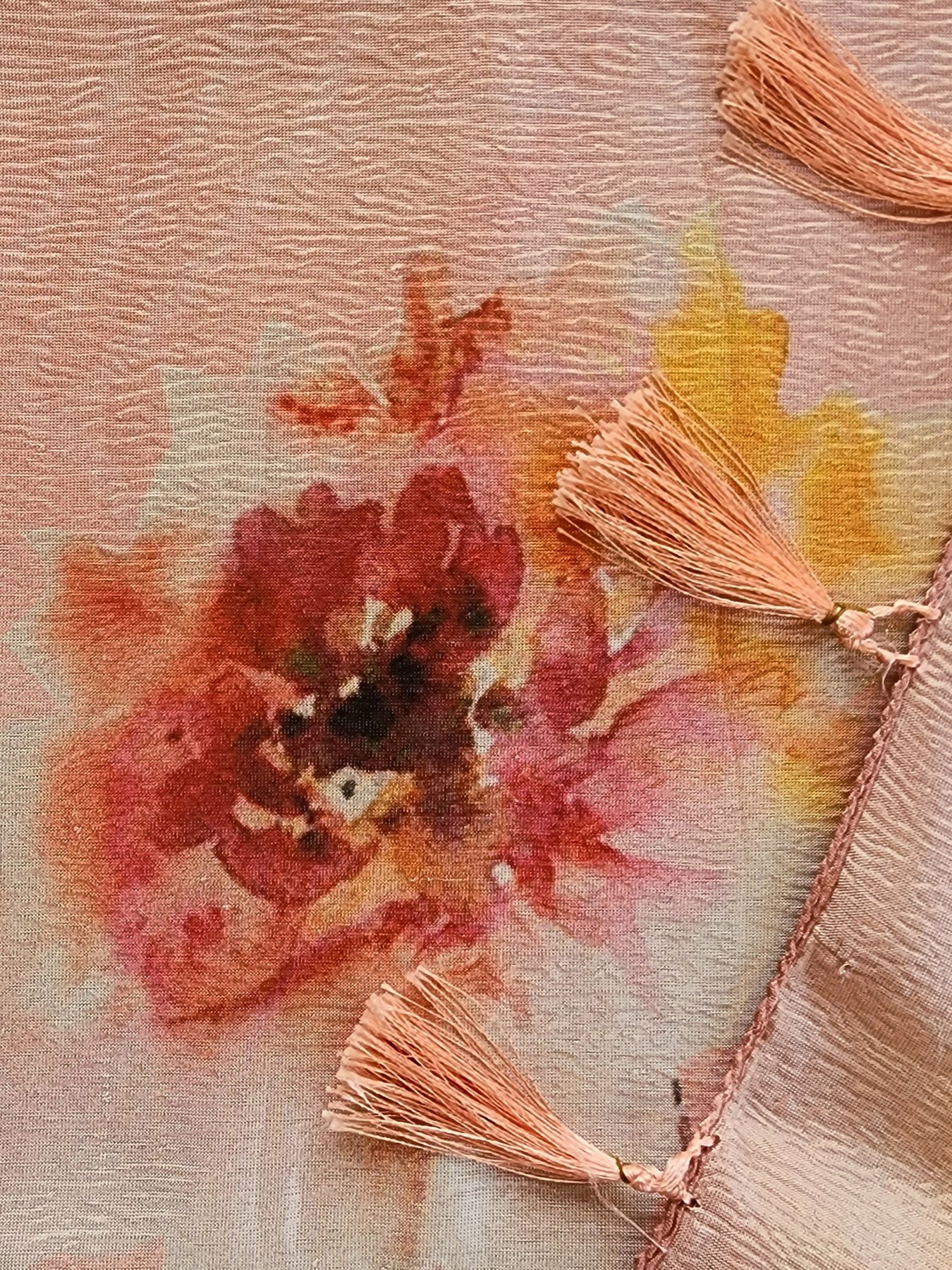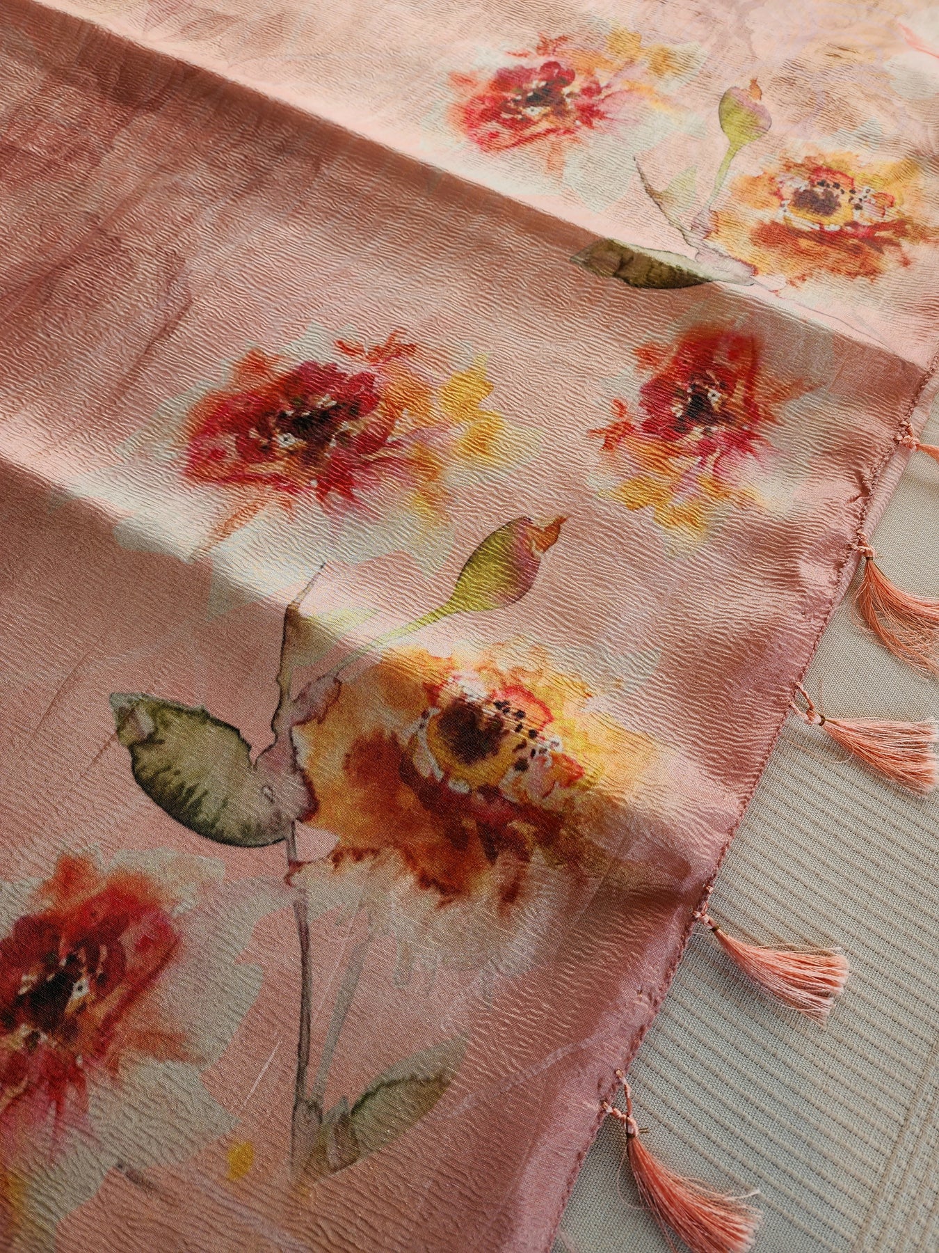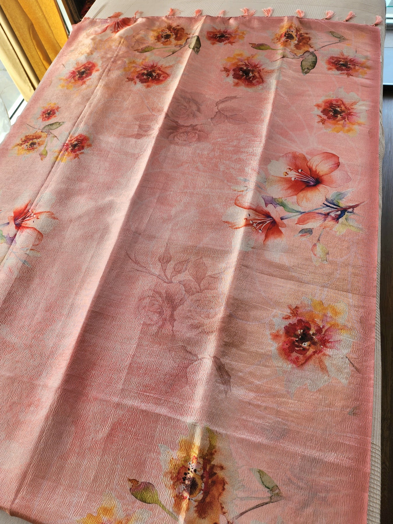 This elegant Crushed Tissue Silk Saree with Digital Floral Prints has a modern appeal