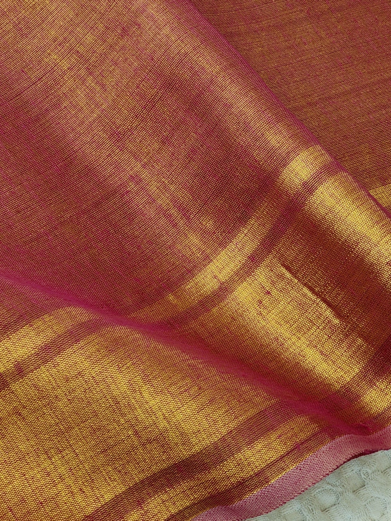 [{"id":48044686409960,"title":"Default Title","option1":"Default Title","option2":null,"option3":null,"sku":null,"requires_shipping":true,"taxable":true,"featured_image":null,"available":true,"name":"Dual Tone Tissue Linen Saree with Gold Borders","public_title":null,"options":["Default Title"],"price":9500,"weight":800,"compare_at_price":null,"inventory_quantity":1,"inventory_management":"shopify","inventory_policy":"deny","barcode":"86409960","requires_selling_plan":false,"selling_plan_allocations":[]}]