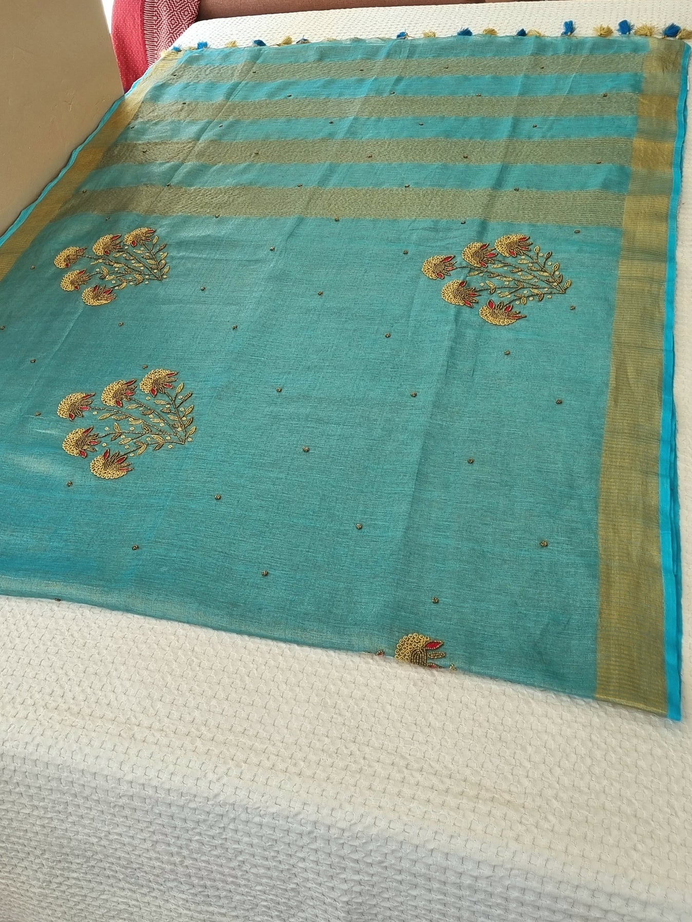 • Linen known for its versatile appeal is derived from flax plant fibre and sarees of this textile are a great fit for every season and is treasured by women across all ages