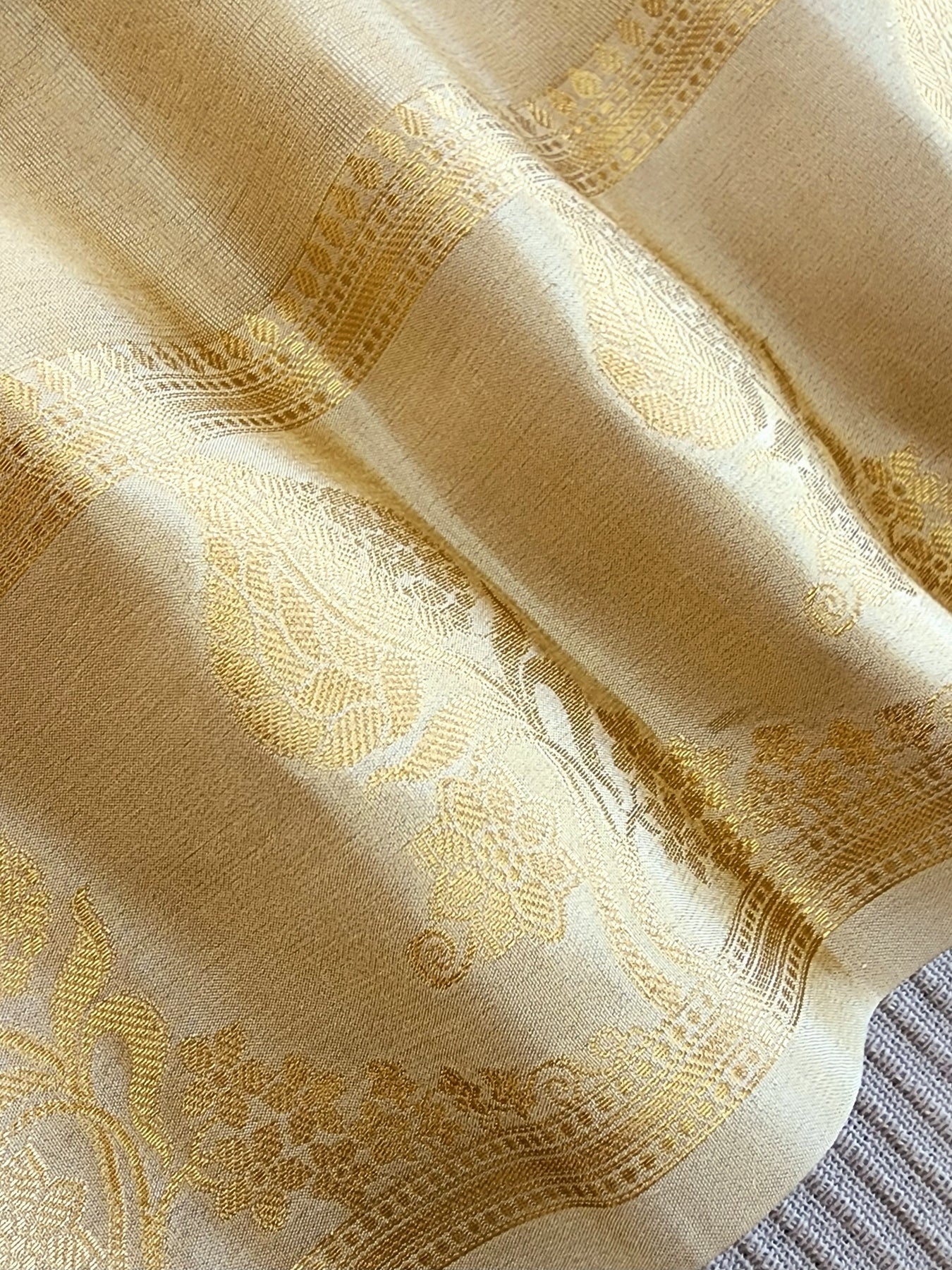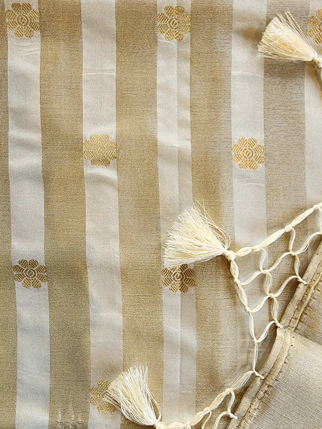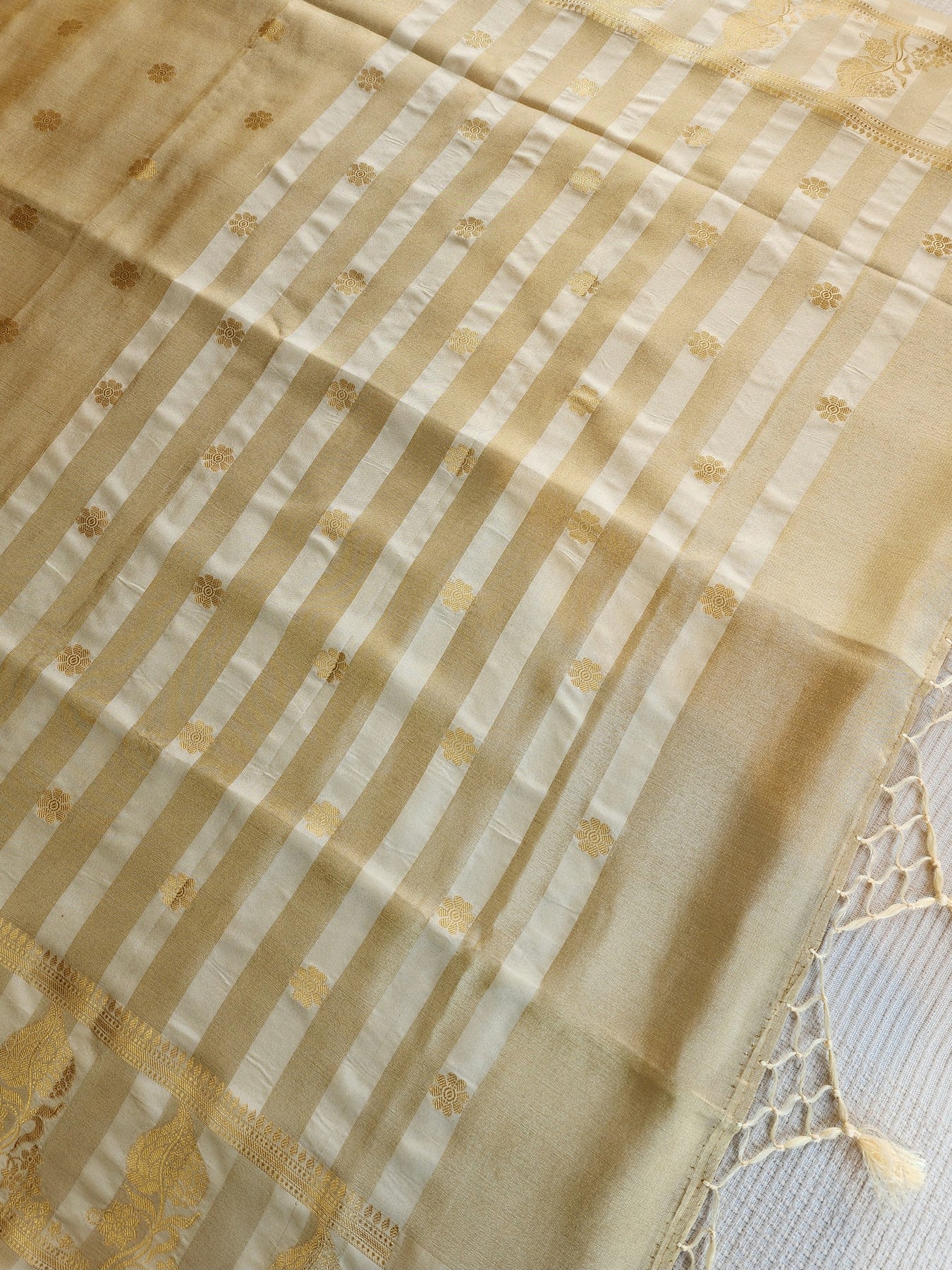 An elegant Tissue Crepe Silk Saree with Gold motifs and borders