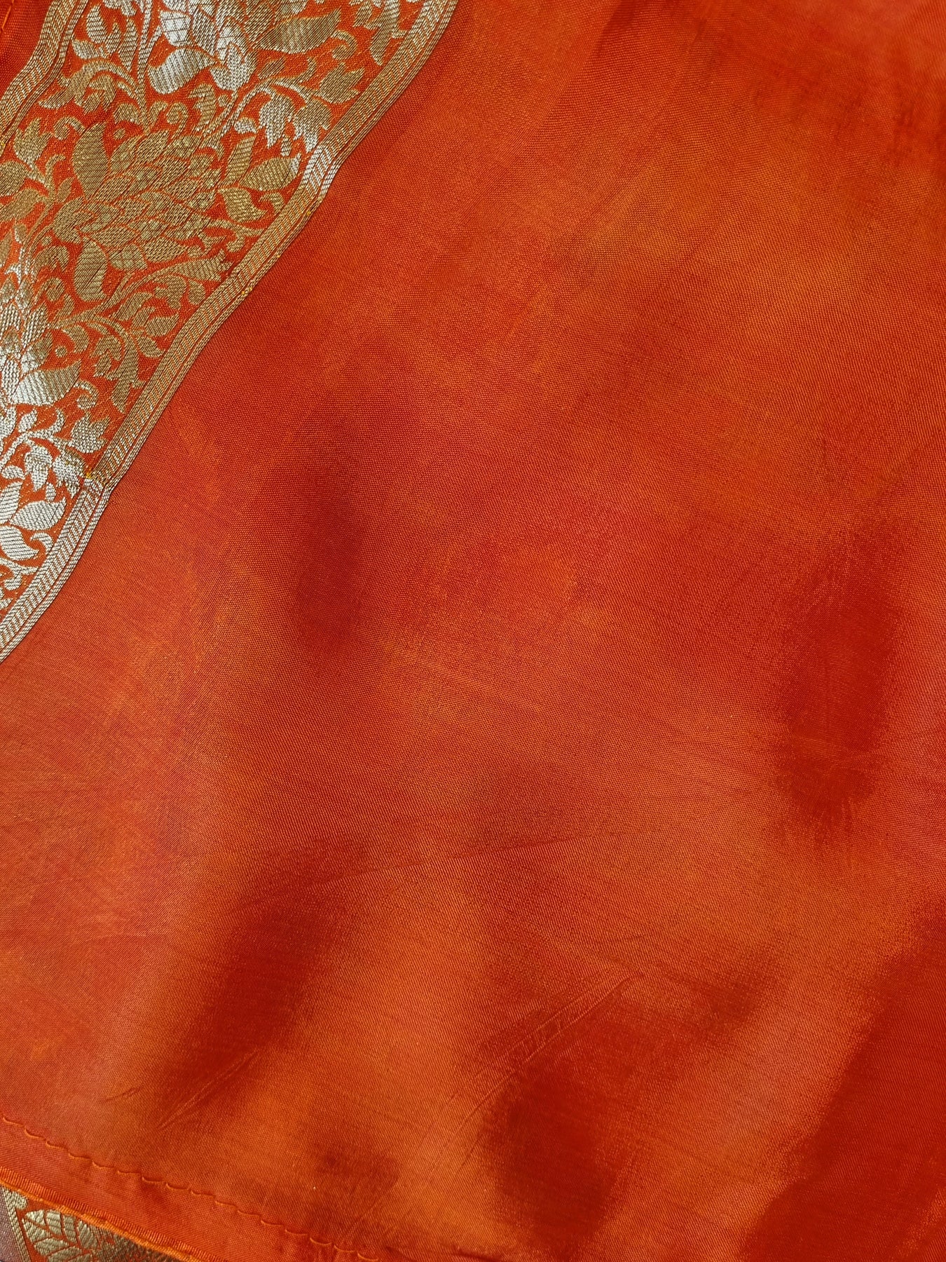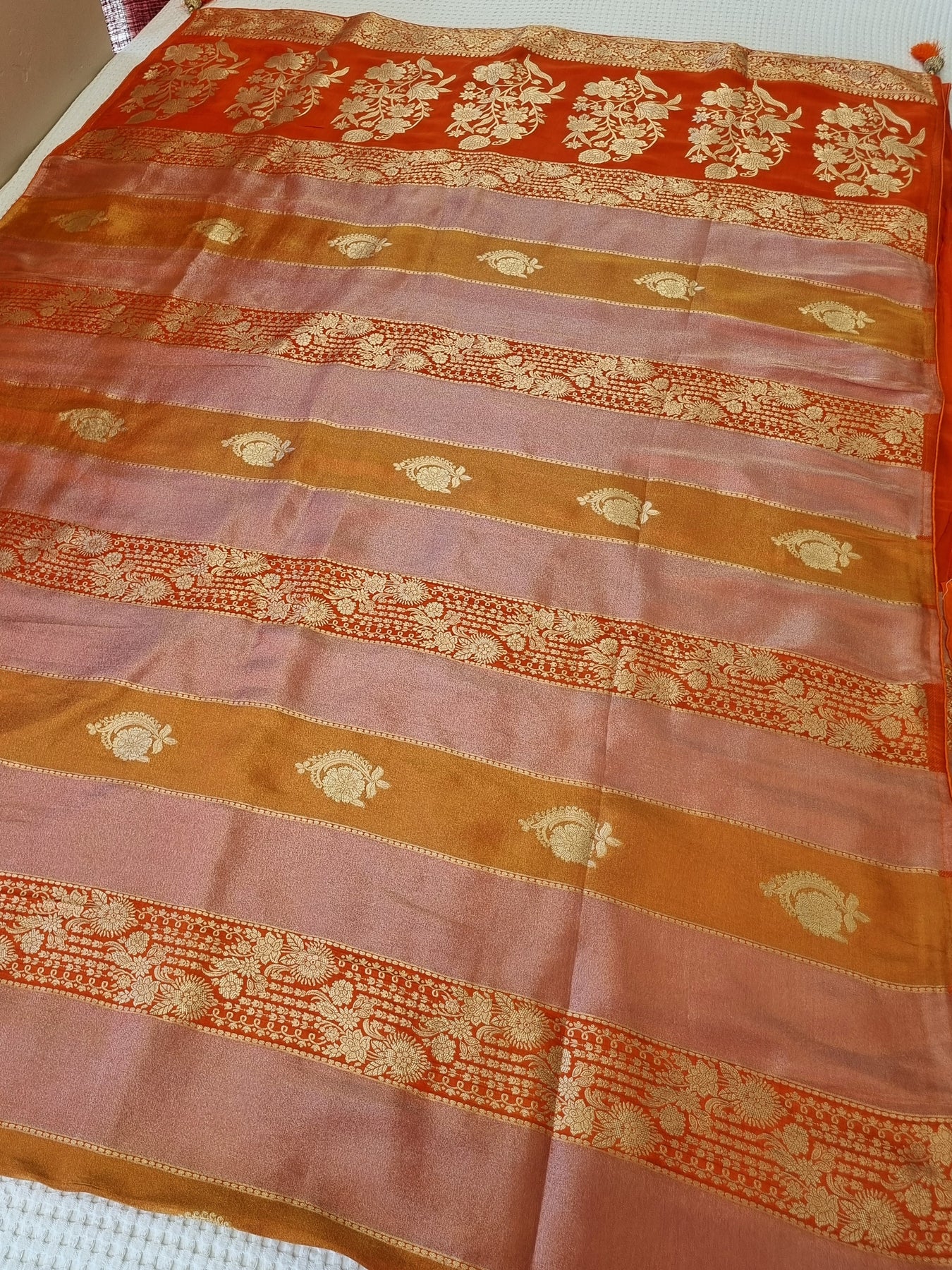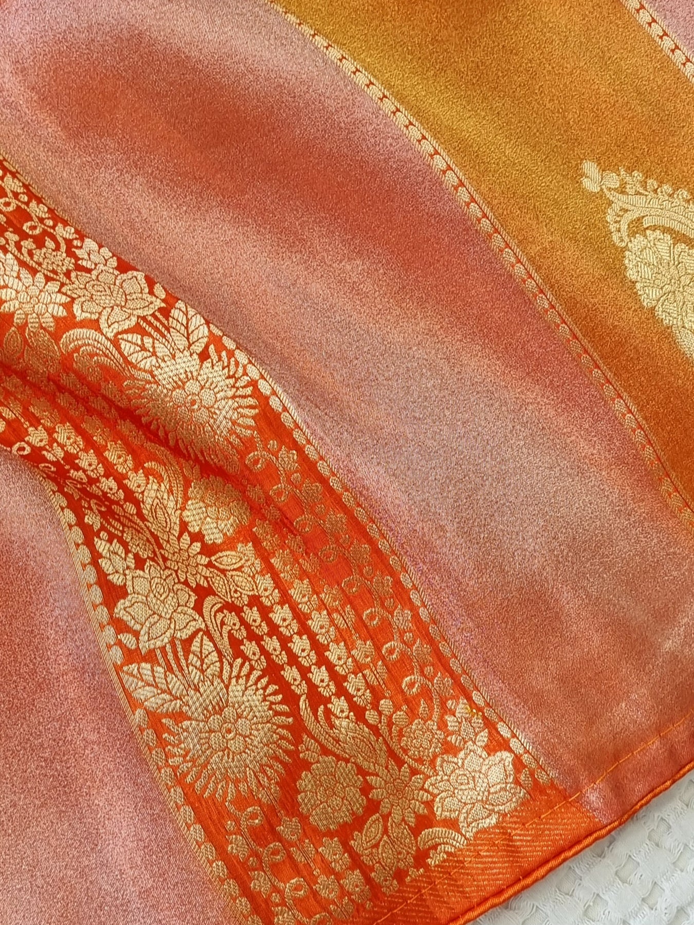 Orange Tissue Crepe Silk Saree with Woven Borders