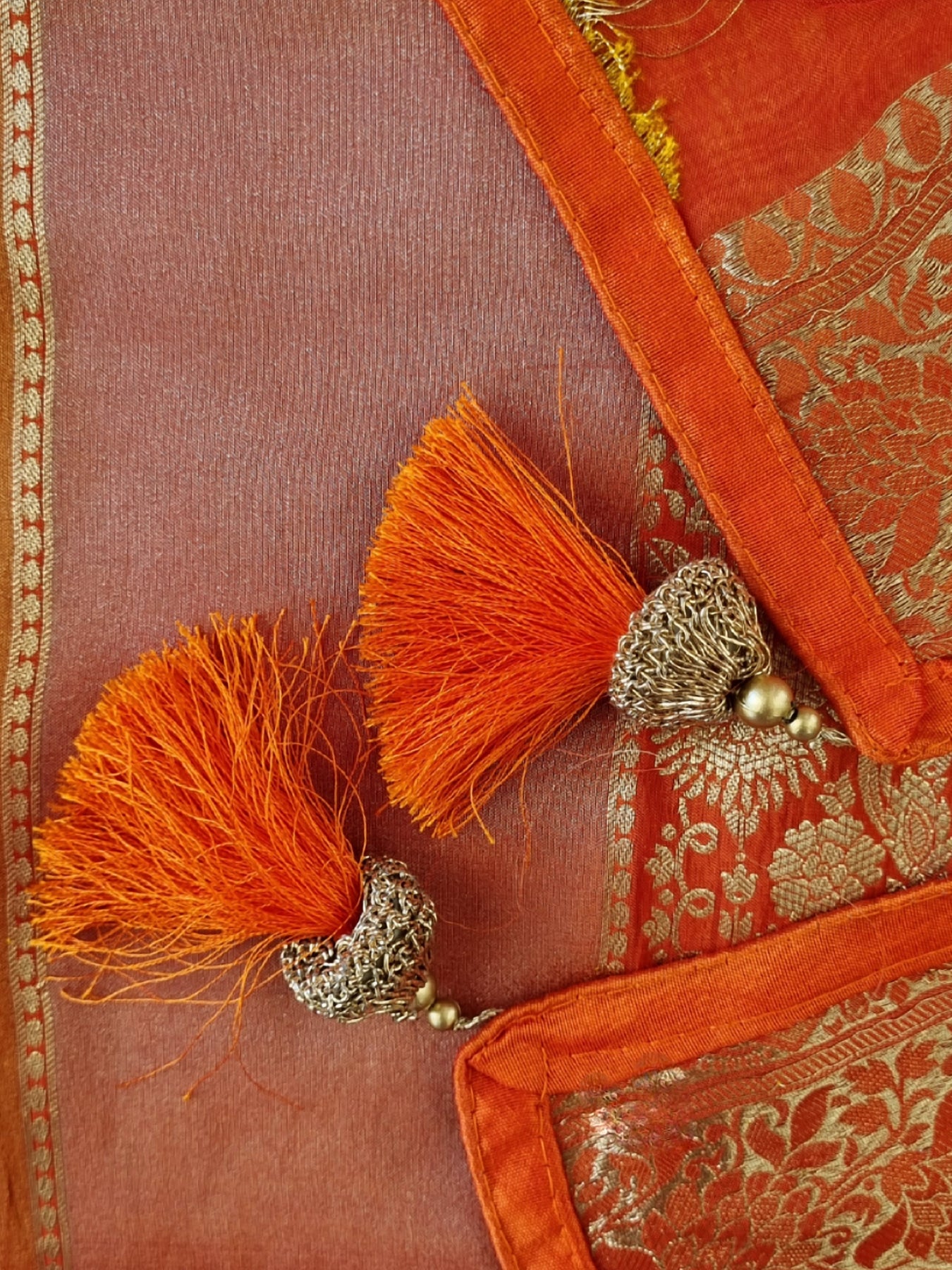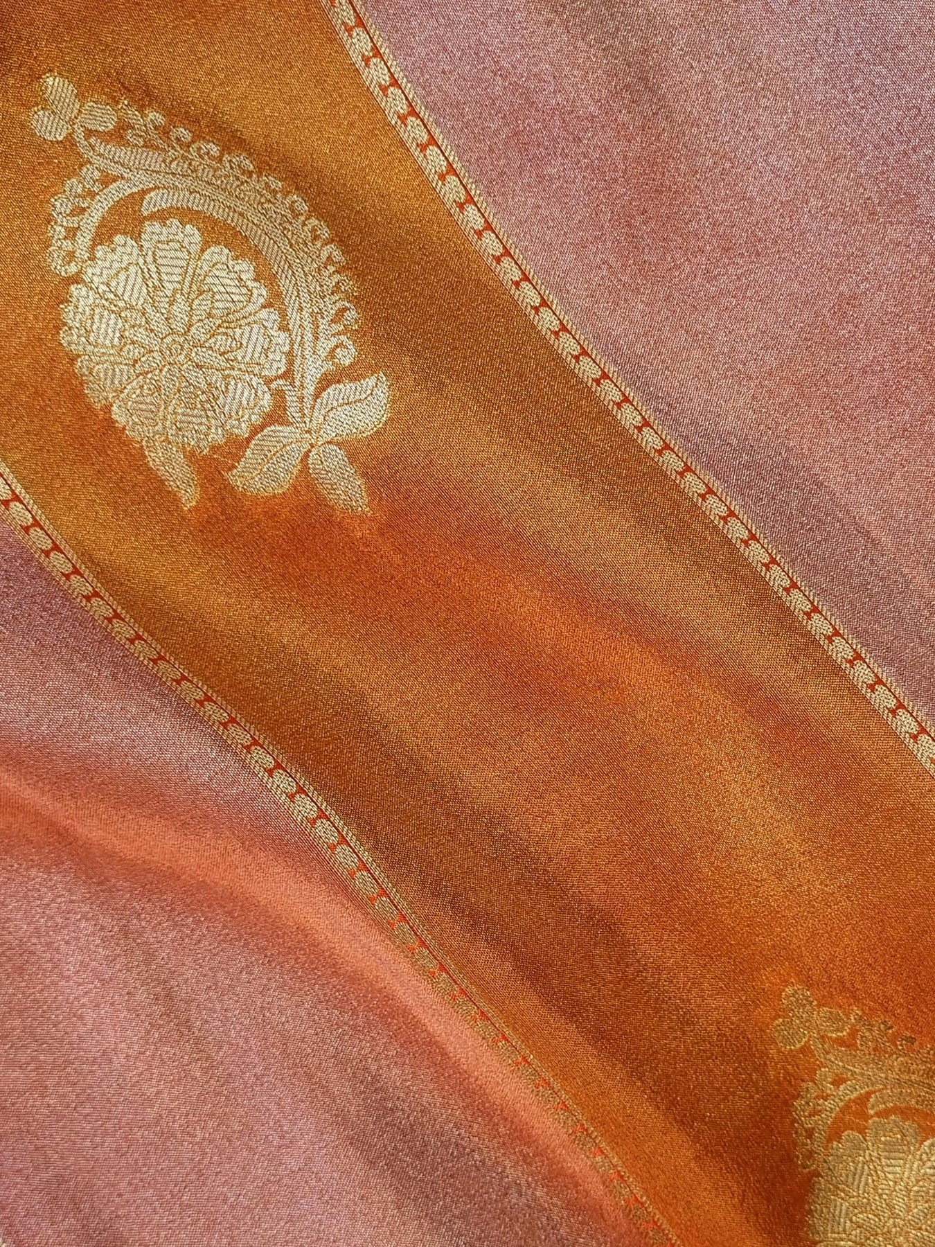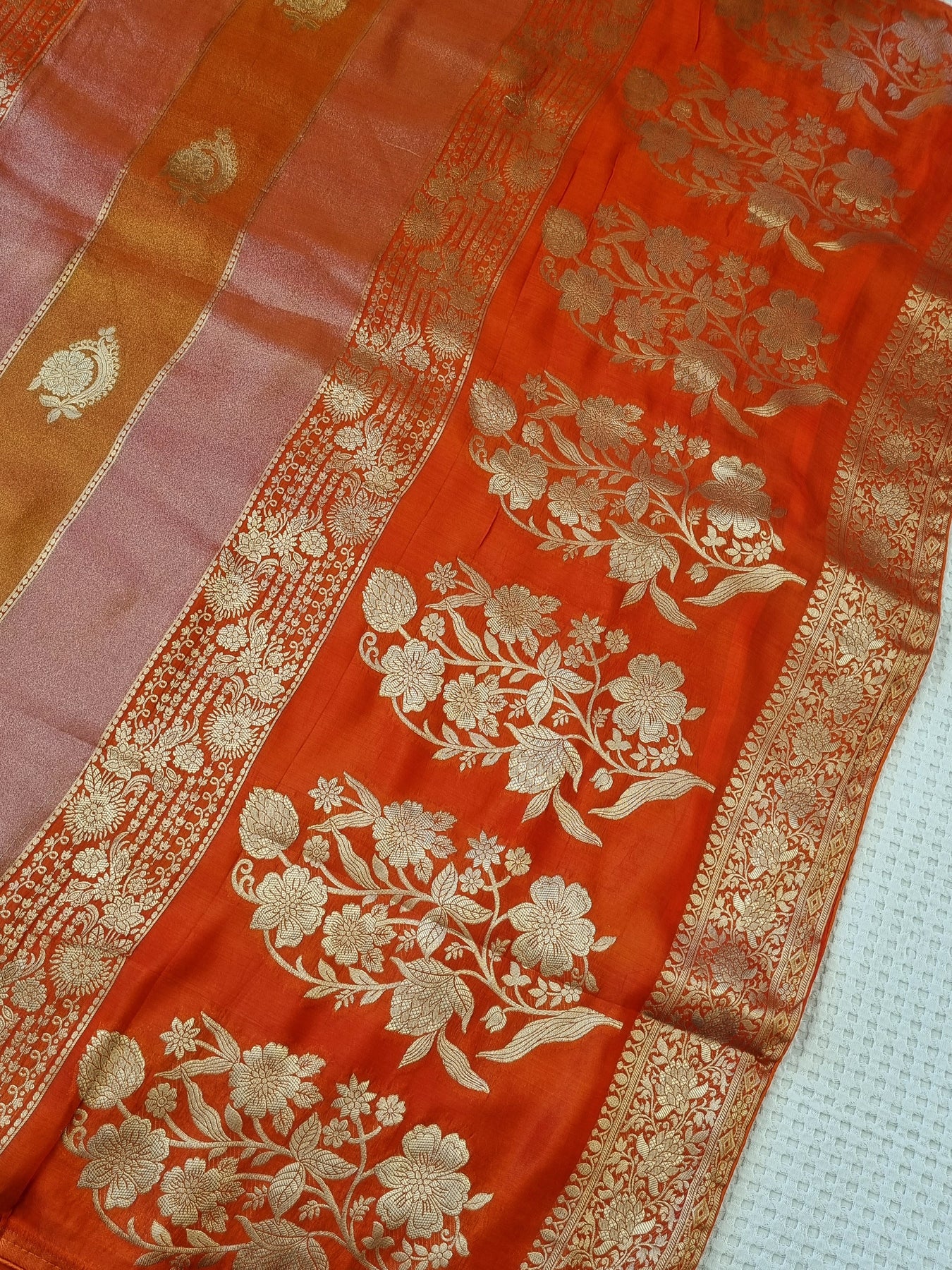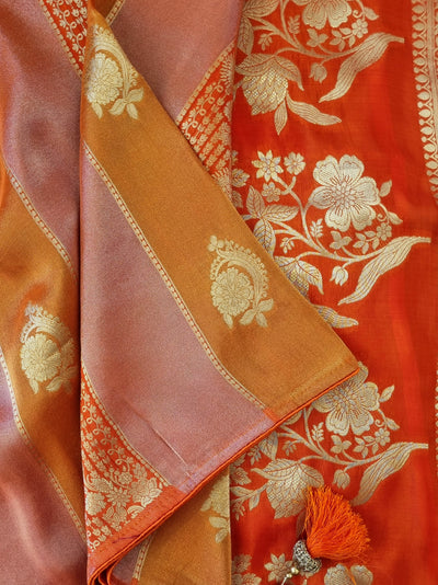 Orange Tissue Crepe Silk Saree with Woven Borders