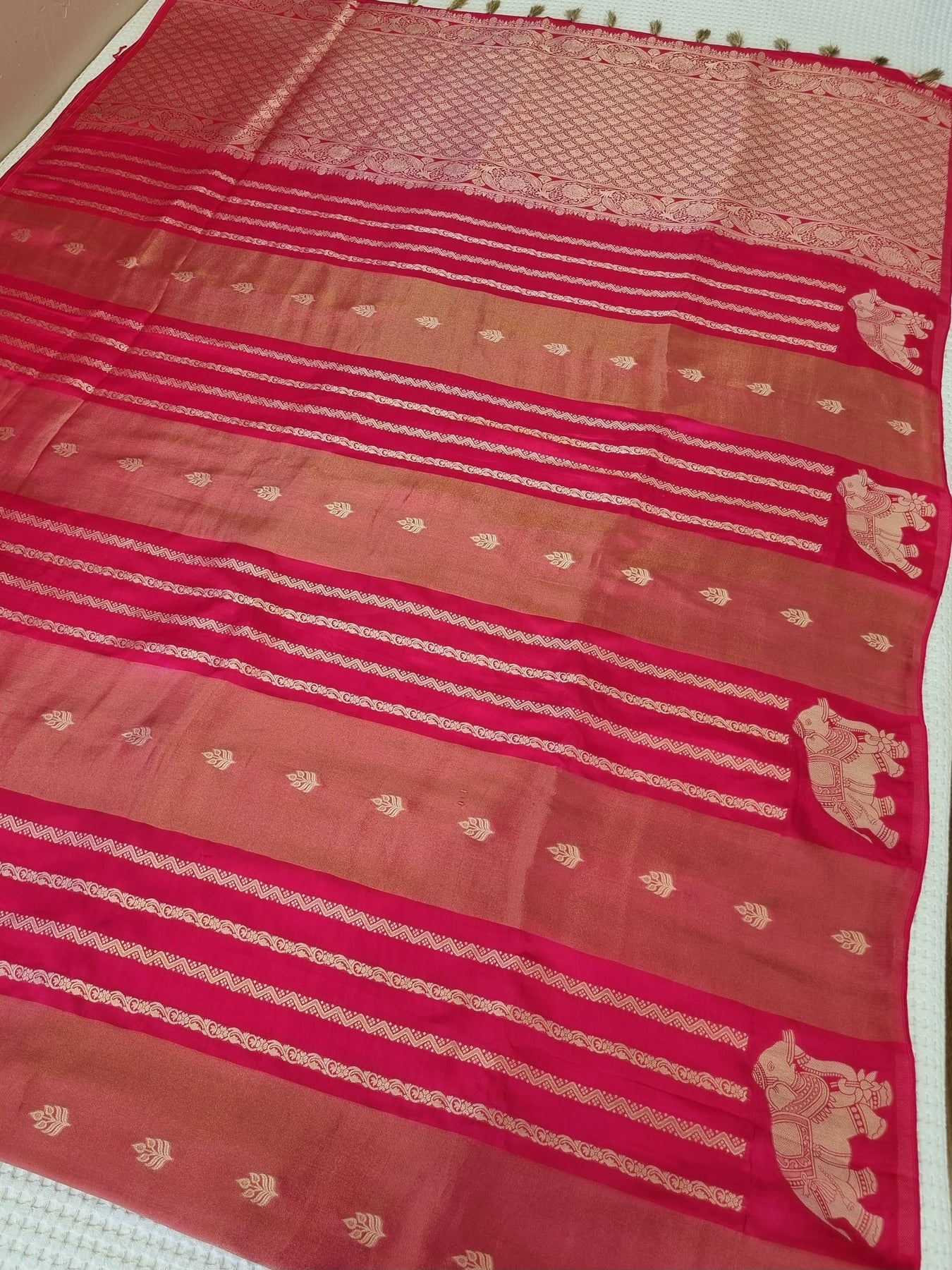 • An elegant Tissue Crepe Silk Saree with contrast borders