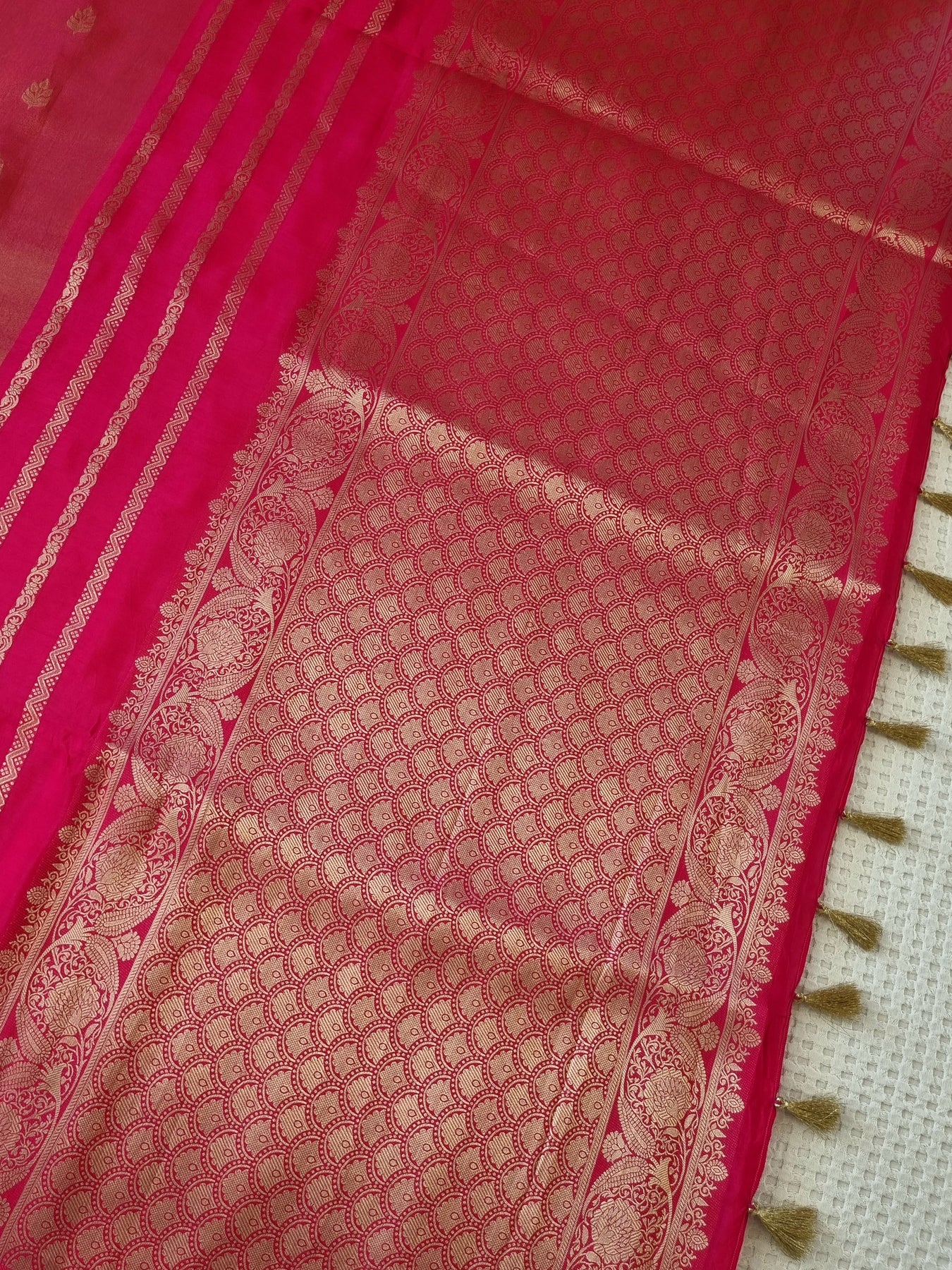 Pink Tissue Crepe Silk Saree with Woven Borders