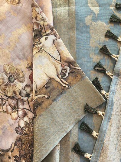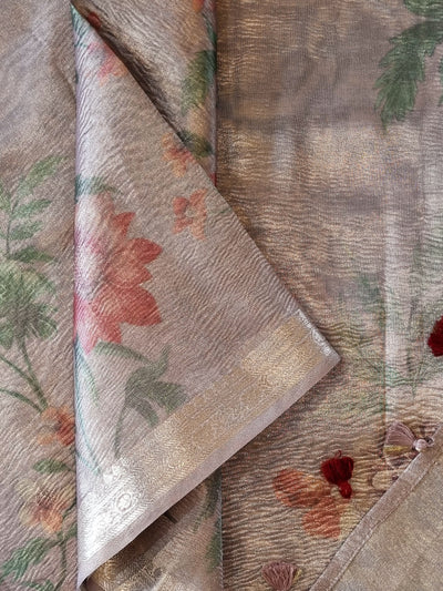 Crushed Tissue Silk Saree with Digital Floral Prints