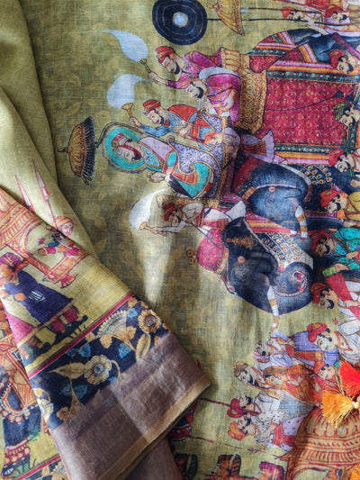 Handloom Navy Blue Pure Linen Saree with Gold borders