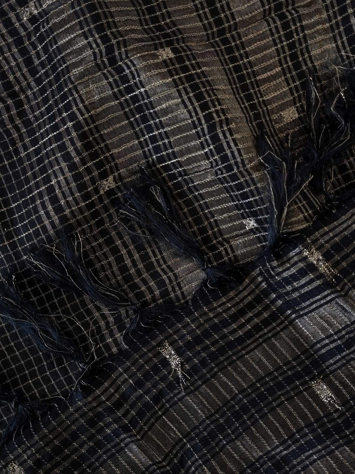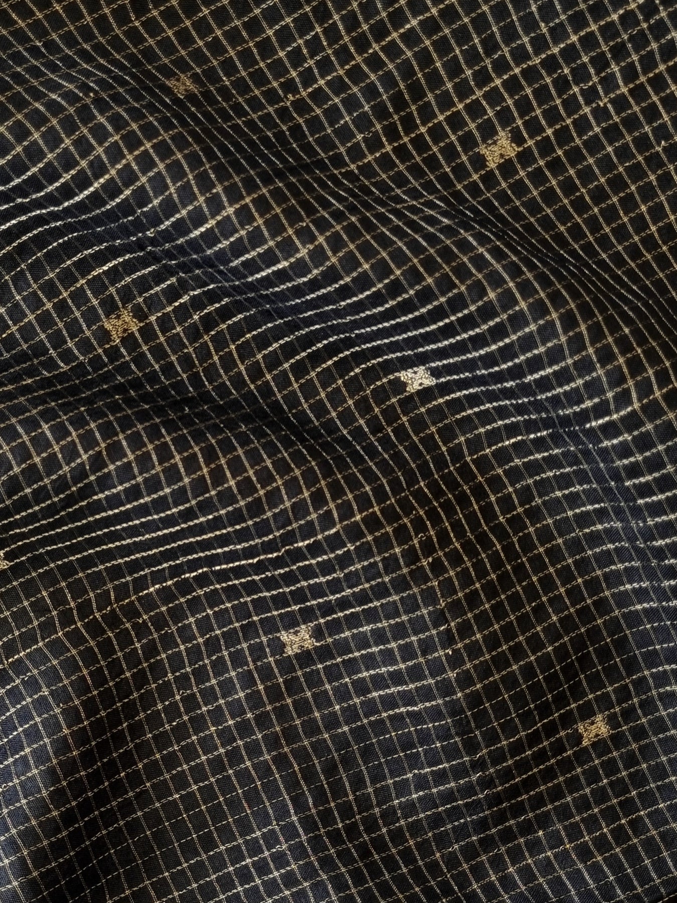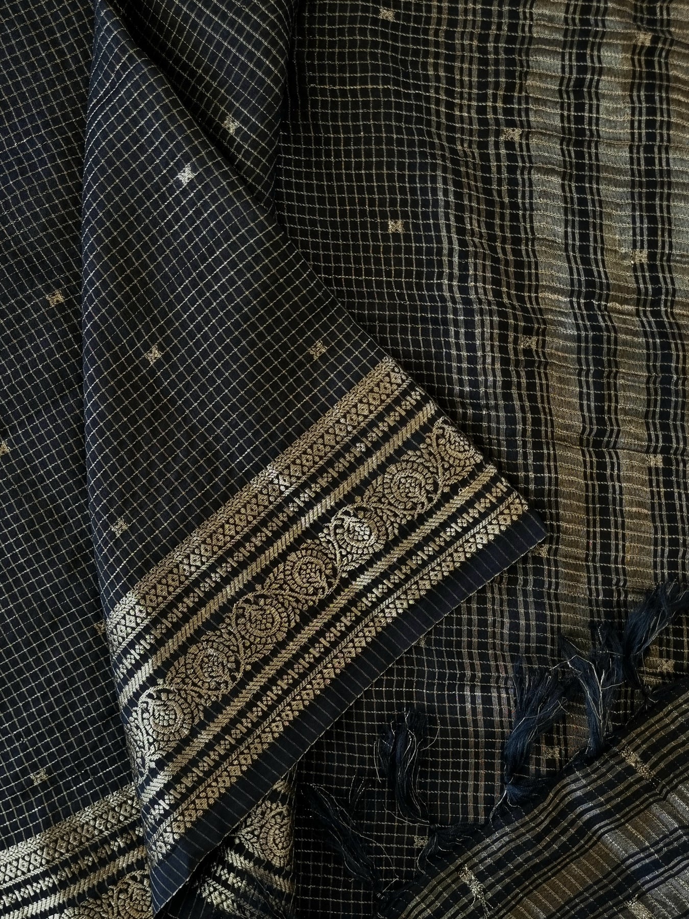 The elegant checked pattern and Striped pallu elevate the style quotient