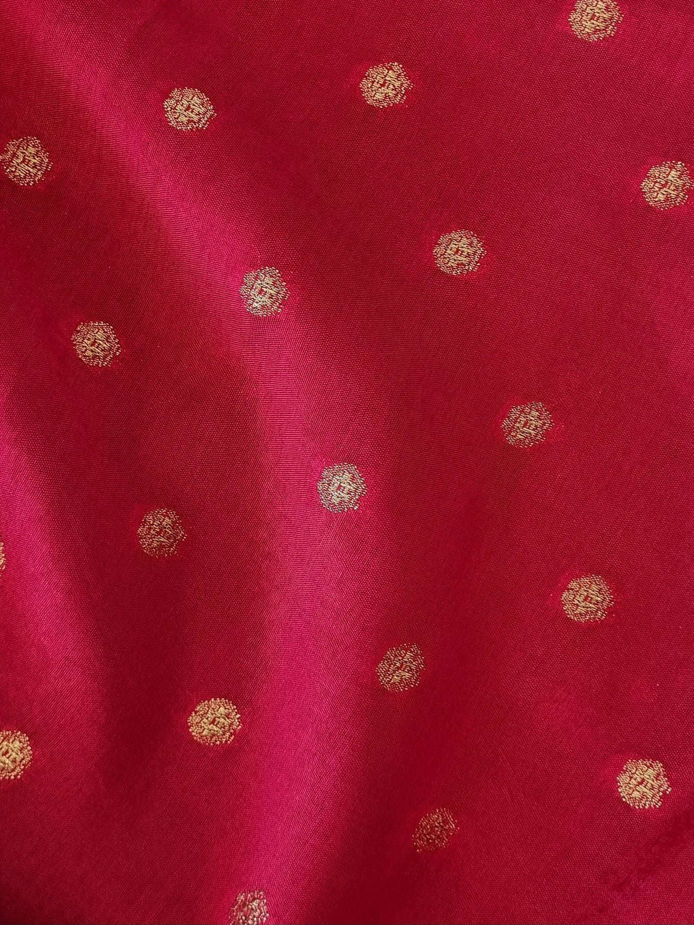 An elegant Purple Crepe Silk Saree with Gold Borders and gold motifs on Body of the saree