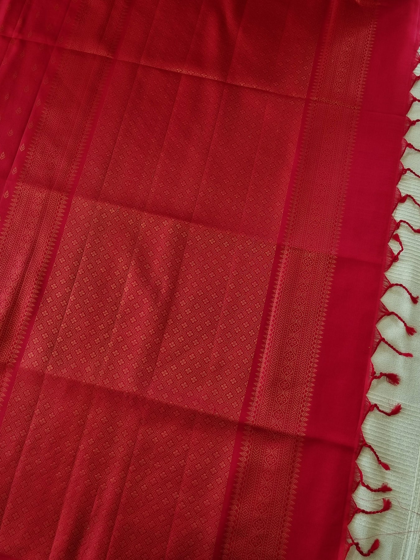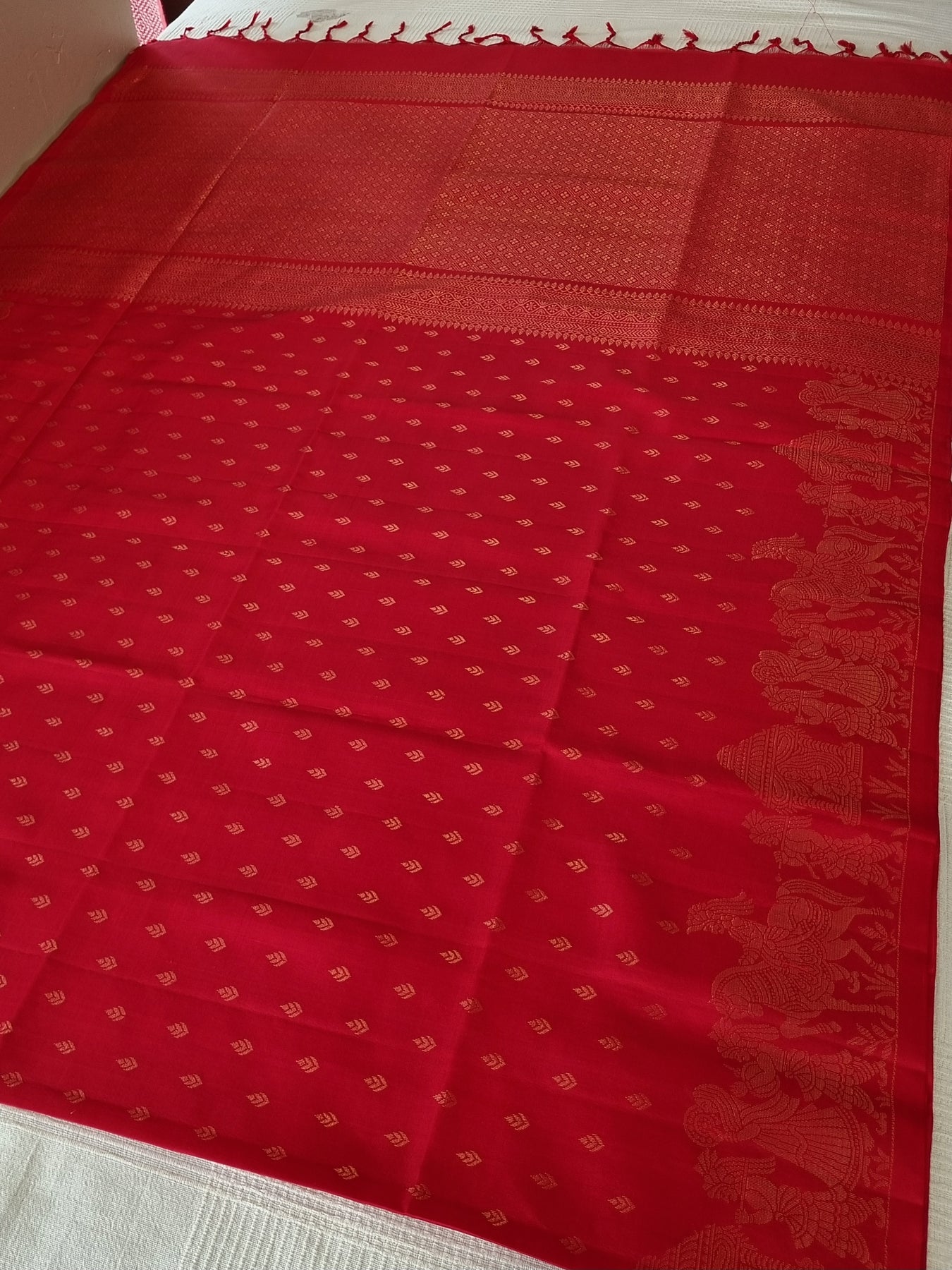 Borderless Red Handwoven Kanjivaram Soft Silk