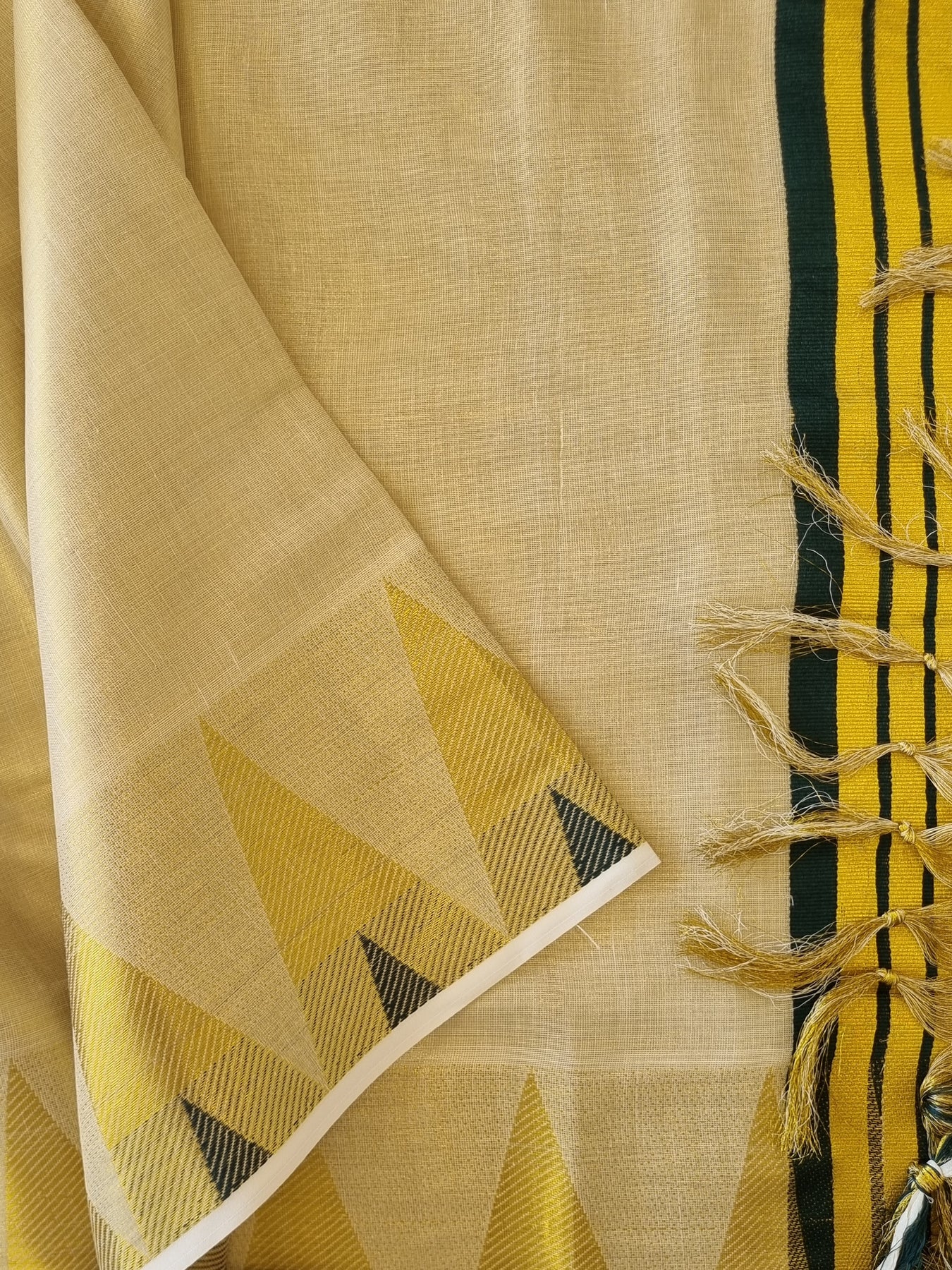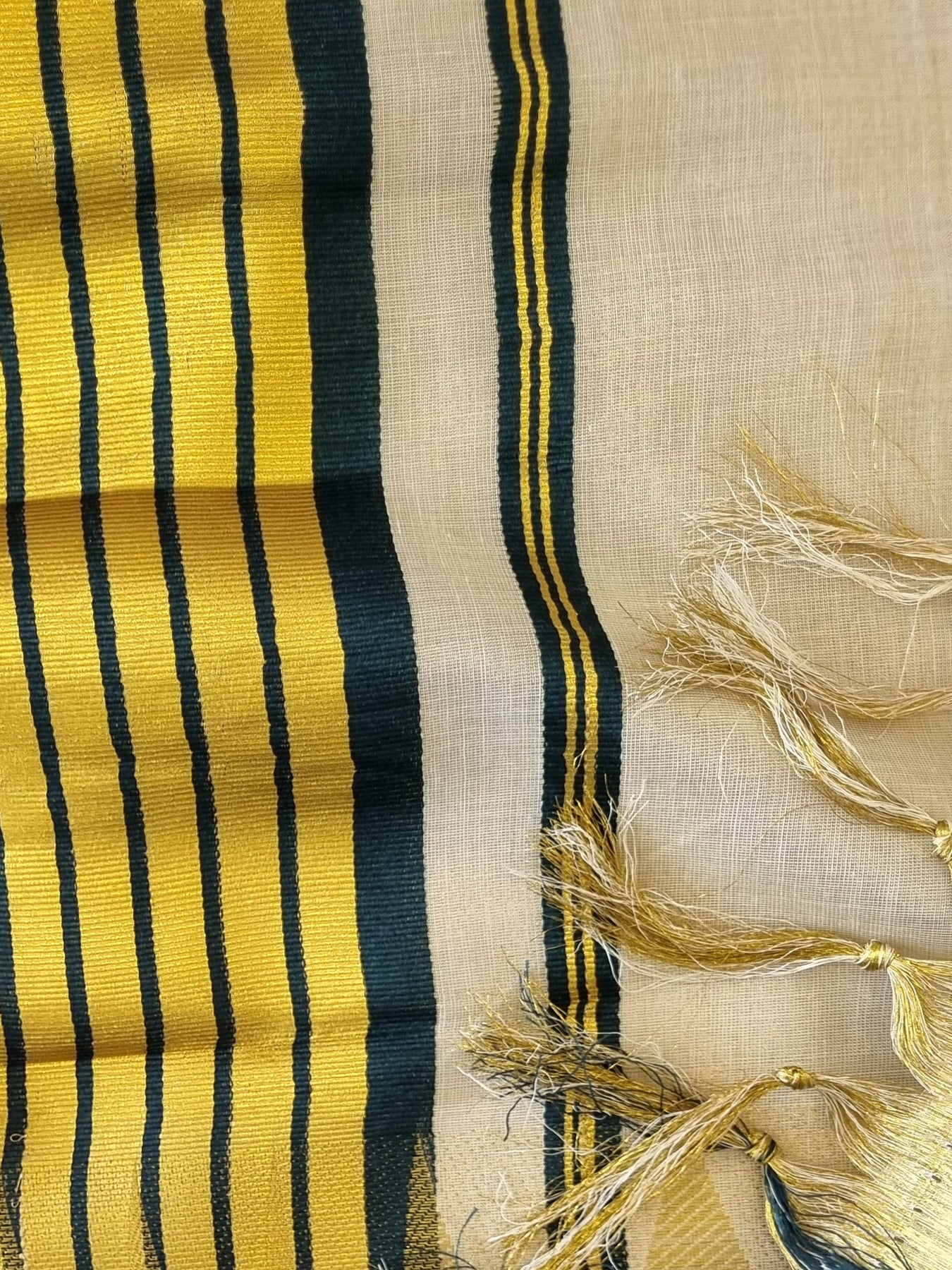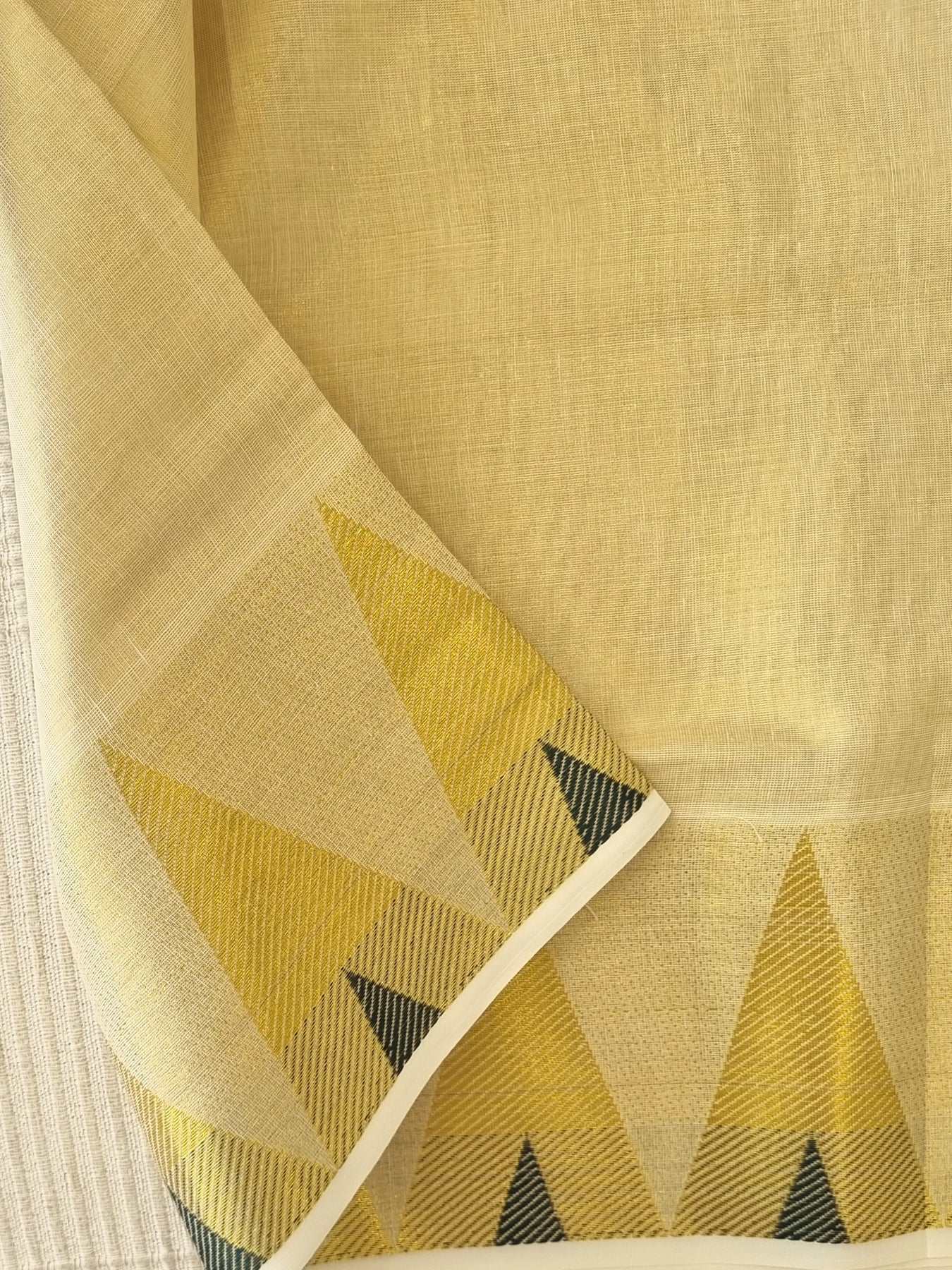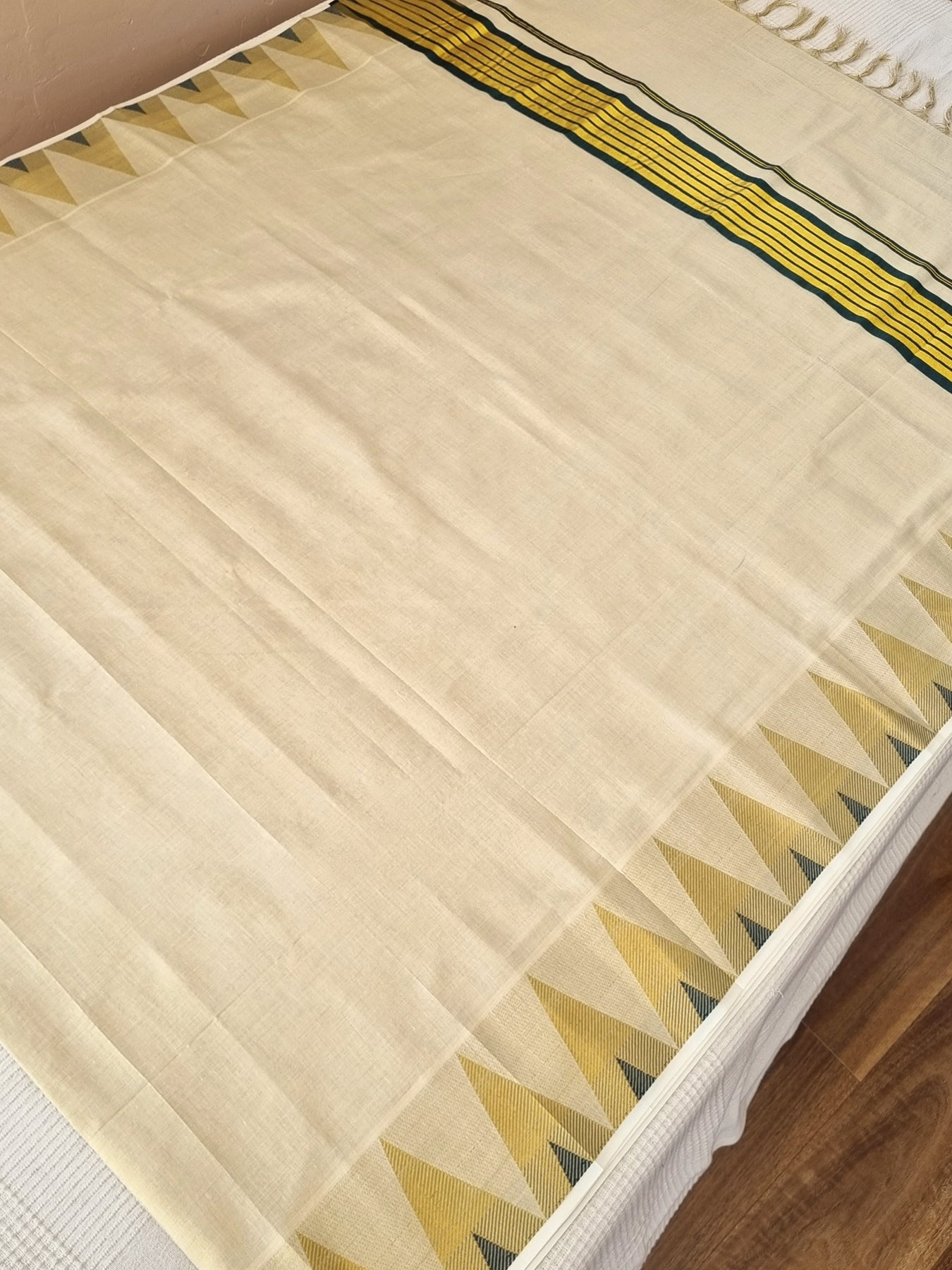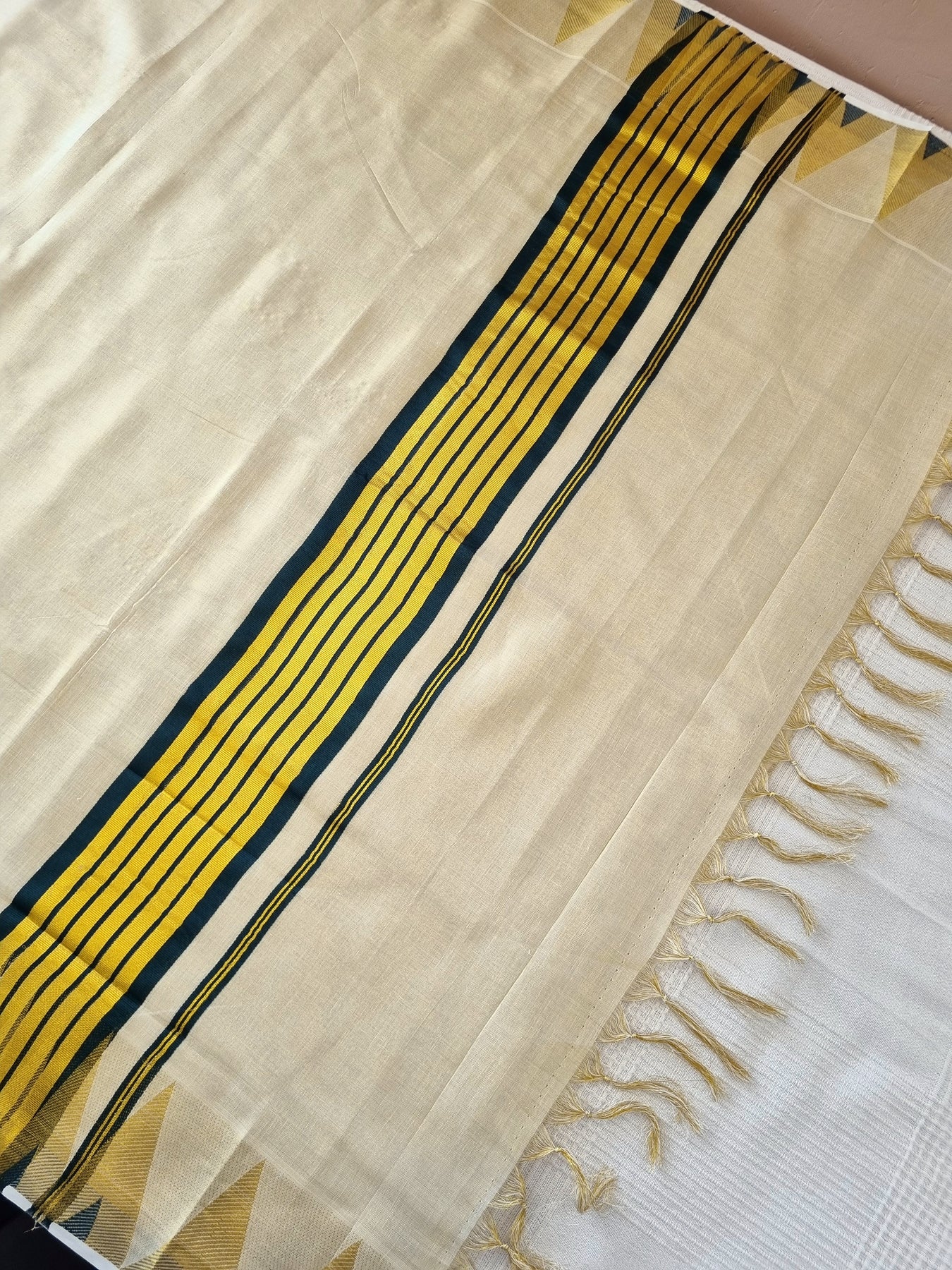 Worn in the state of Kerala, Kasavu refers to the golden border that enhances the intrinsic glamour of this saree