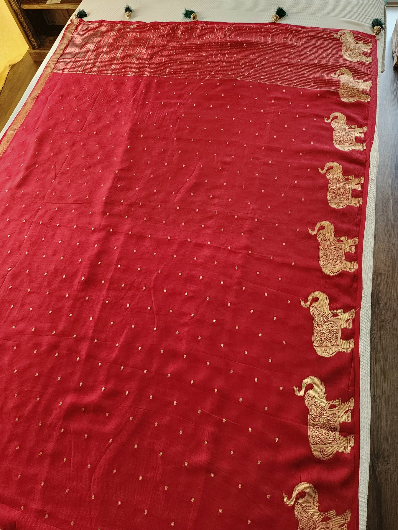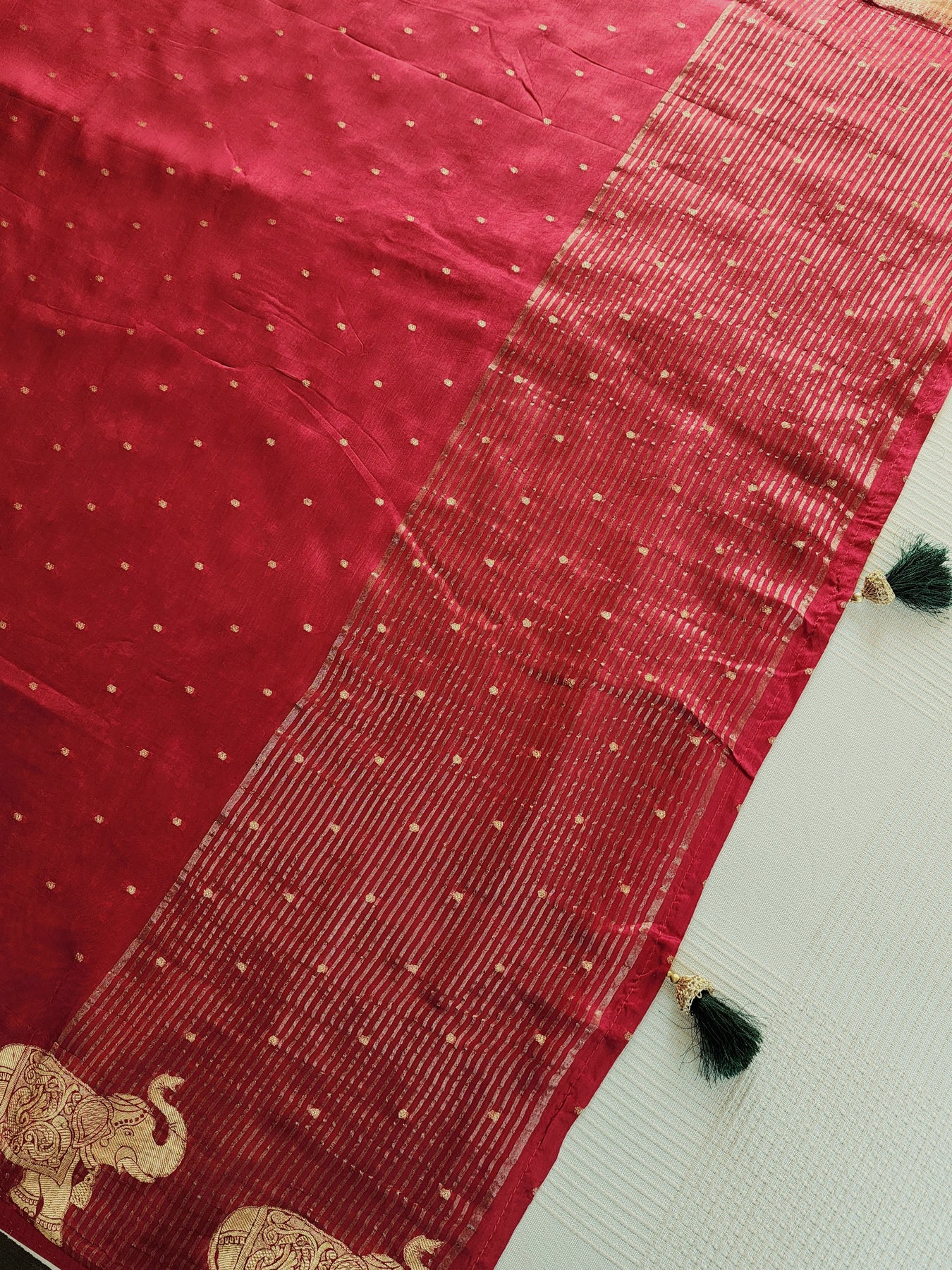 • An elegant Crepe Silk Saree with Contrast Blouse