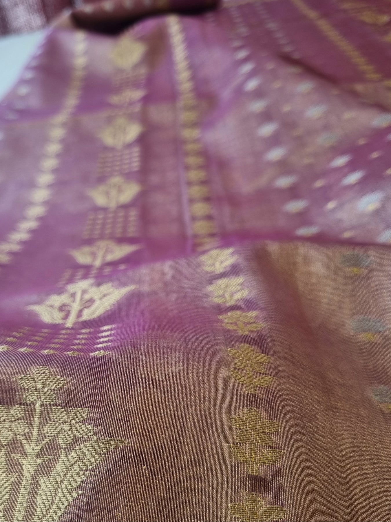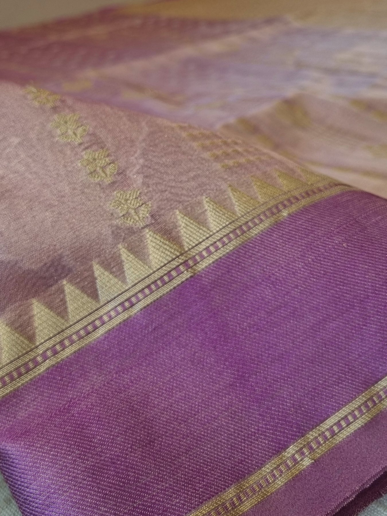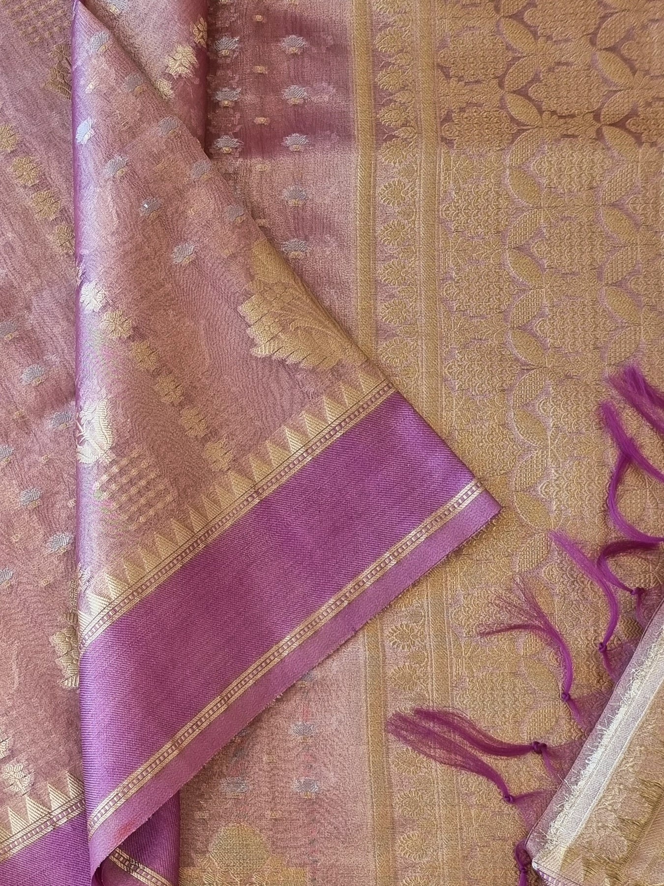 This elegant Dual Shade Tissue silk Saree with Borders has a modern appeal