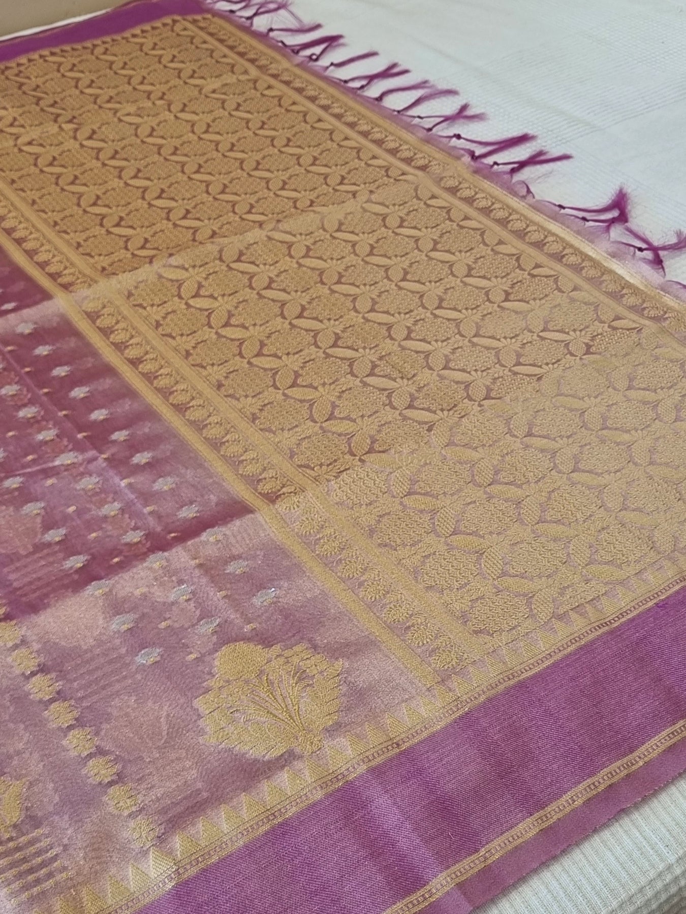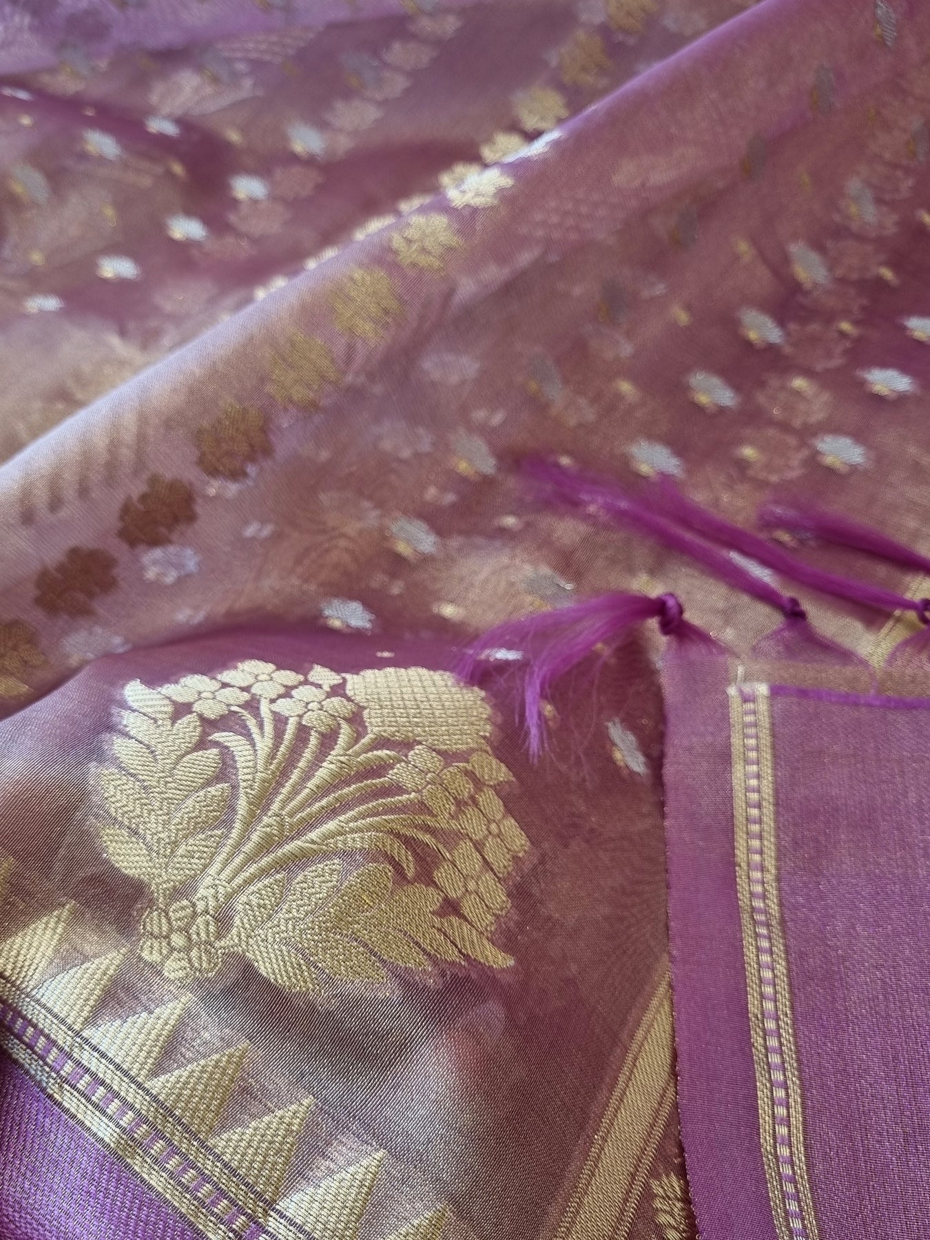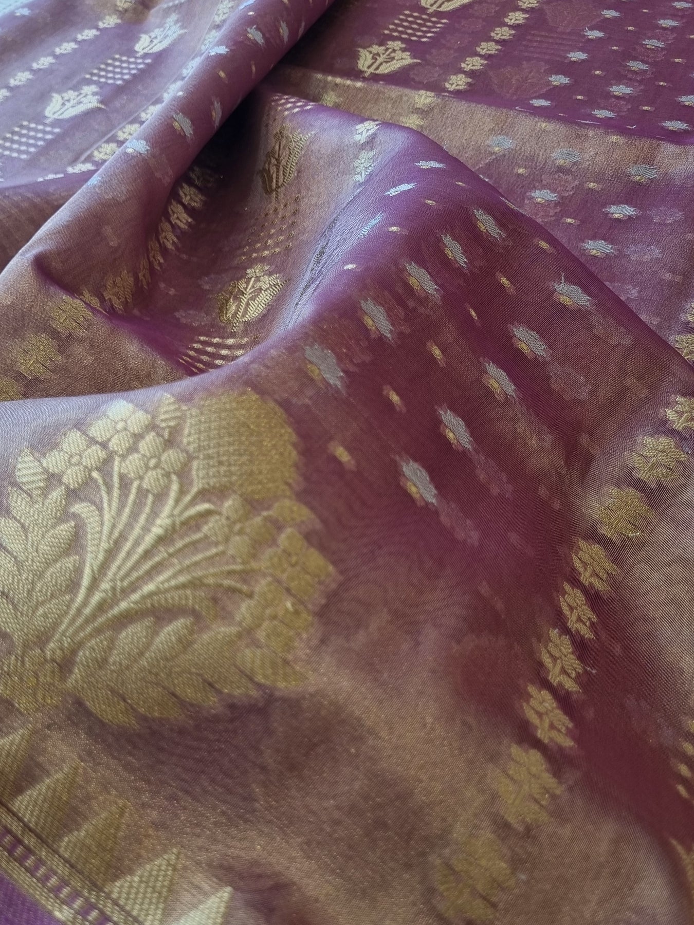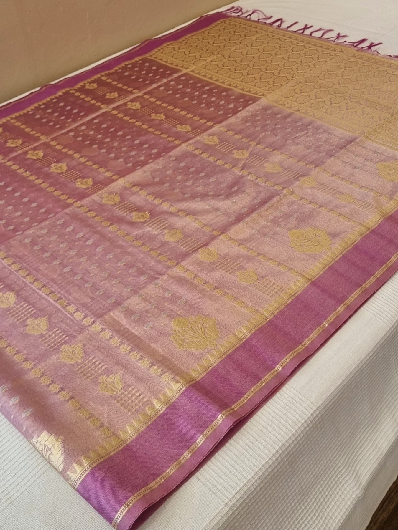 This elegant Dual Shade Tissue silk Saree with Borders has a modern appeal